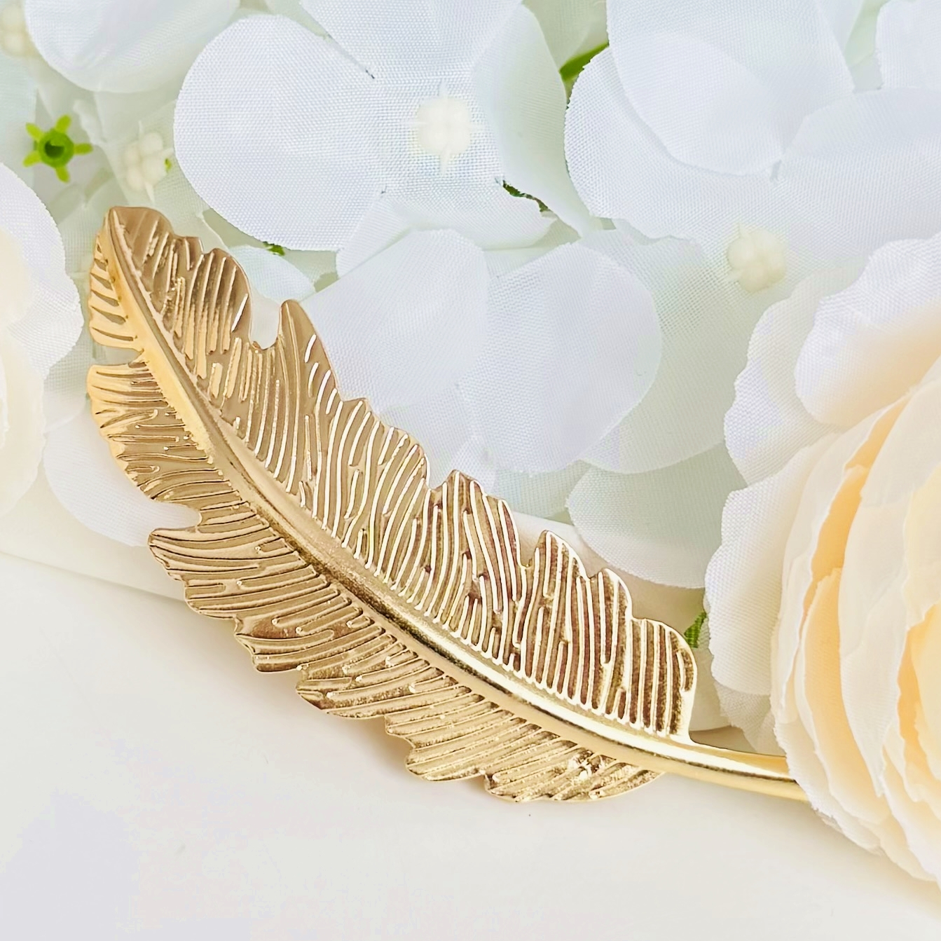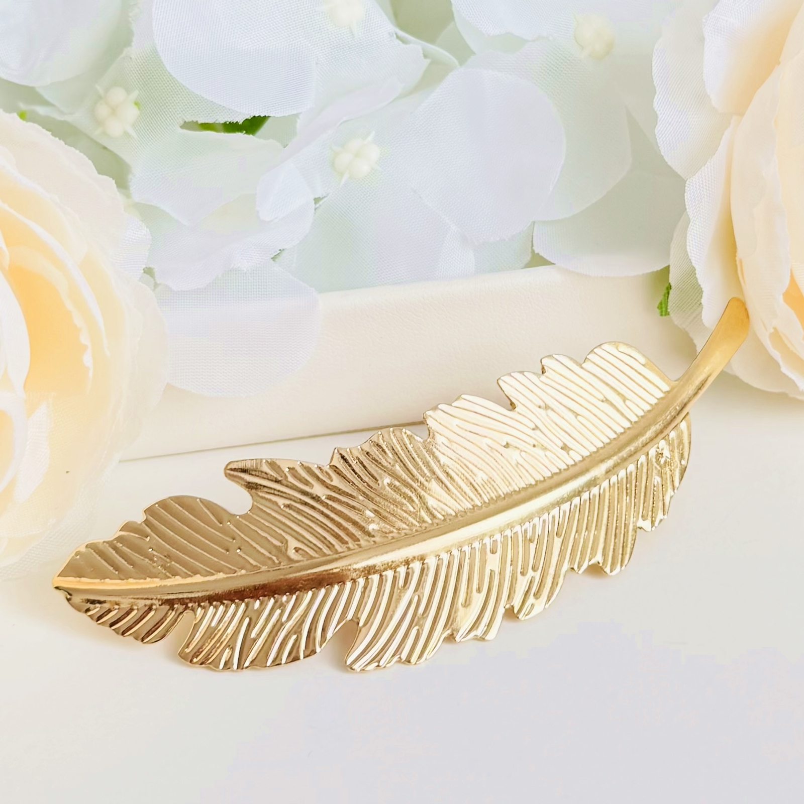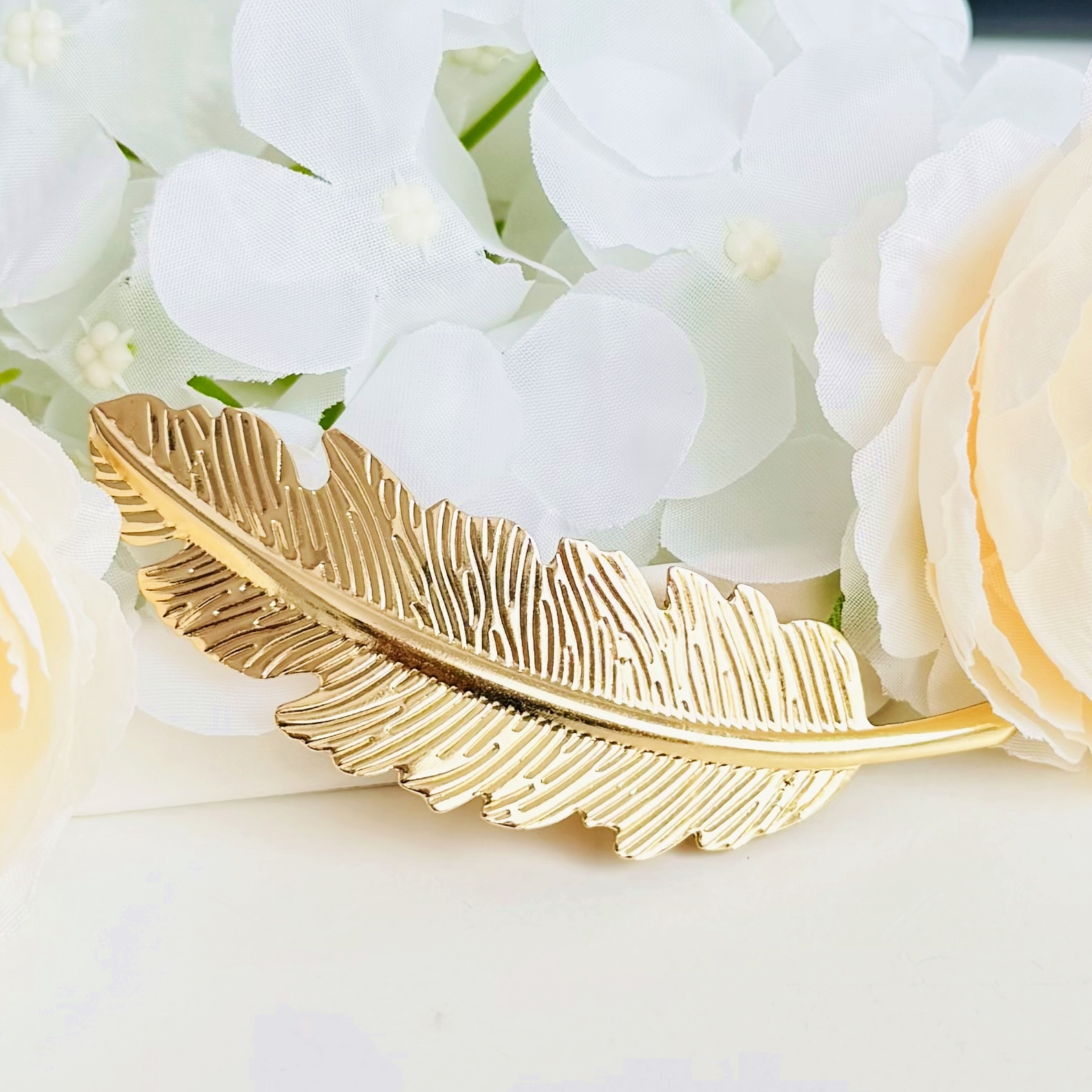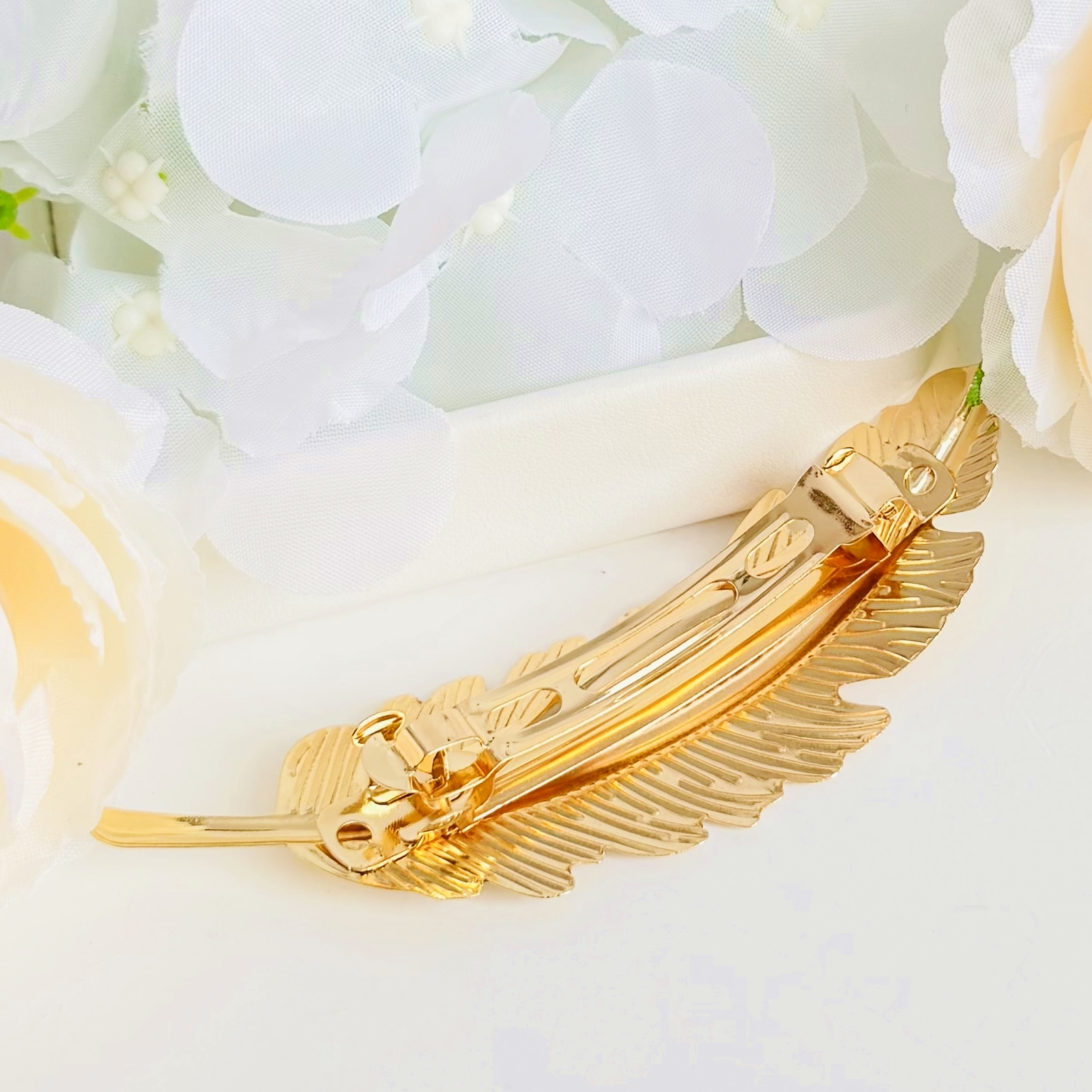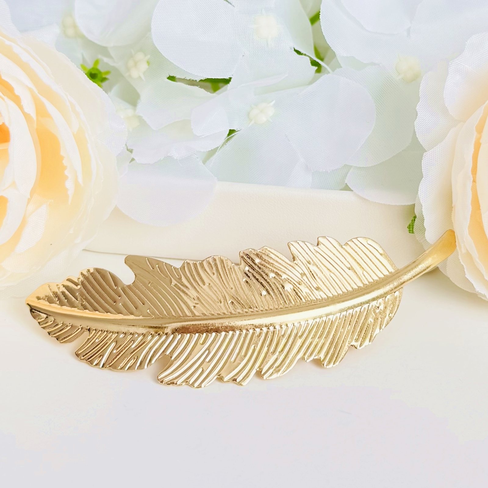 Agrafa de par din metal auriu, in forma de pana, tare simpatica.