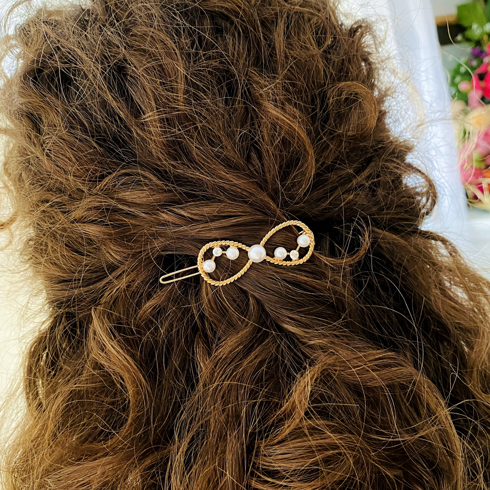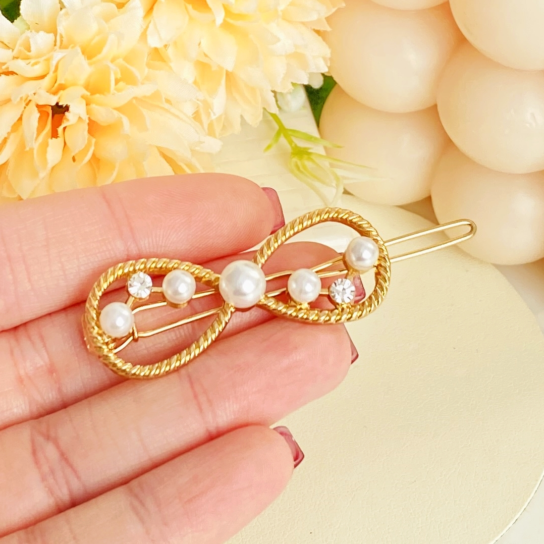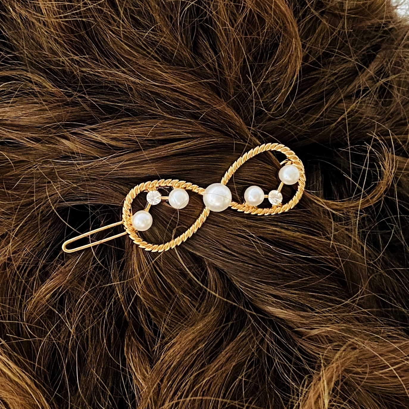 Agrafa de par din metal auriu, plina de perlute albe, tare simpatica.