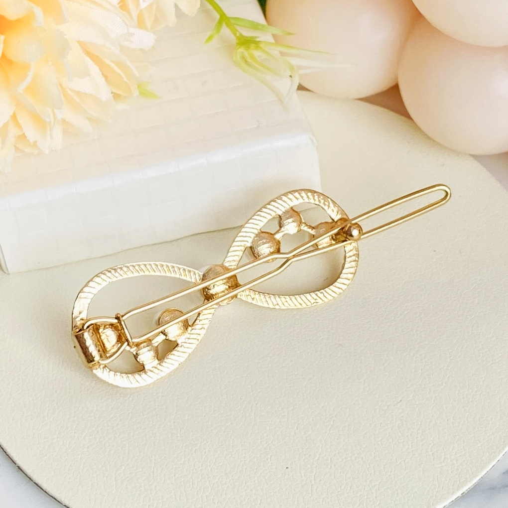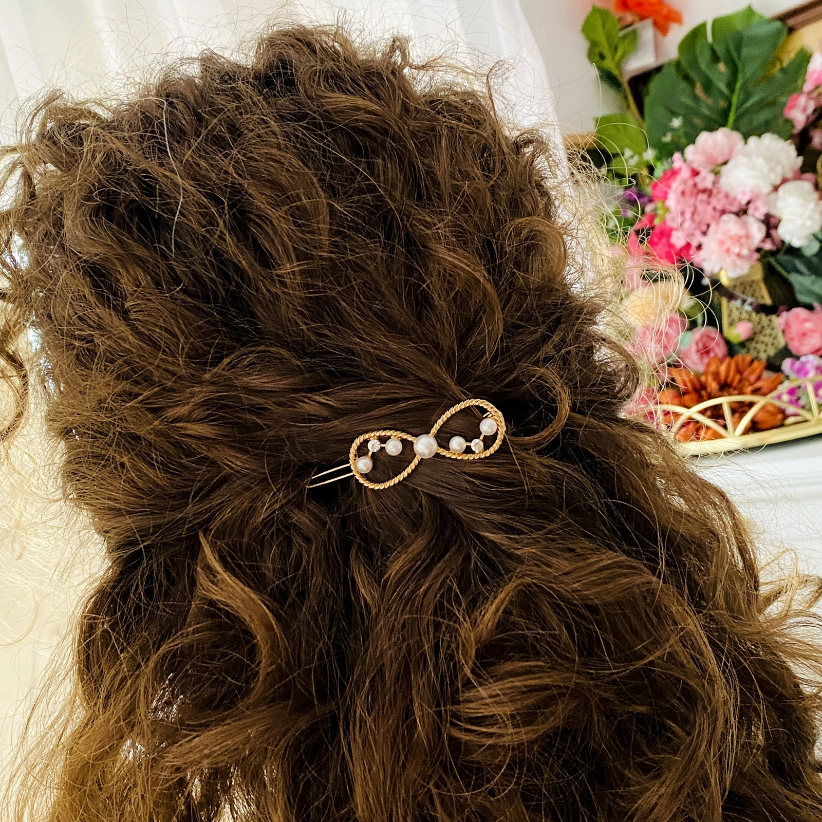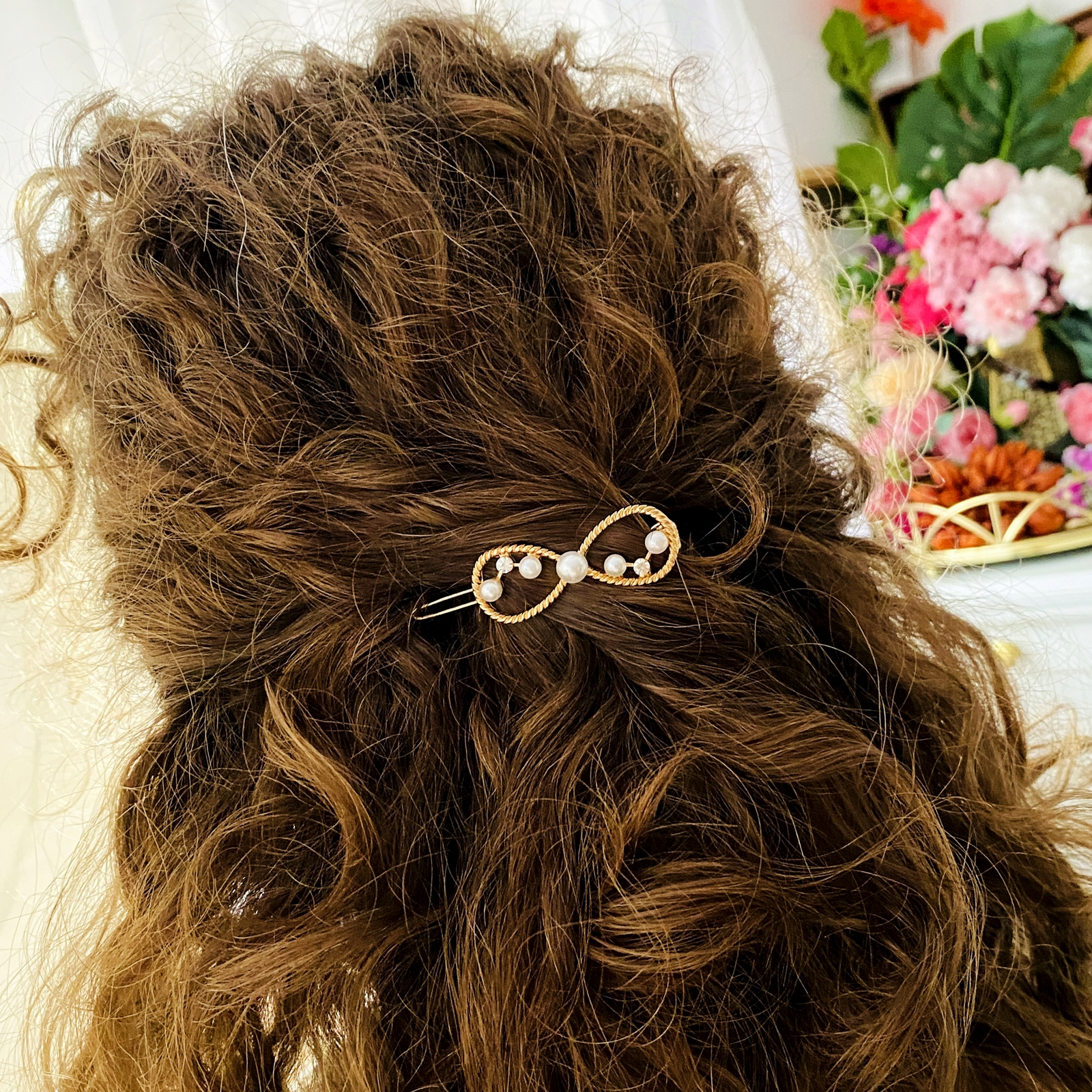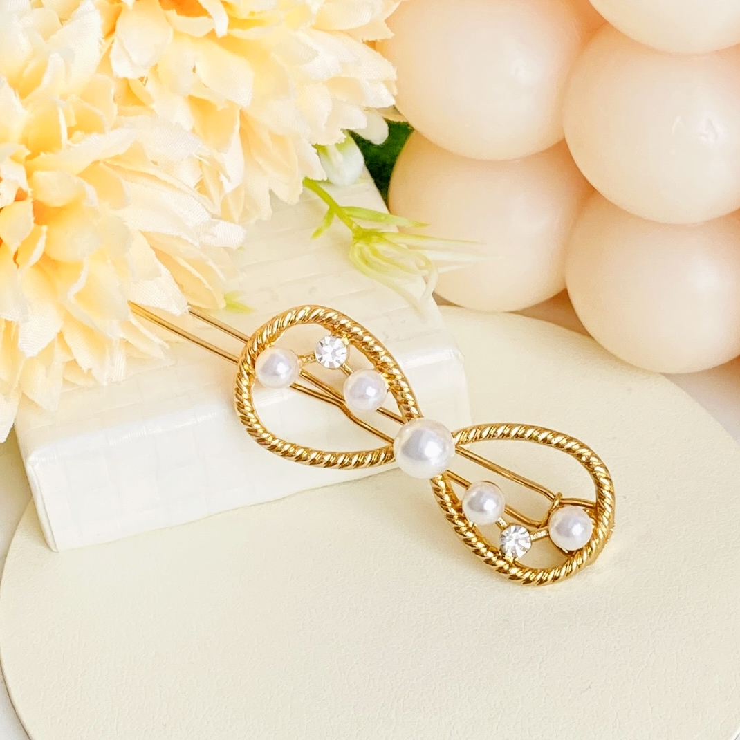 Agrafa de par din metal auriu, plina de perlute albe, tare simpatica.