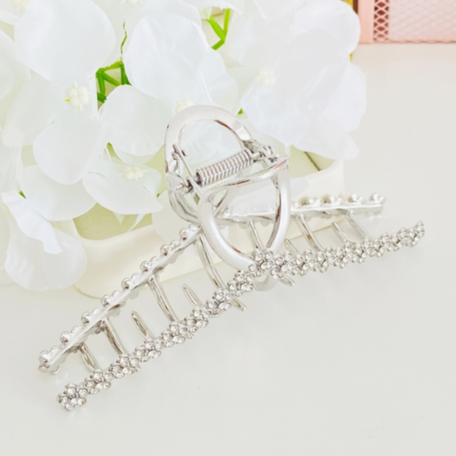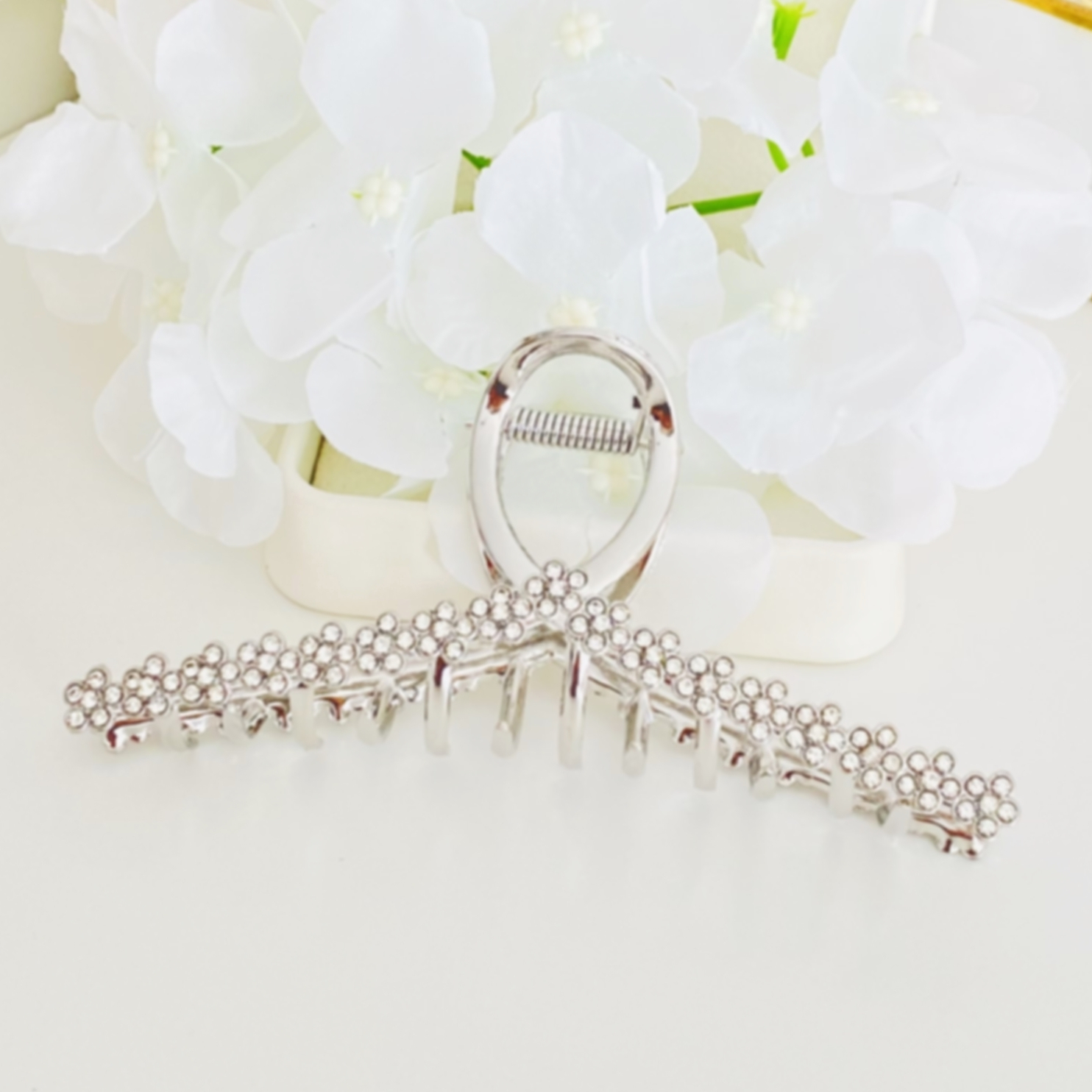 Clama de par din metal argintiu, bogat decorata cu cristale, absolut superba.