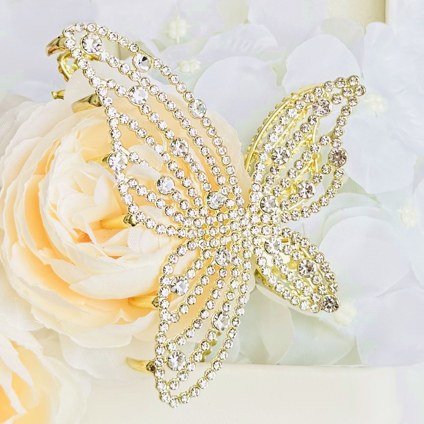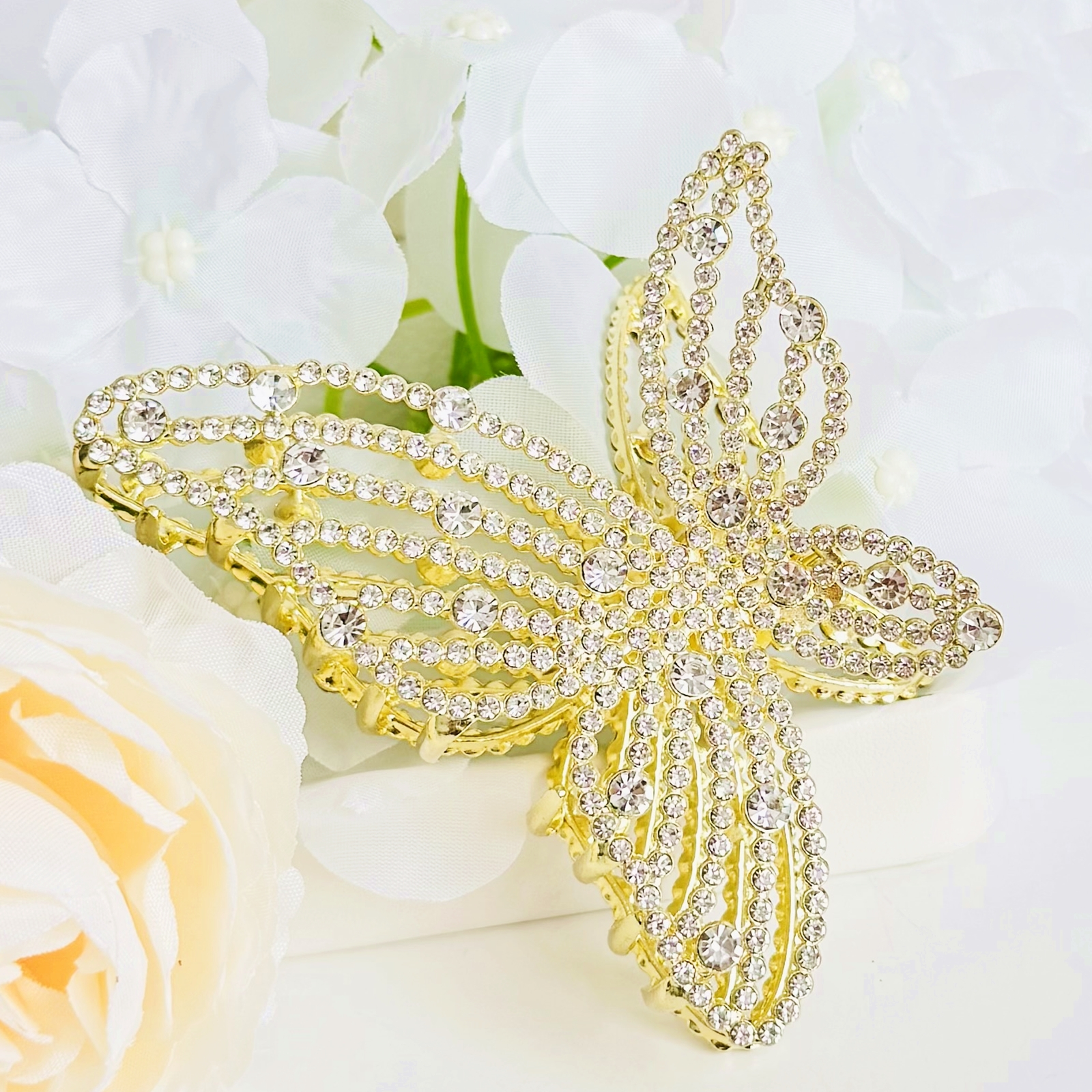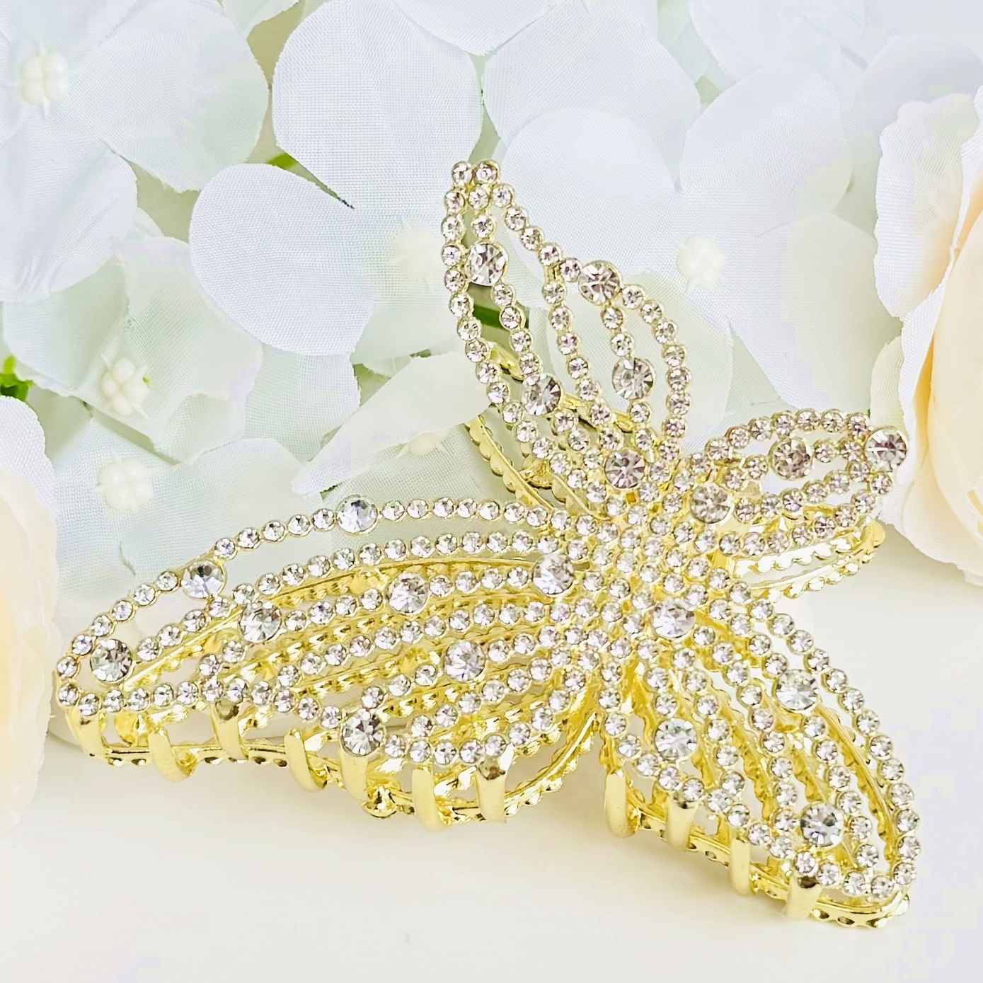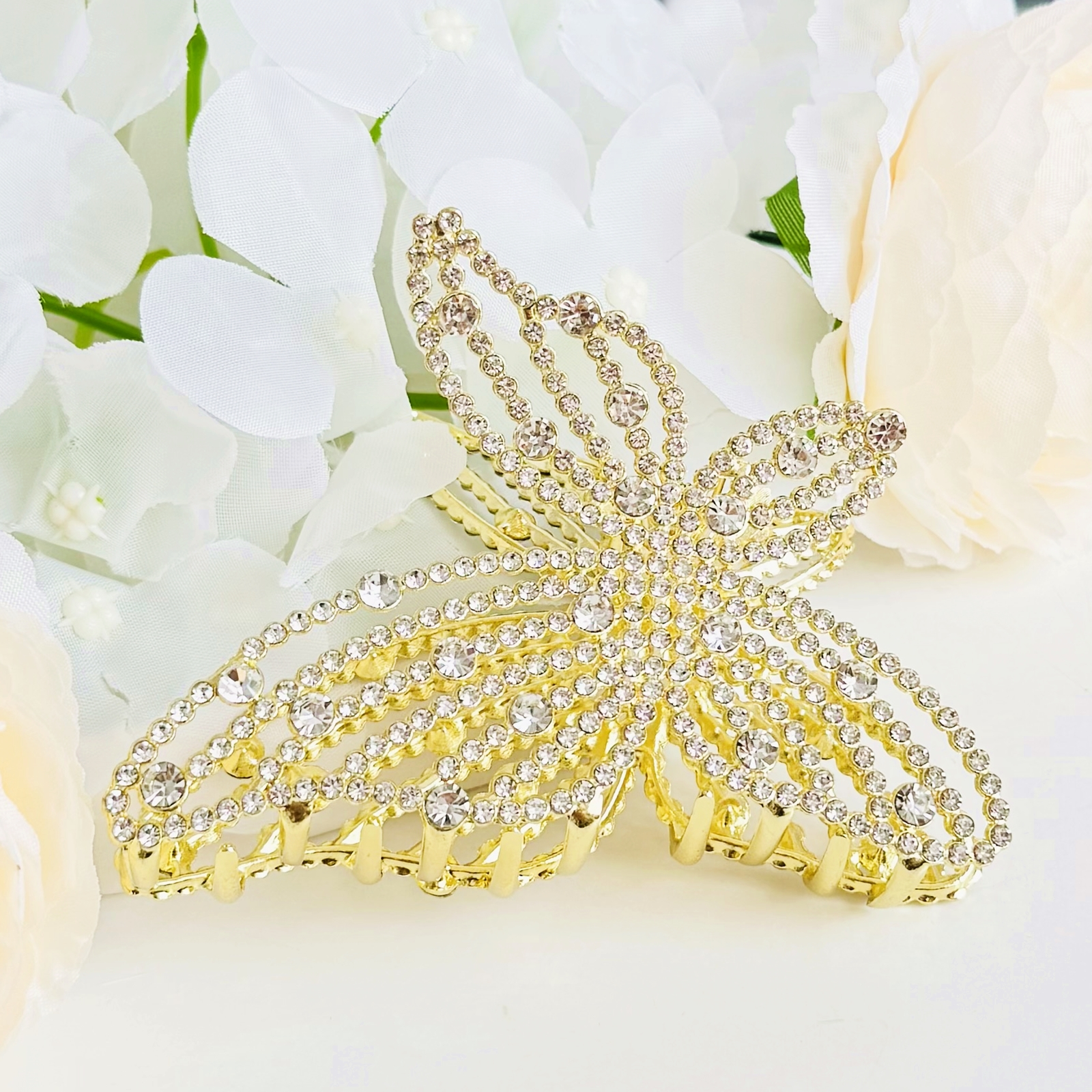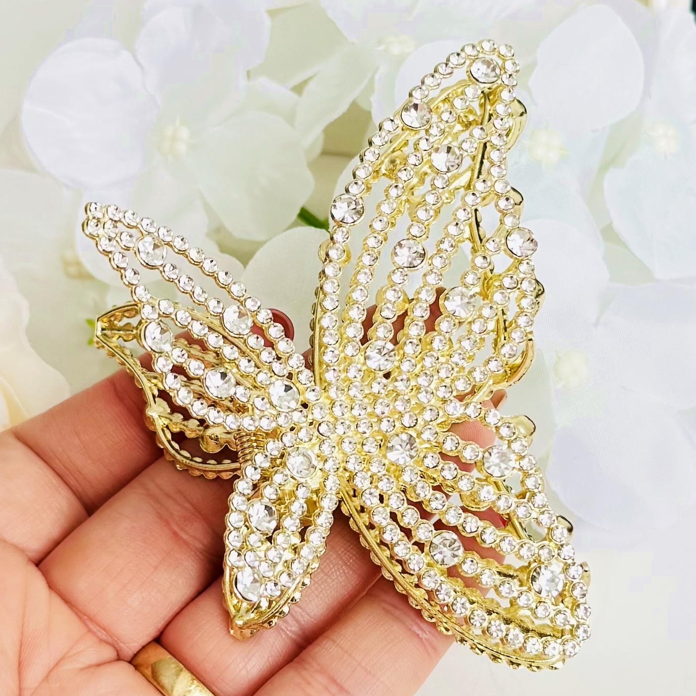 Clama de par din metal, decorata cu cristale, in forma de fluture, tare simpatica.