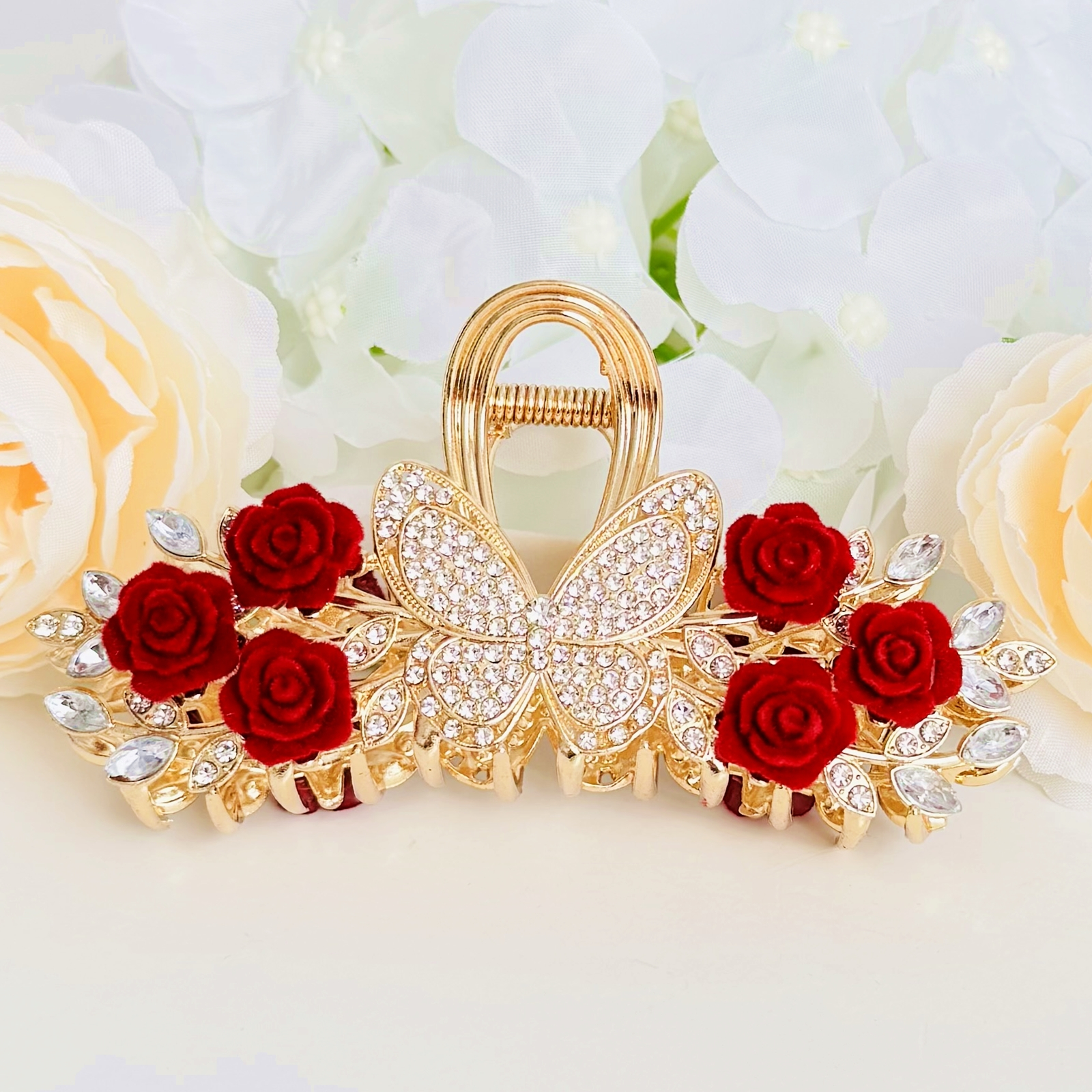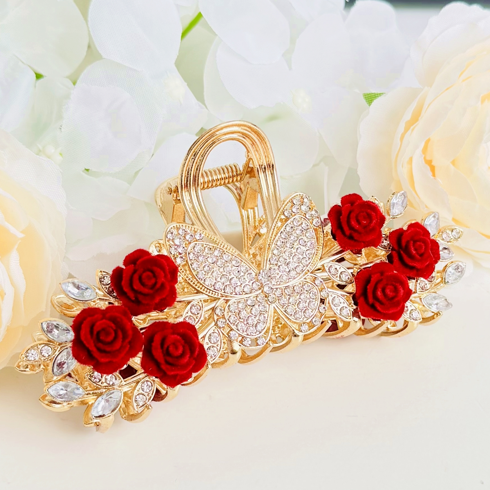 Clama de par din metal, decorata cu cristale, in forma de fluture, tare simpatica.