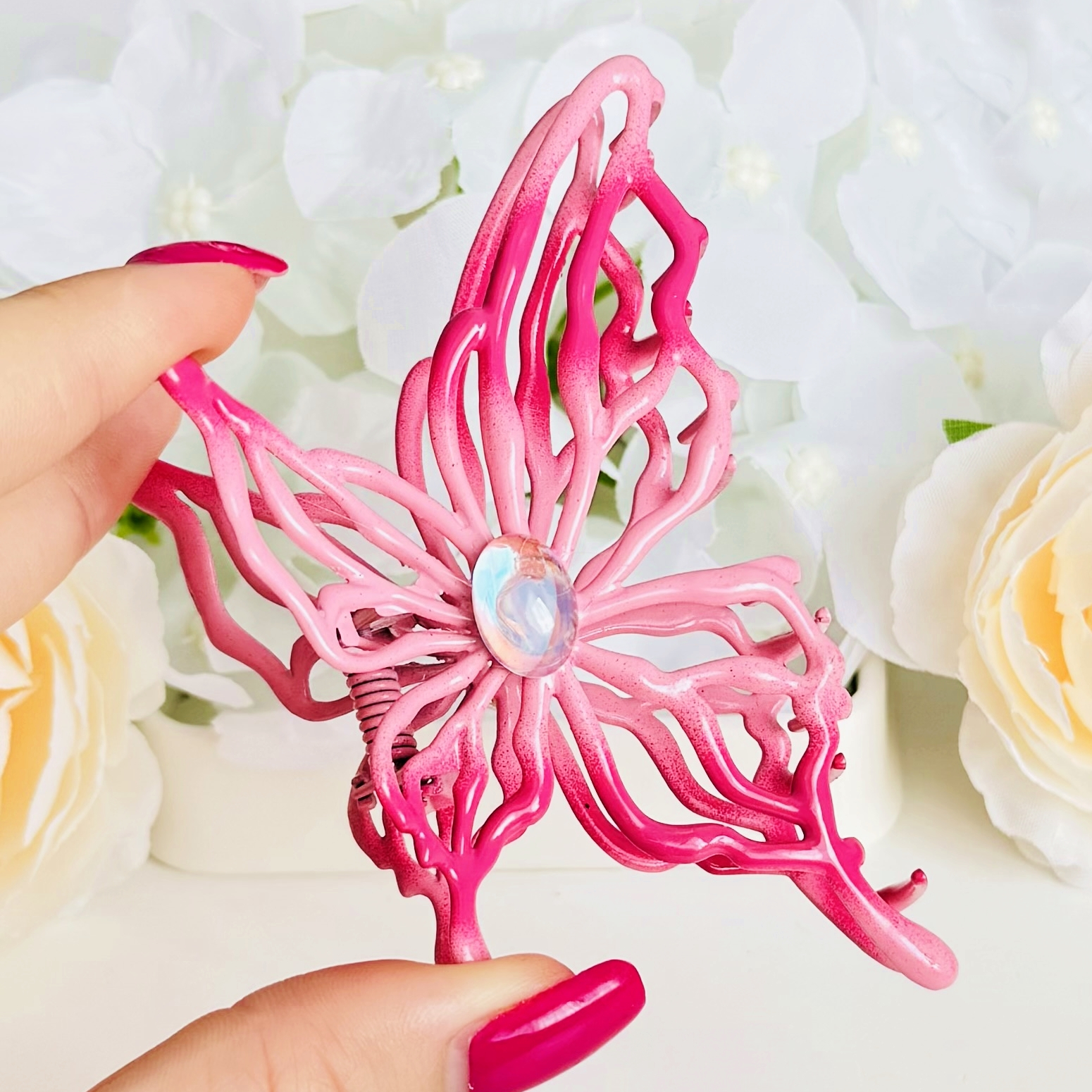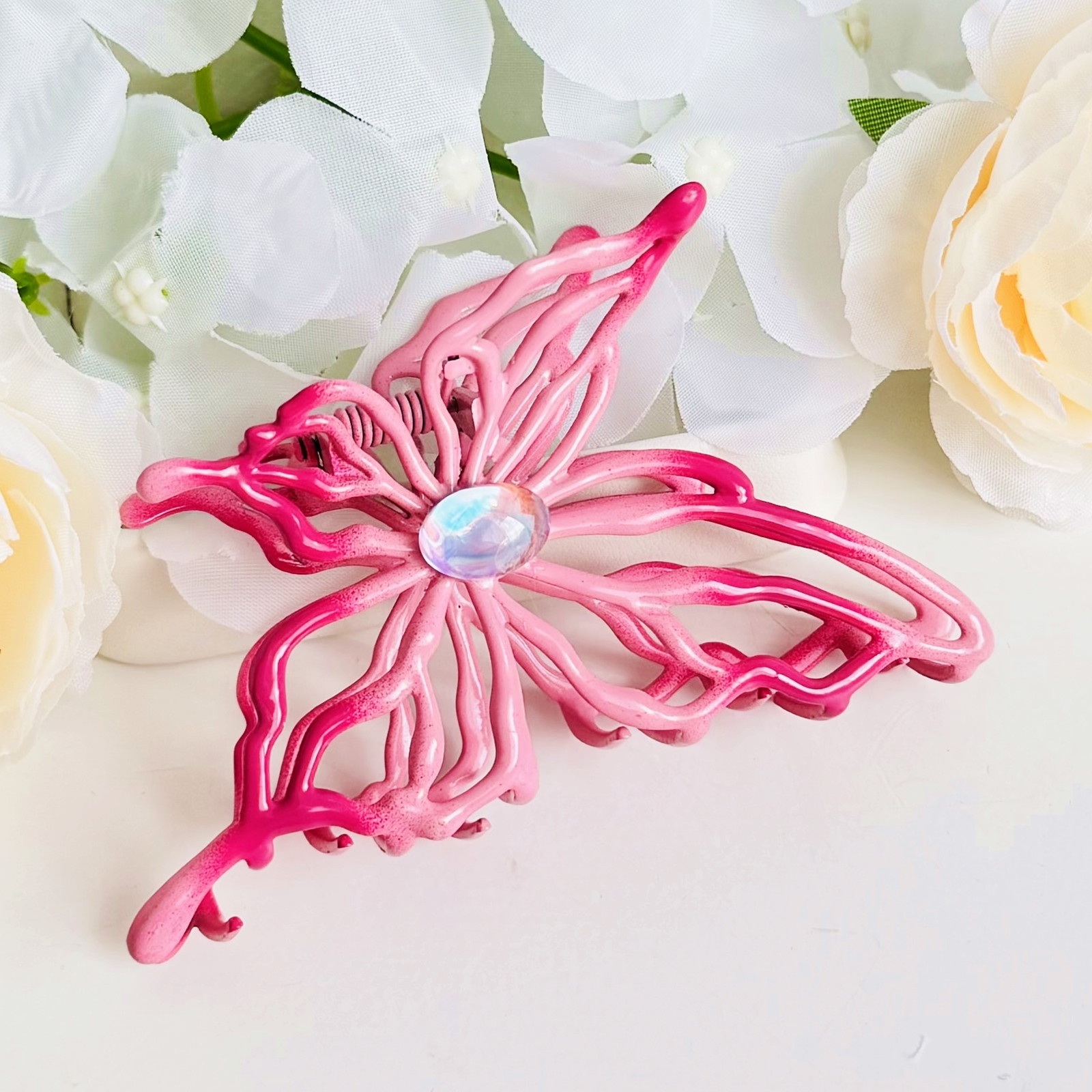 Clama de par din metal, decorata cu cristale, in forma de fluture, tare simpatica.