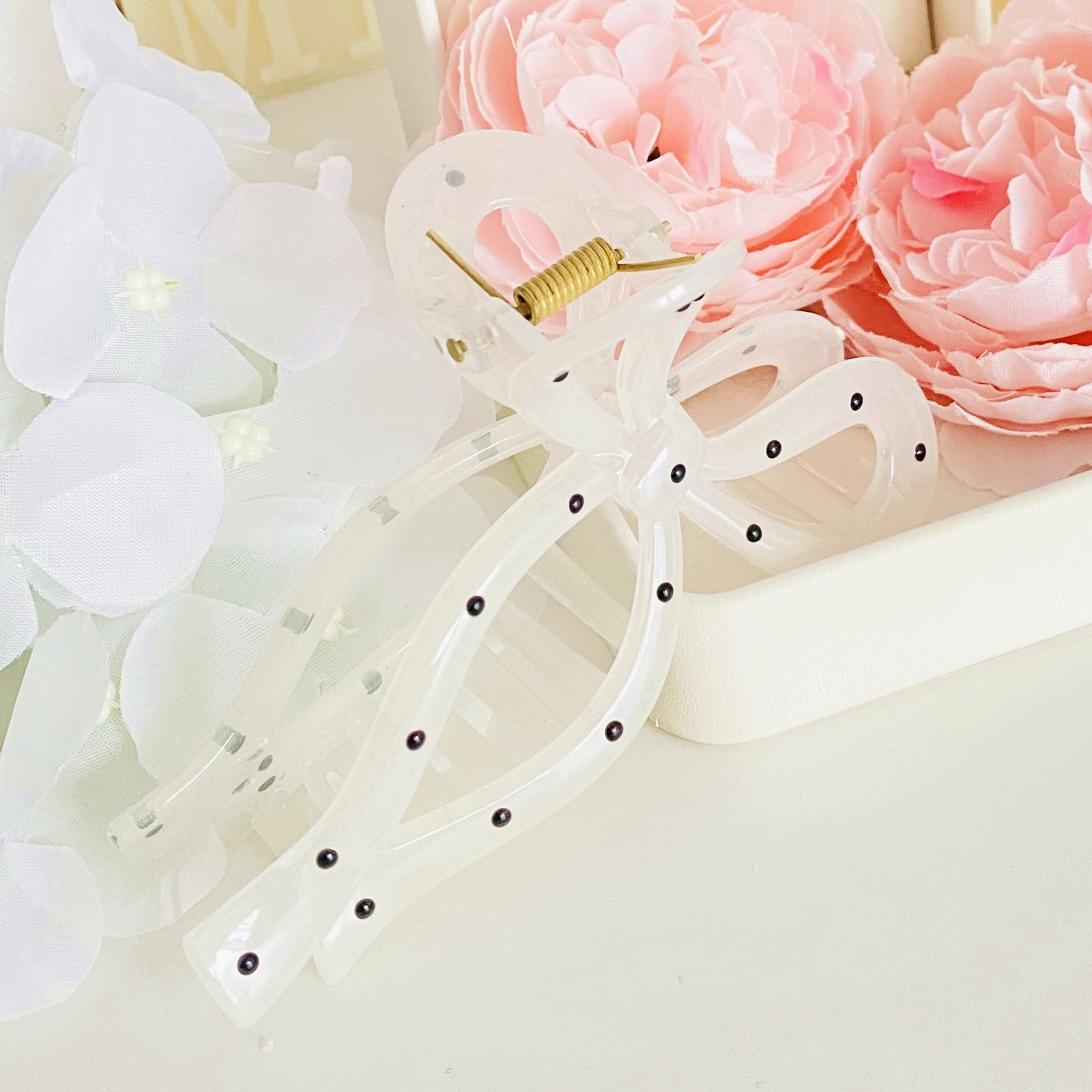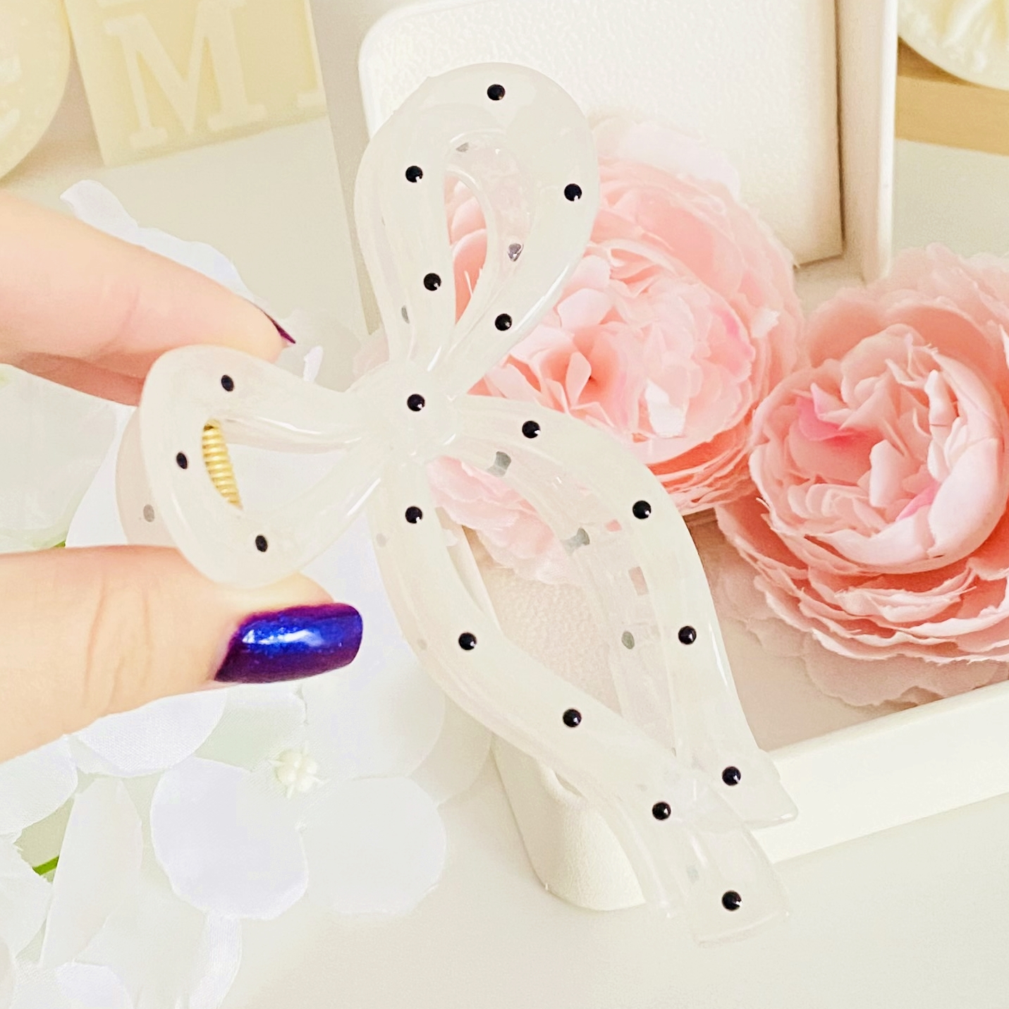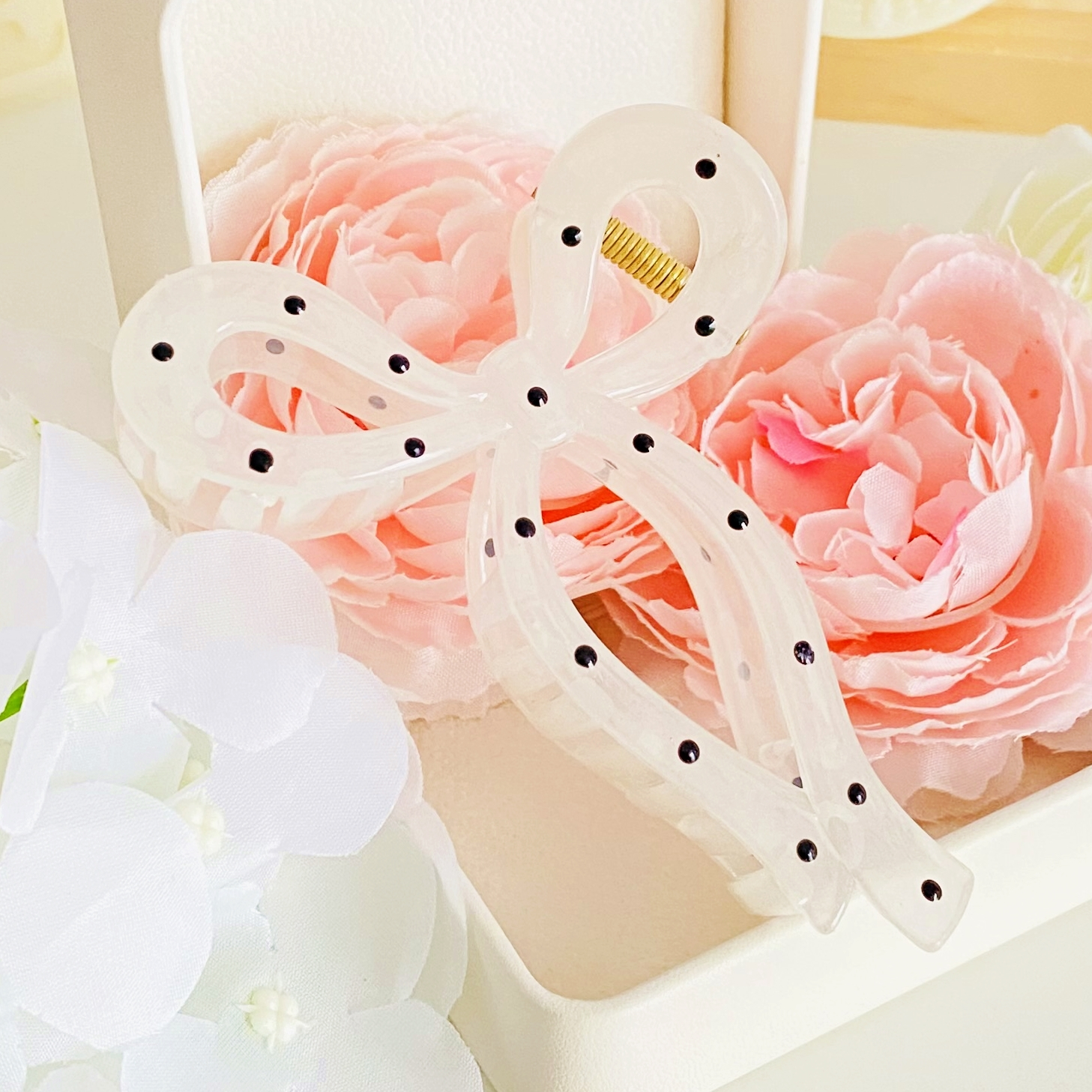 Clama de par din acril, bogat decorata cu buline, absolut superba.