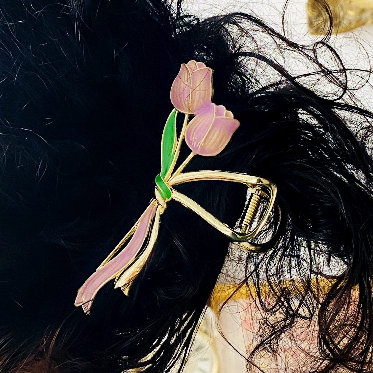 Clama de par din metal auriu, decorat cu email colorat, absolut superba.