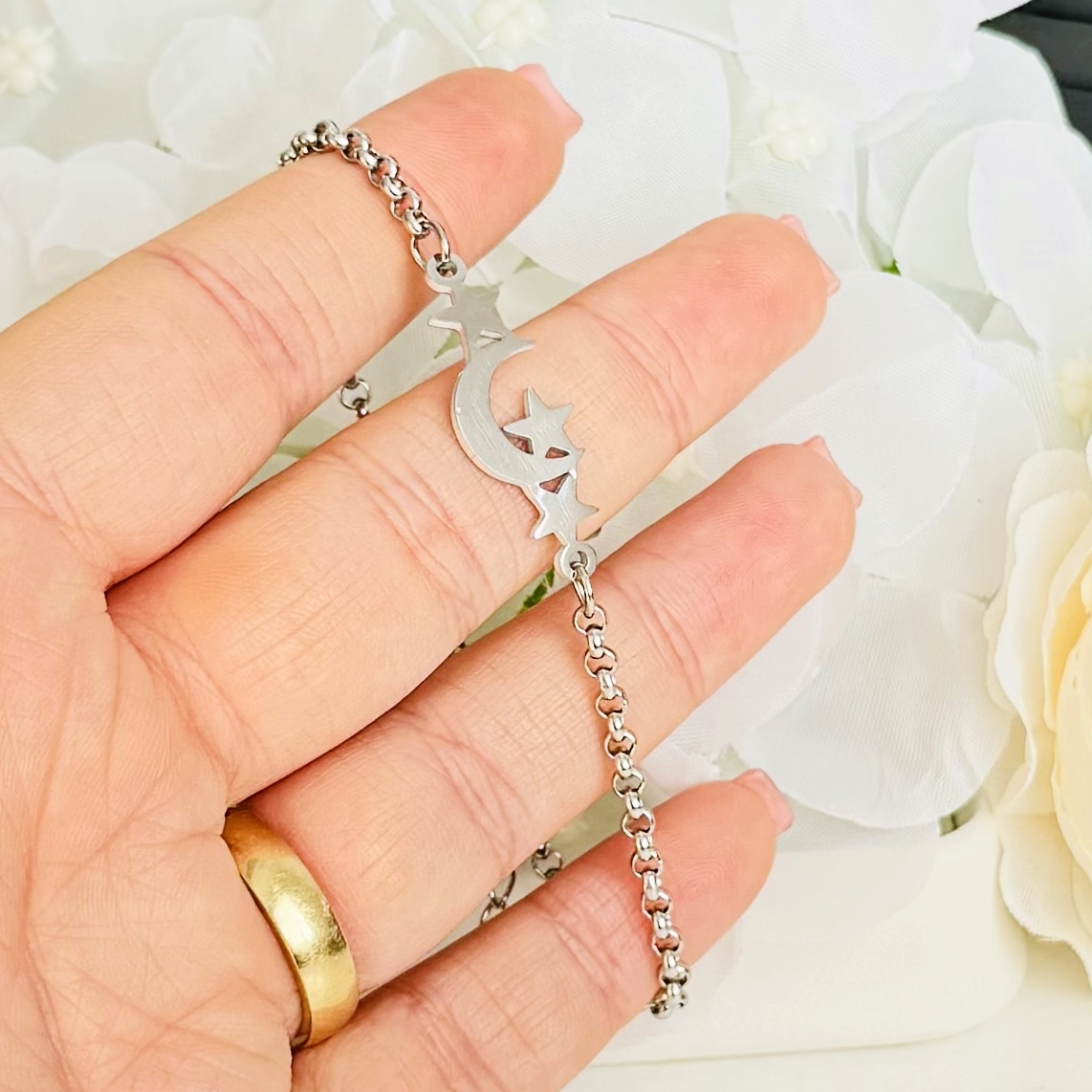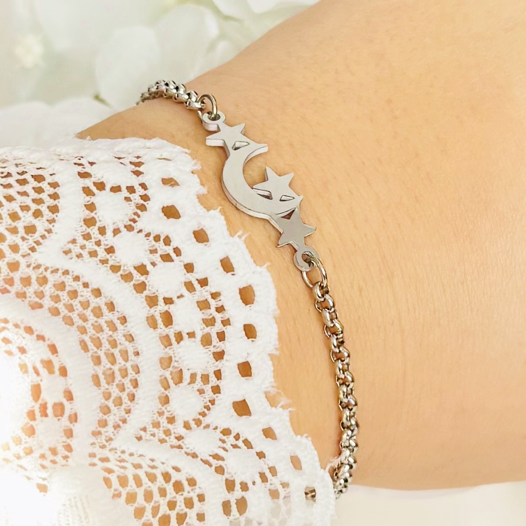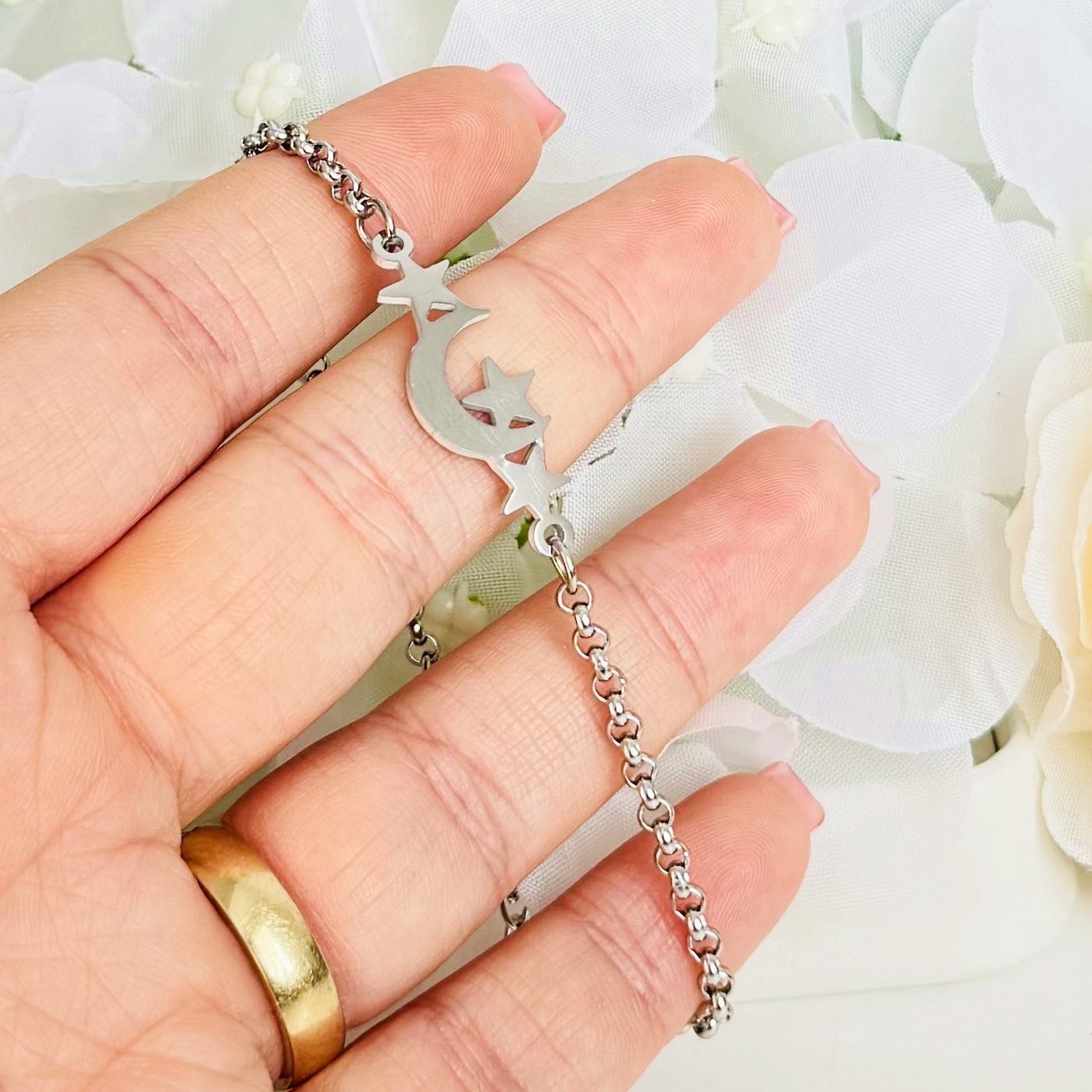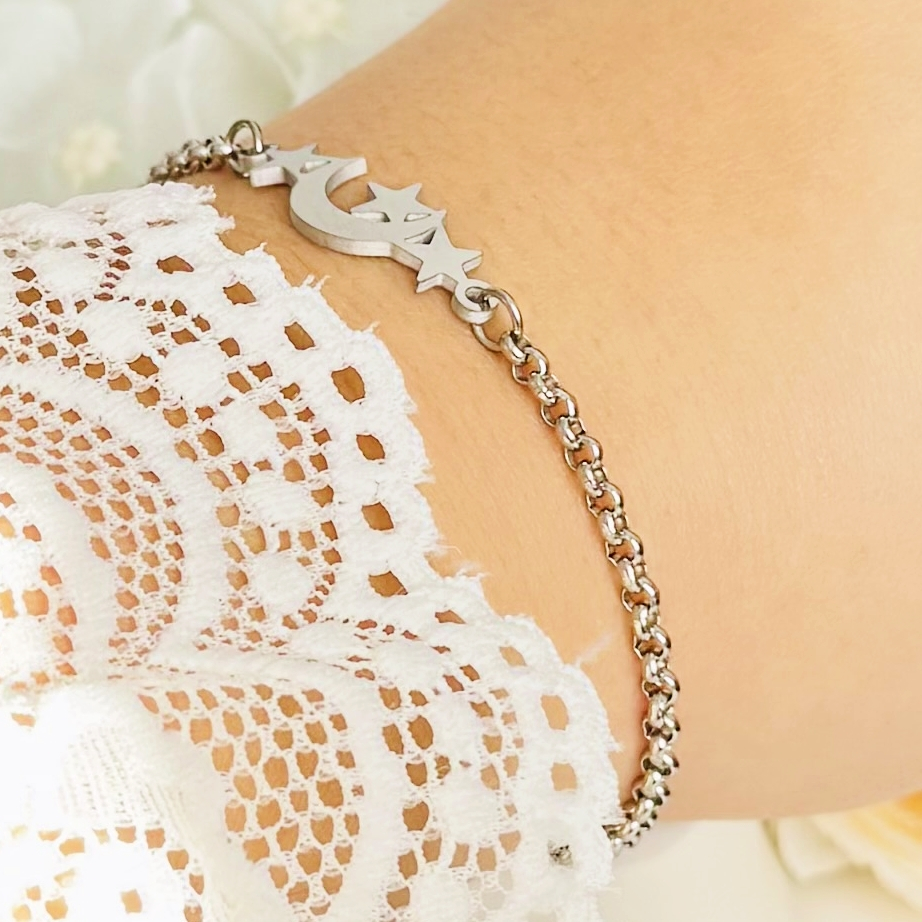 Bratara Argintie Luna & Stele - Otel Inoxidabil