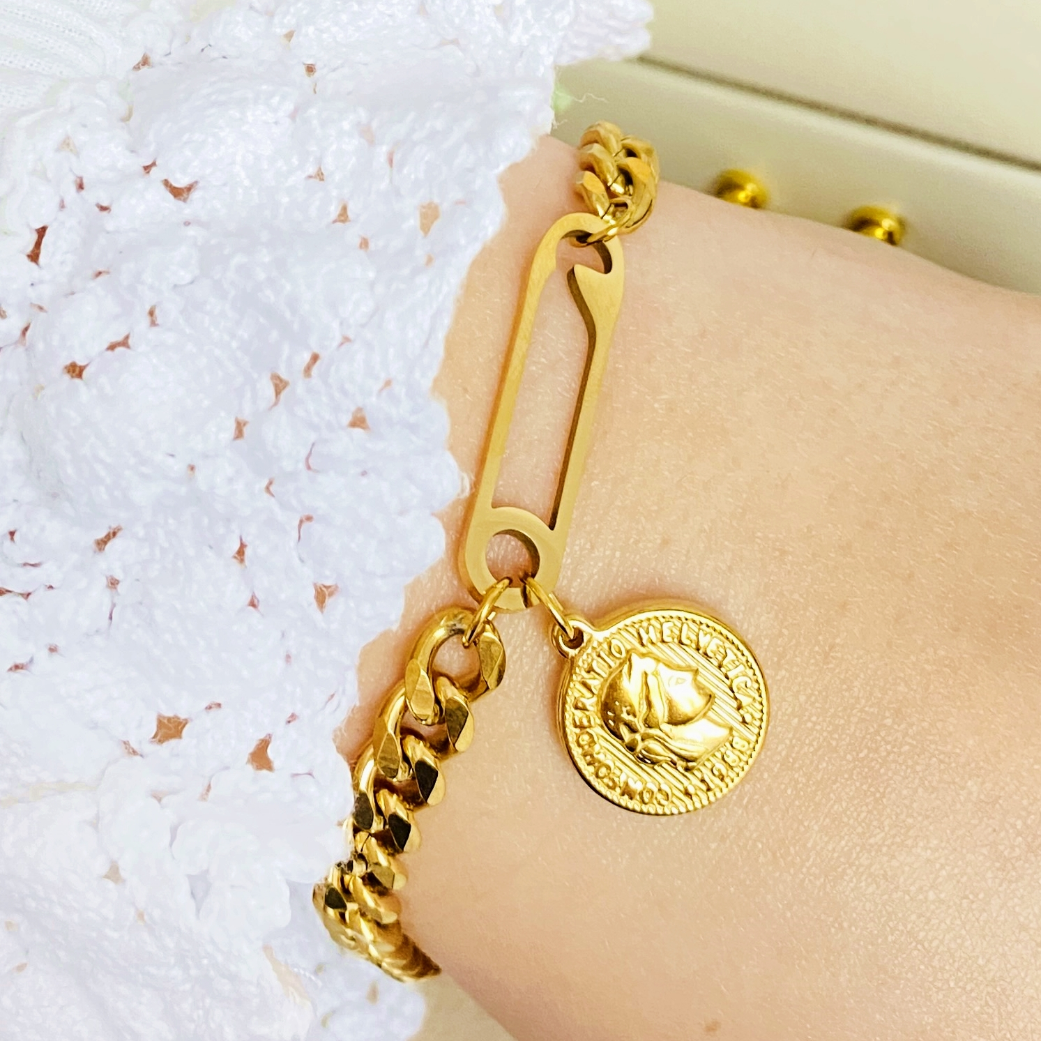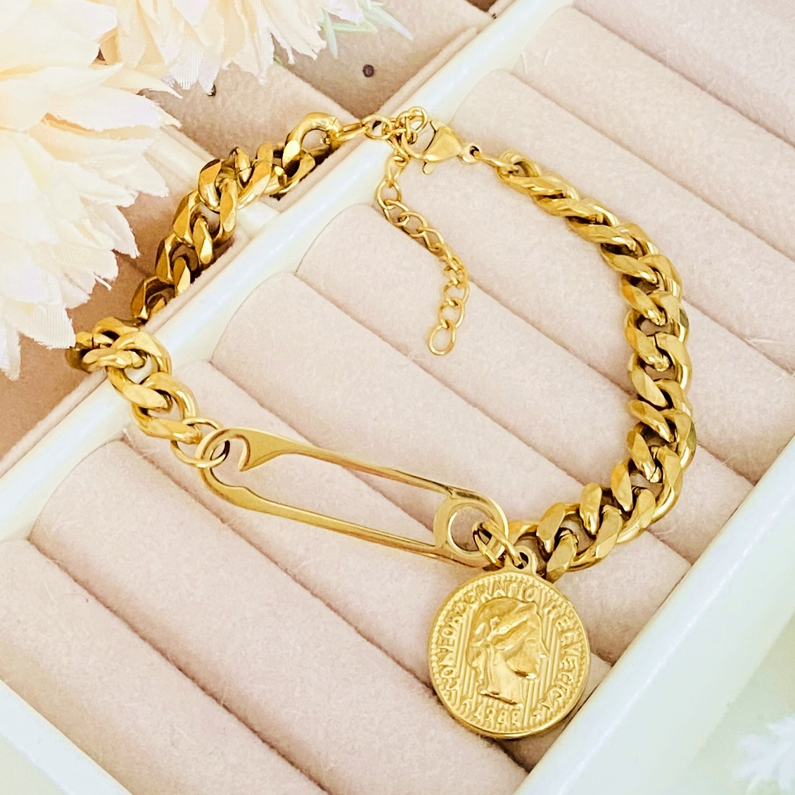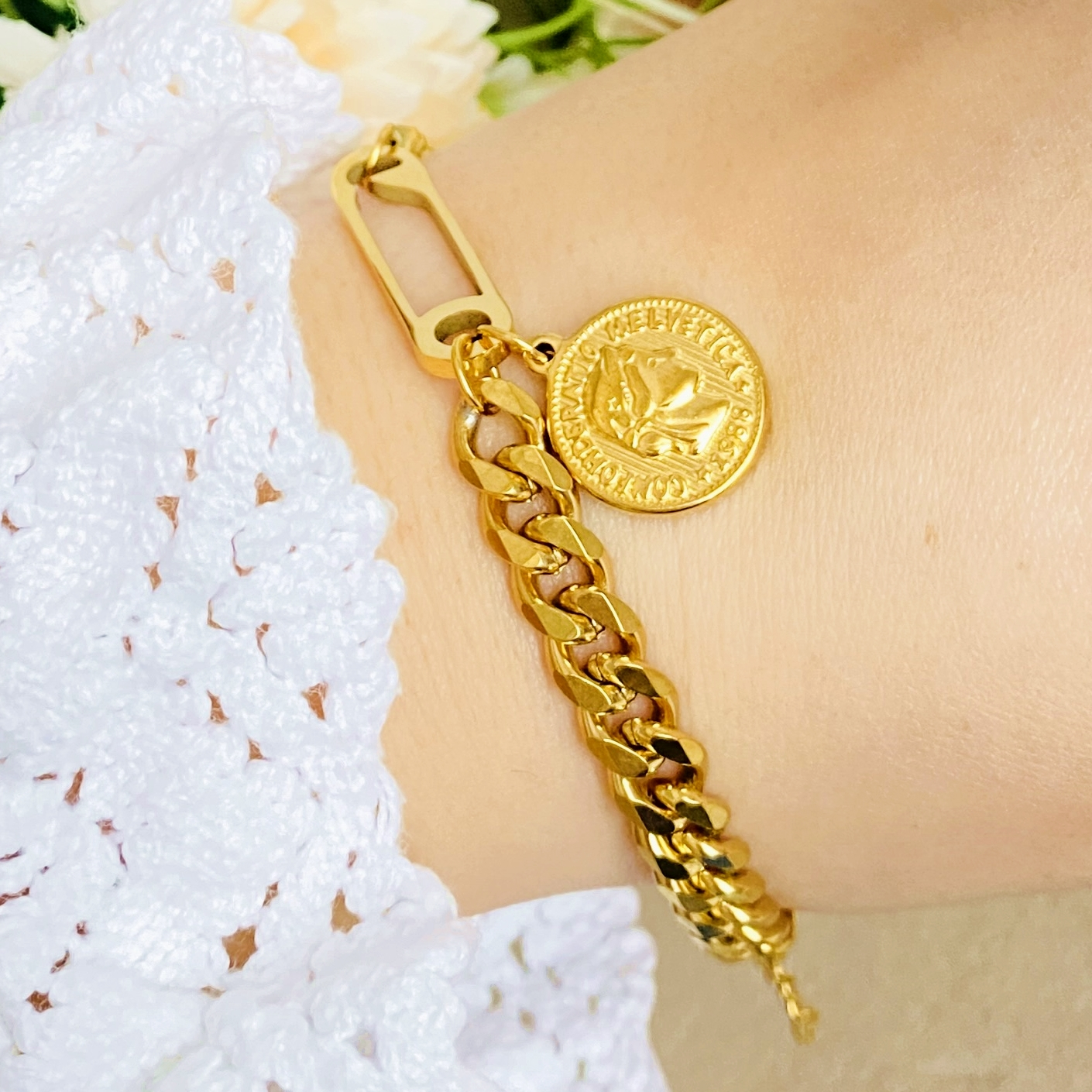 Bratara din otel inoxidabil, cu un design clasic, versatila, fiind ideala pentru a o asorta la o multime de tinute.