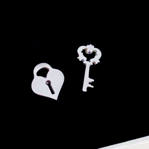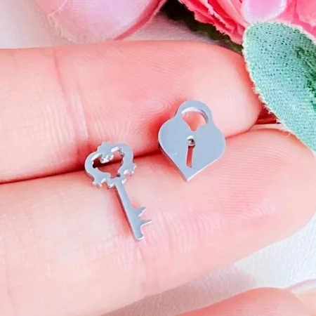 Cercei Cheie & Lacat Argintii - Otel Inoxidabil