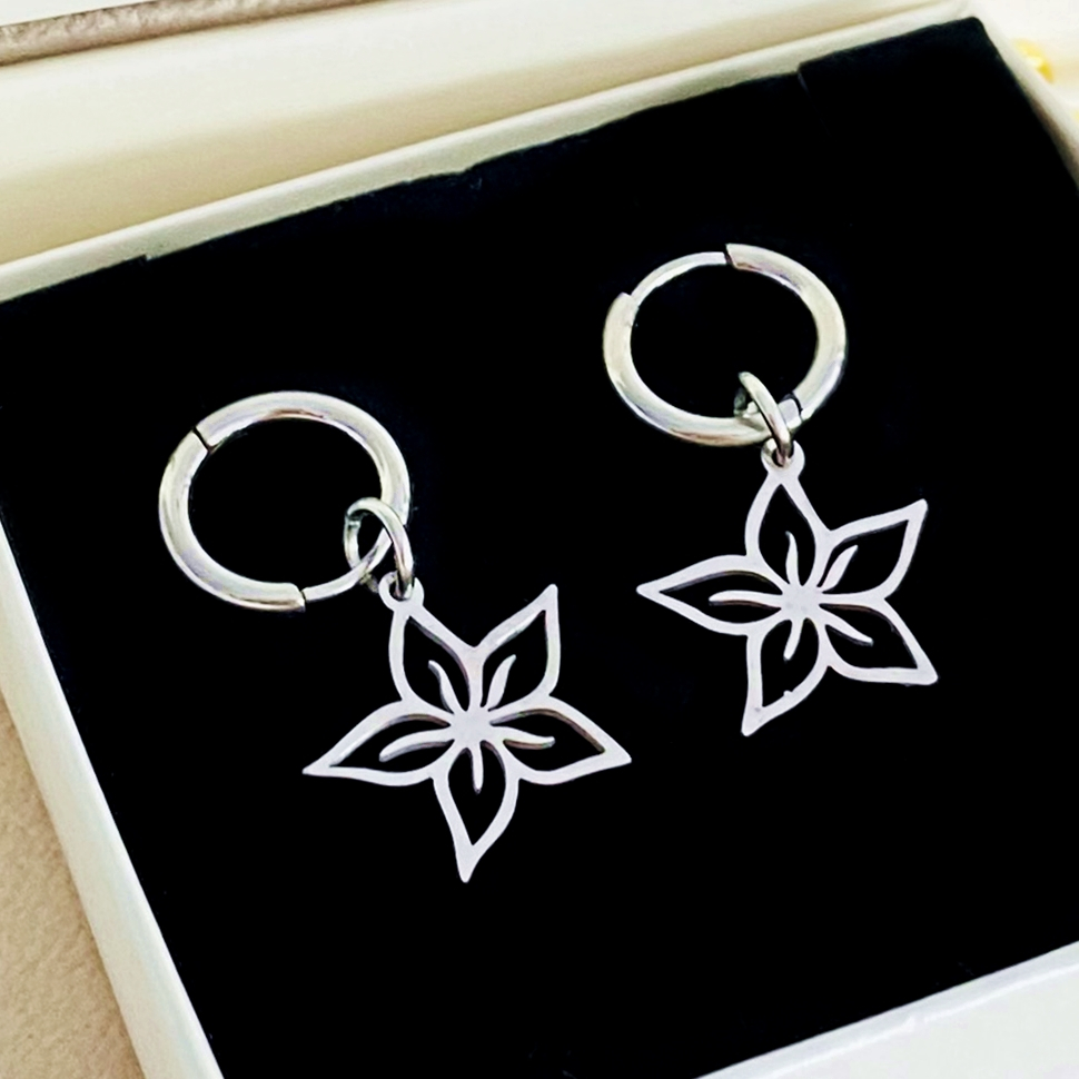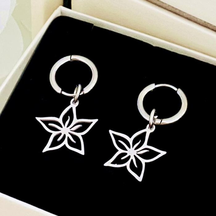 Cercei Flori Argintii - Otel Inoxidabil