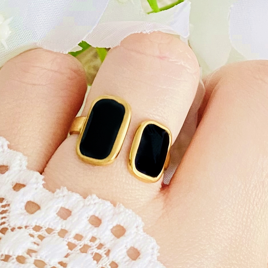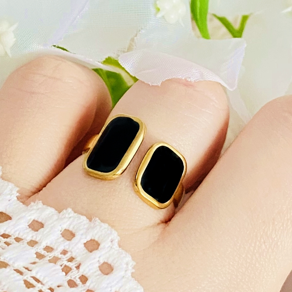 Inel Reglabil Auriu & Negru - Otel Inoxidabil