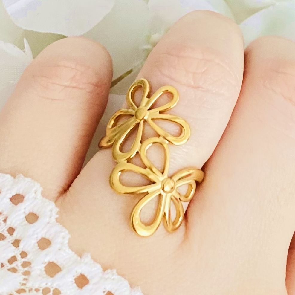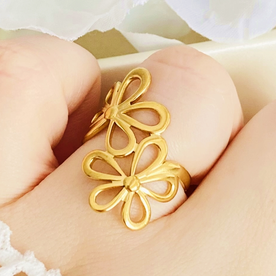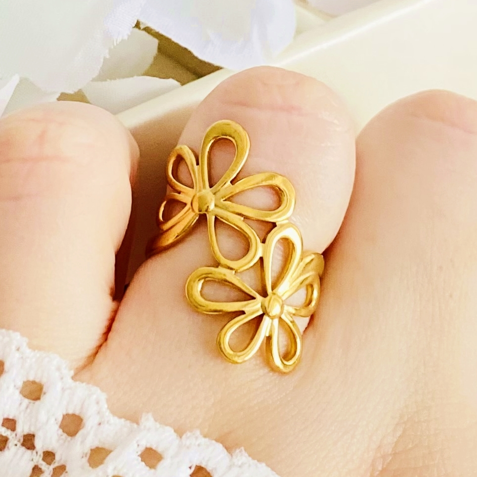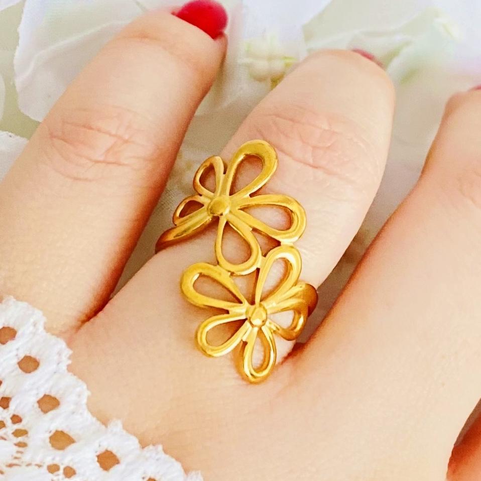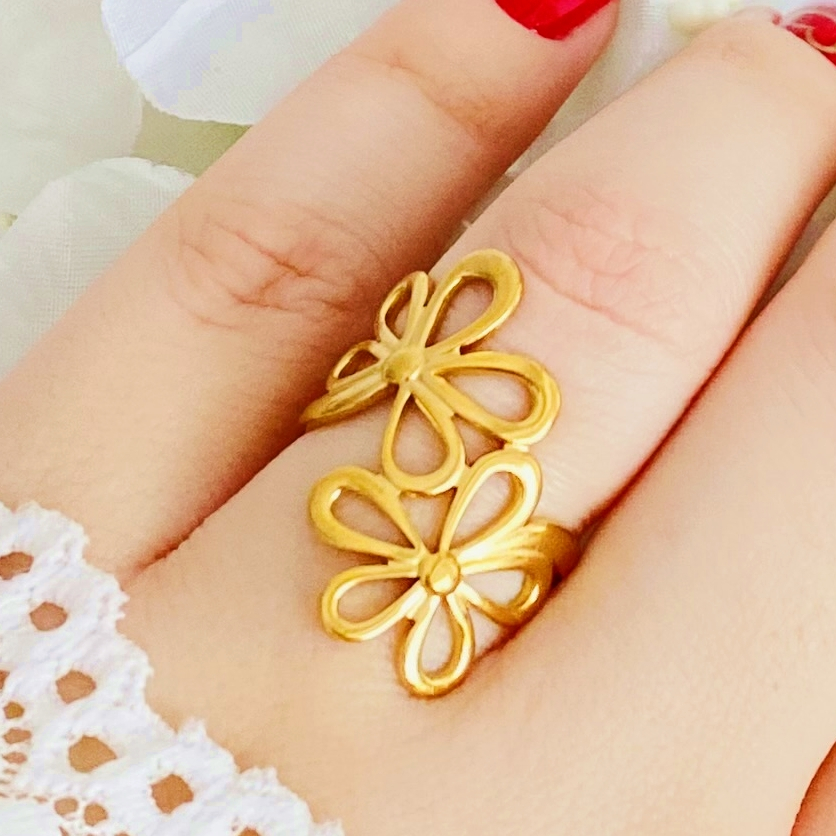 Inel Reglabil Flori Aurii - Otel Inoxidabil