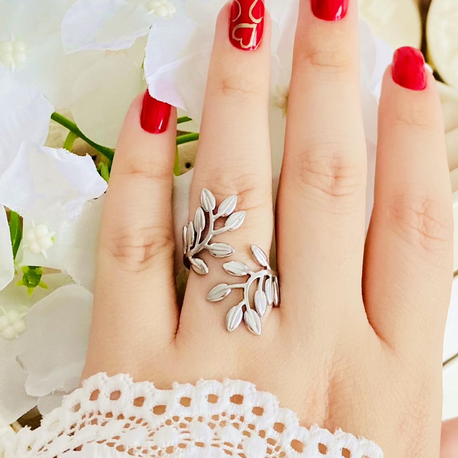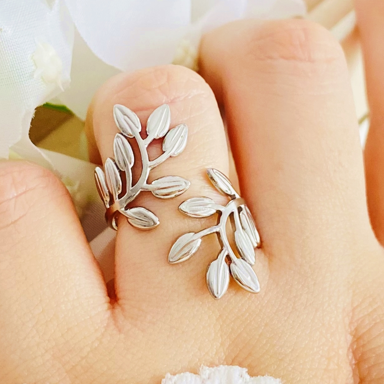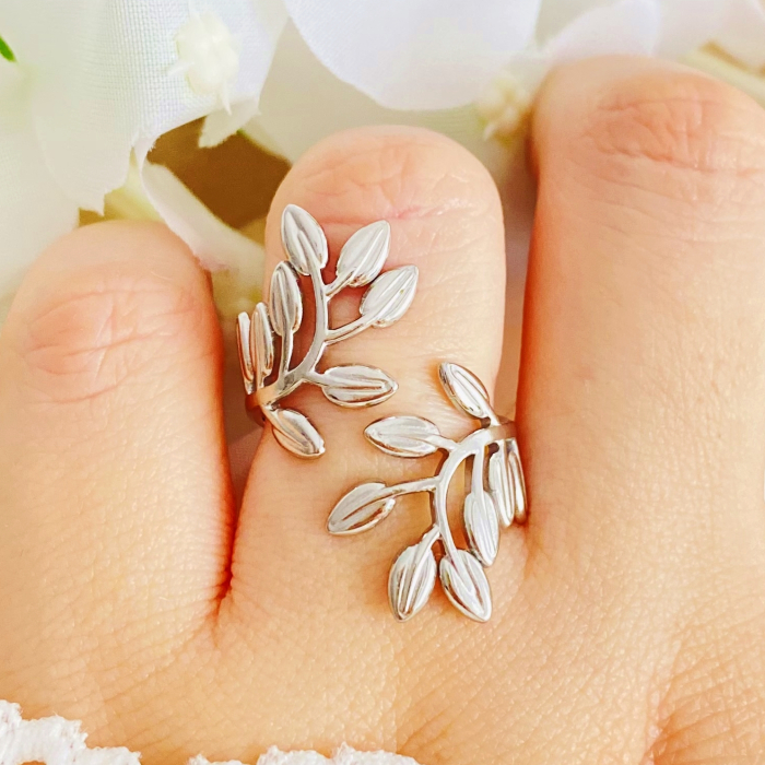 Inel Reglabil Frunzulite Argintii - Otel Inoxidabil