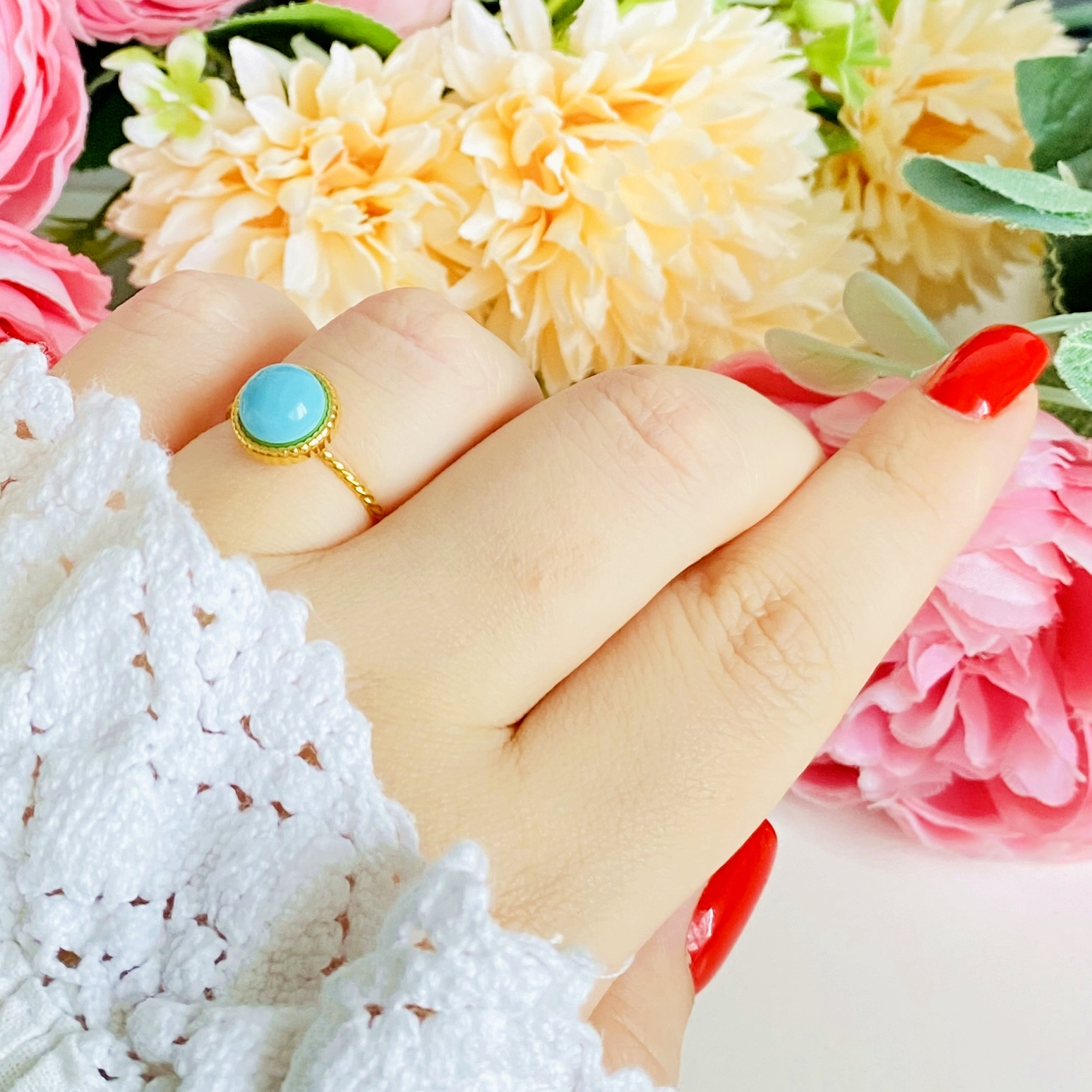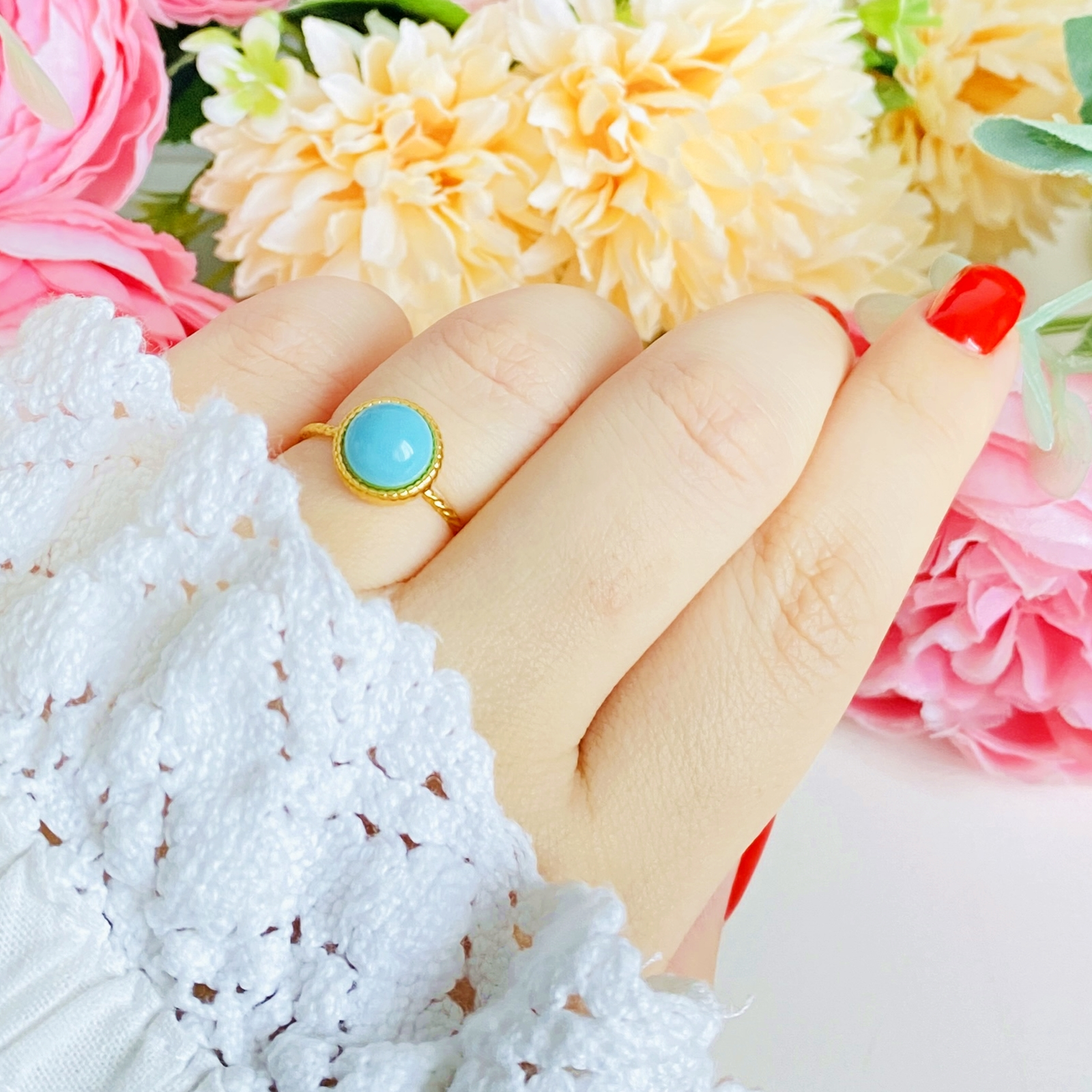Inelul este foarte frumos. Este destul de finuț,iar culoarea pietrei este superbă. Îl recomand cu drag!