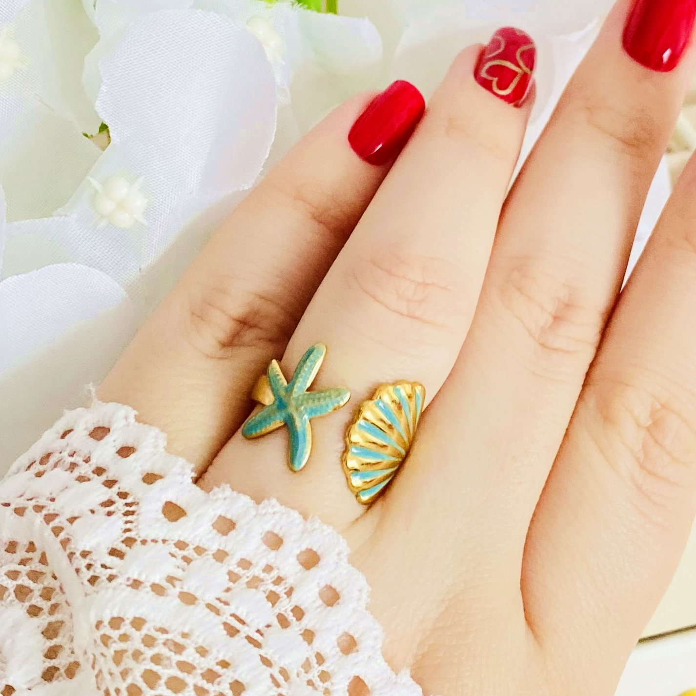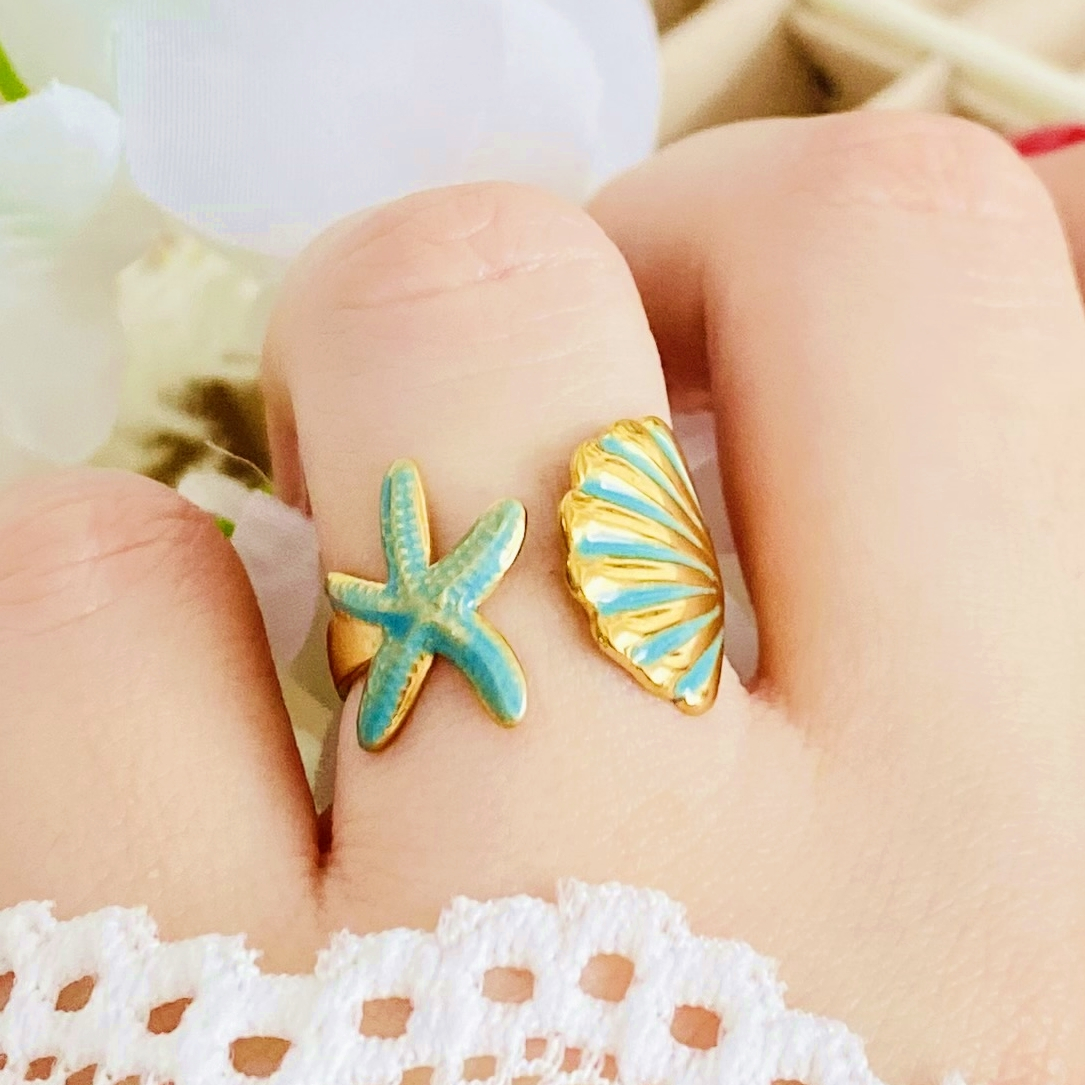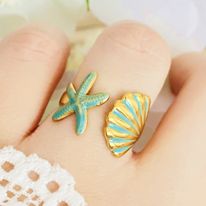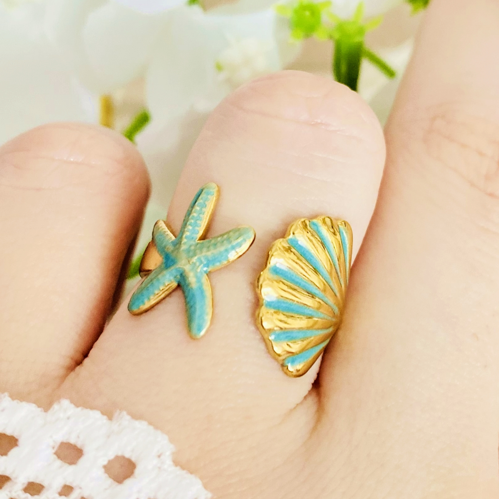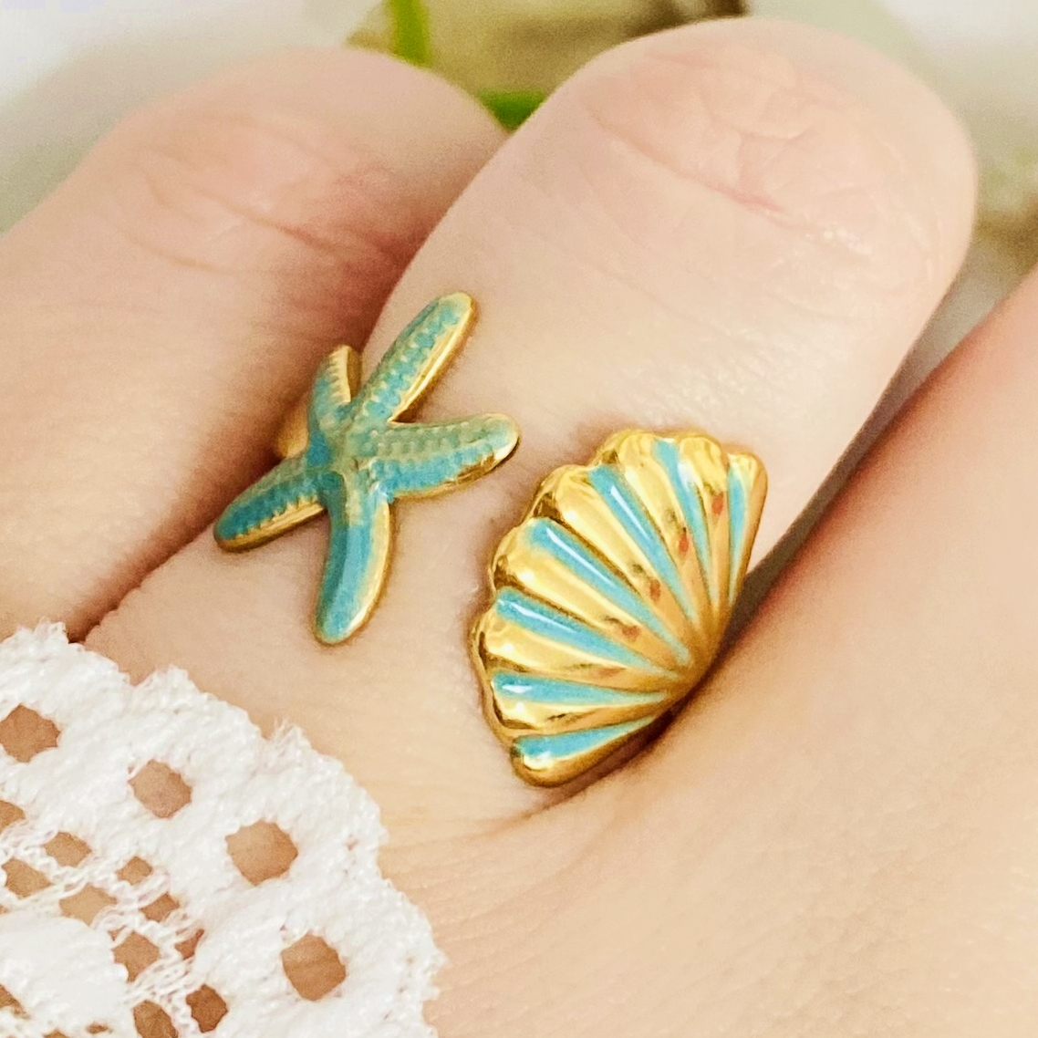 Inel Reglabil Scoica & Stea de Mare - Otel Inoxidabil
