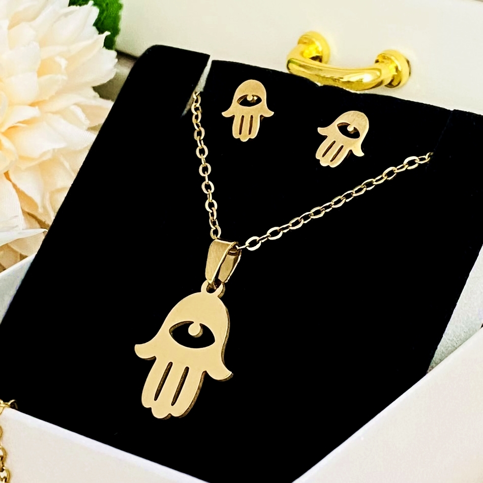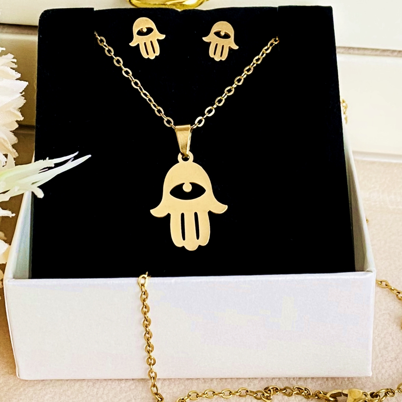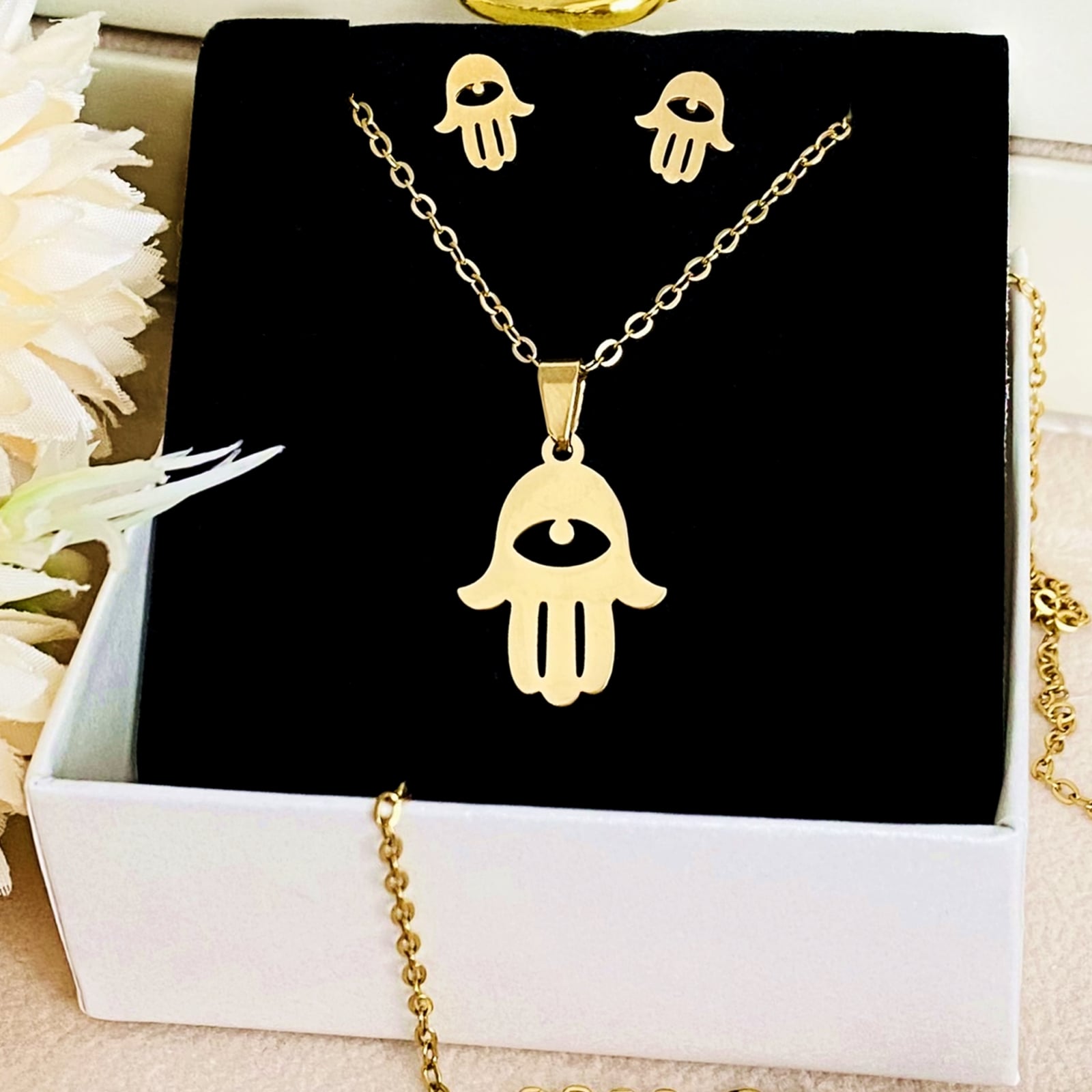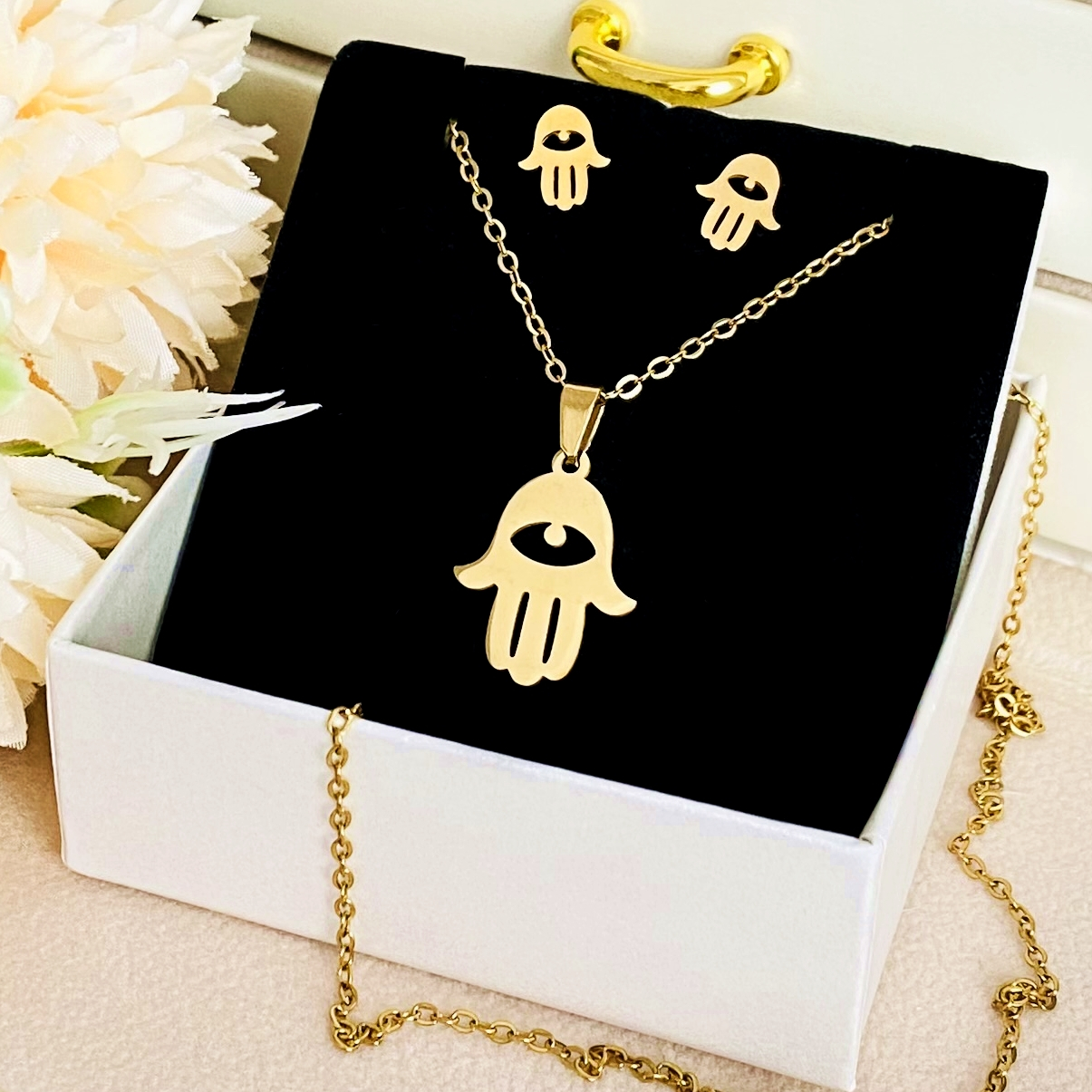 Set Colier & Cercei Hamsa - Otel Inoxidabil