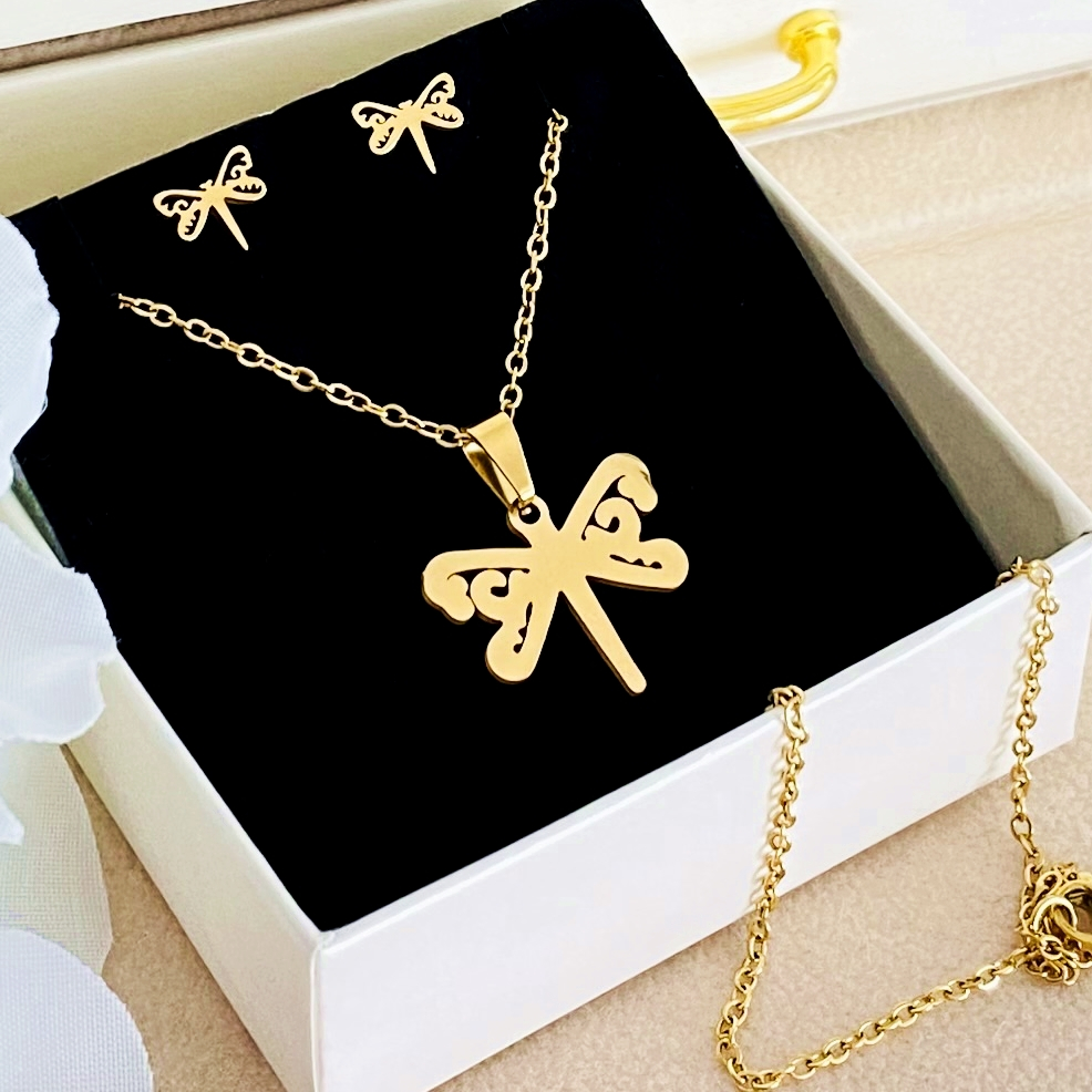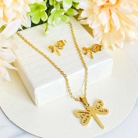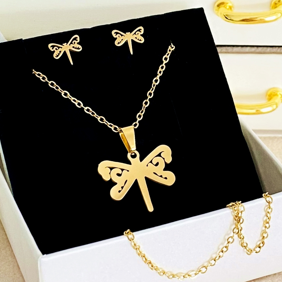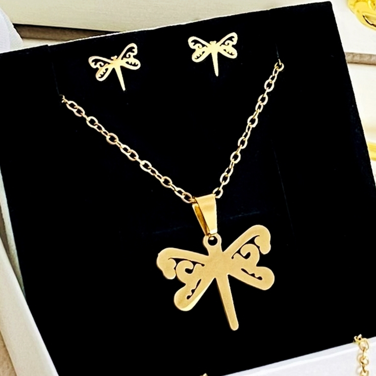 Set Colier & Cercei Libelula - Otel Inoxidabil