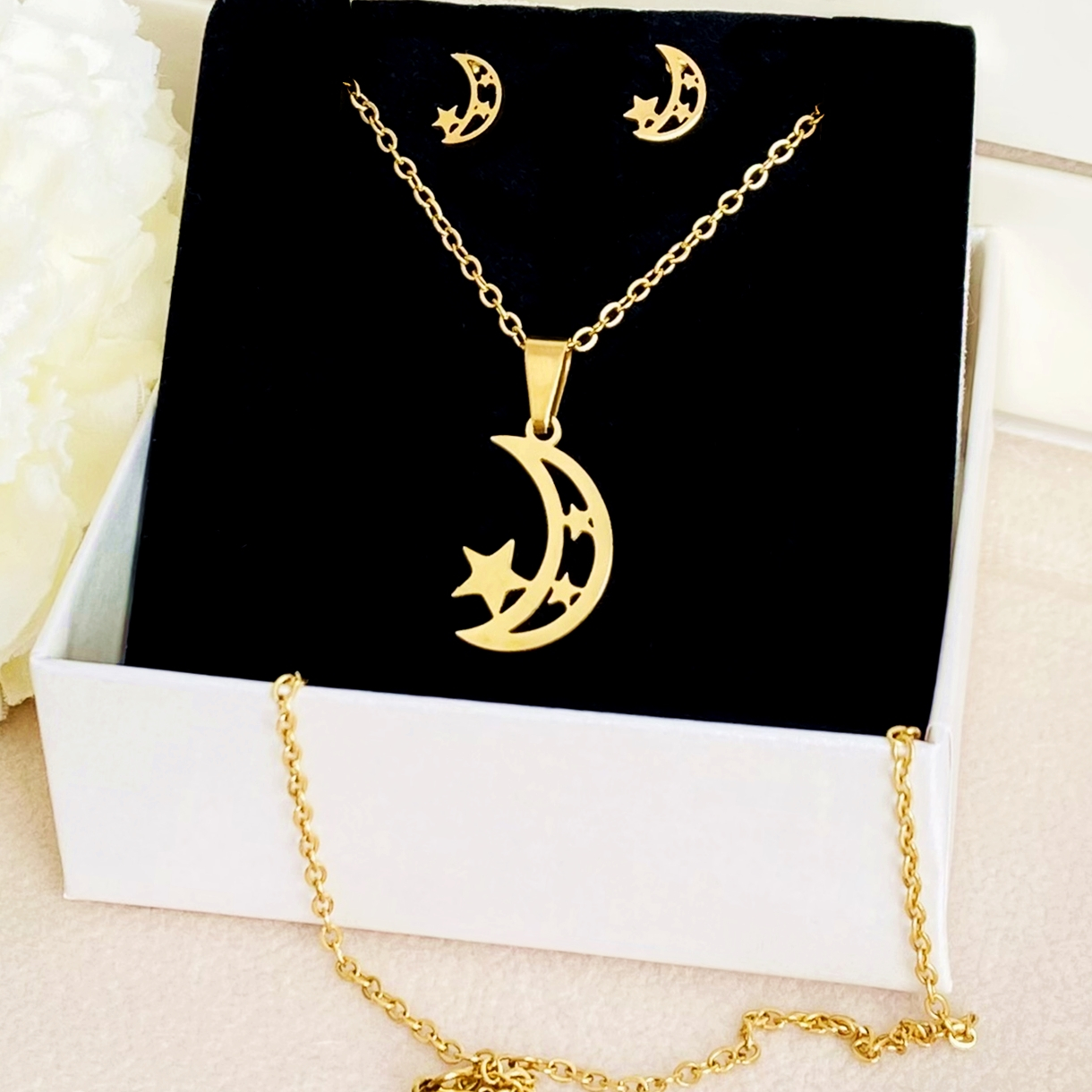 Set Colier & Cercei Luna Stele - Otel Inoxidabil