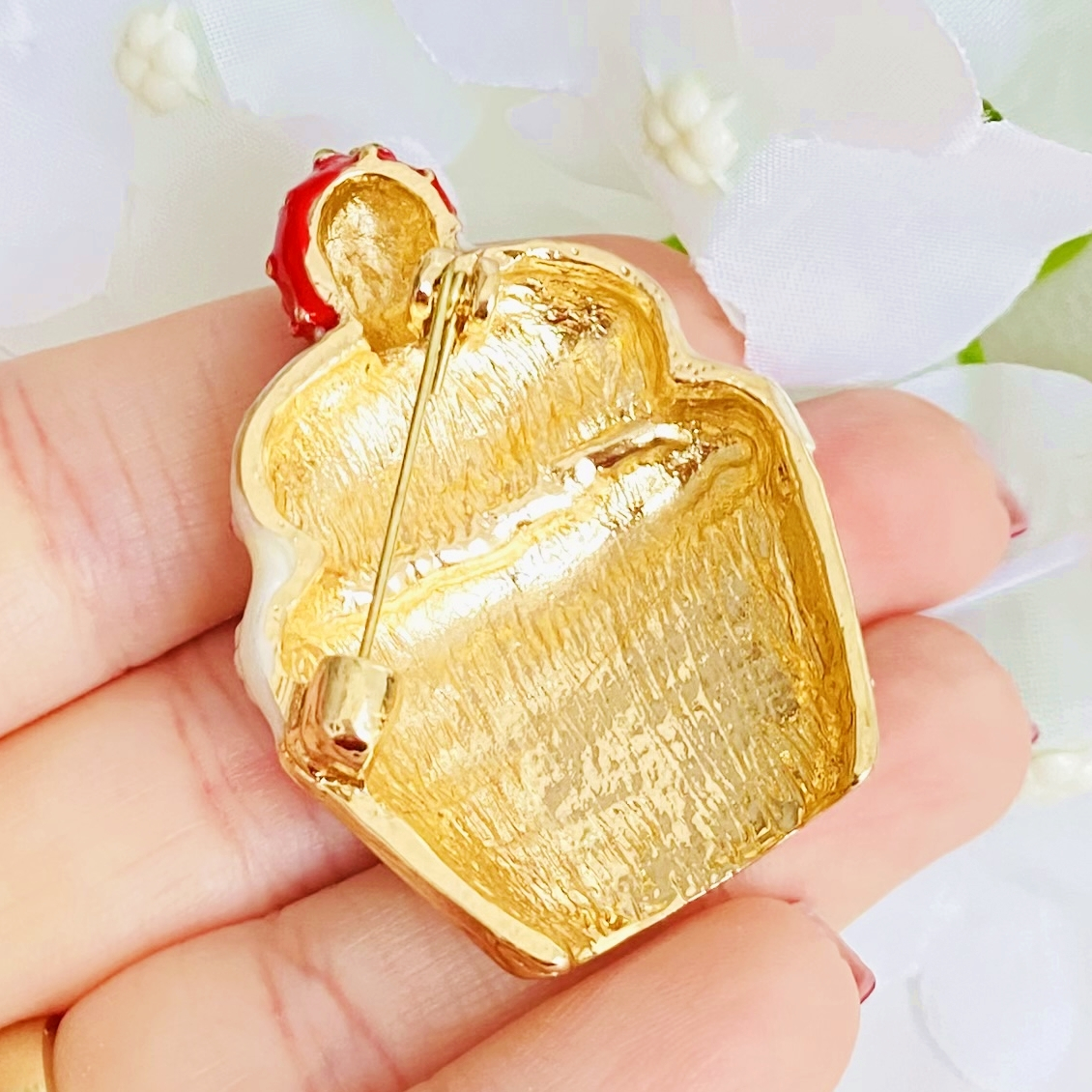 Brosa statement, decorata cu email, absolut superba, ce-ti va accesoriza cu succes o multime de outfit-uri minunate.