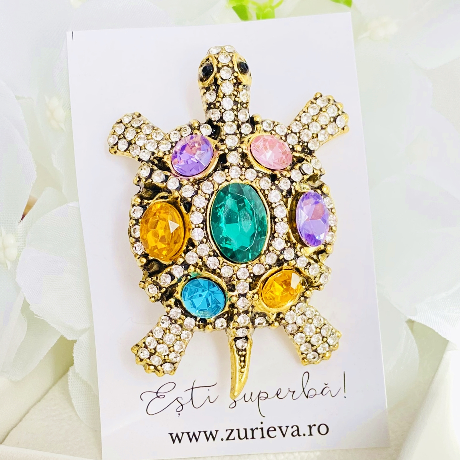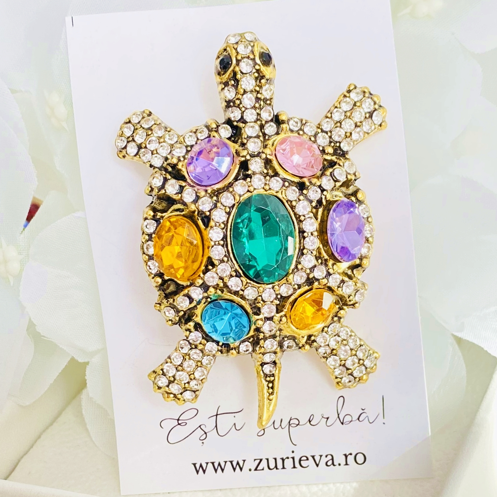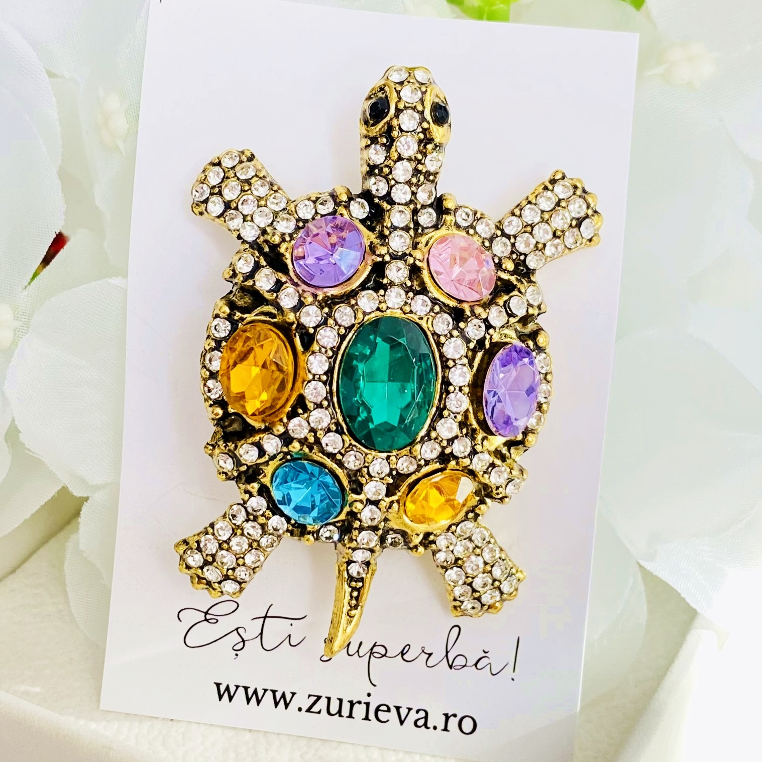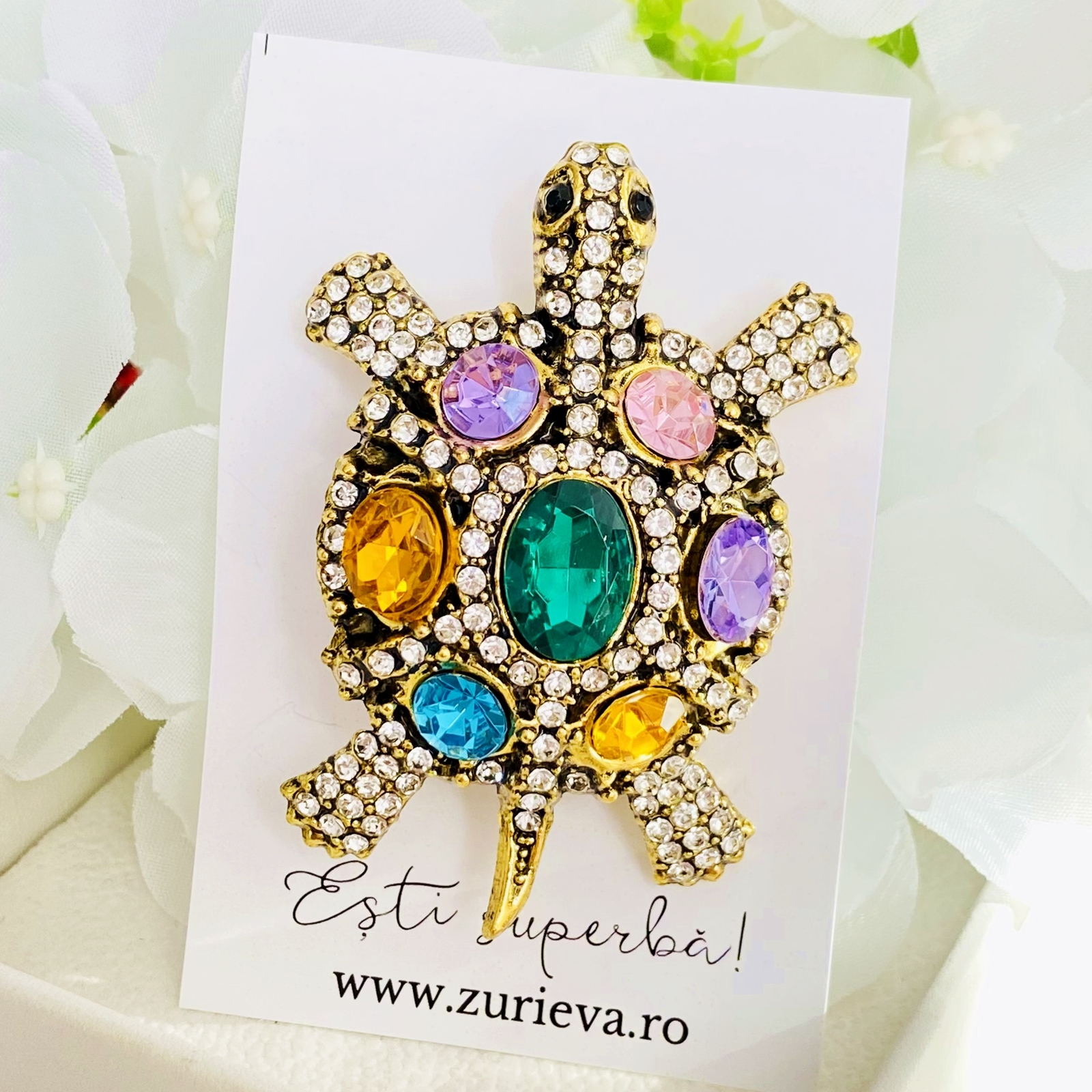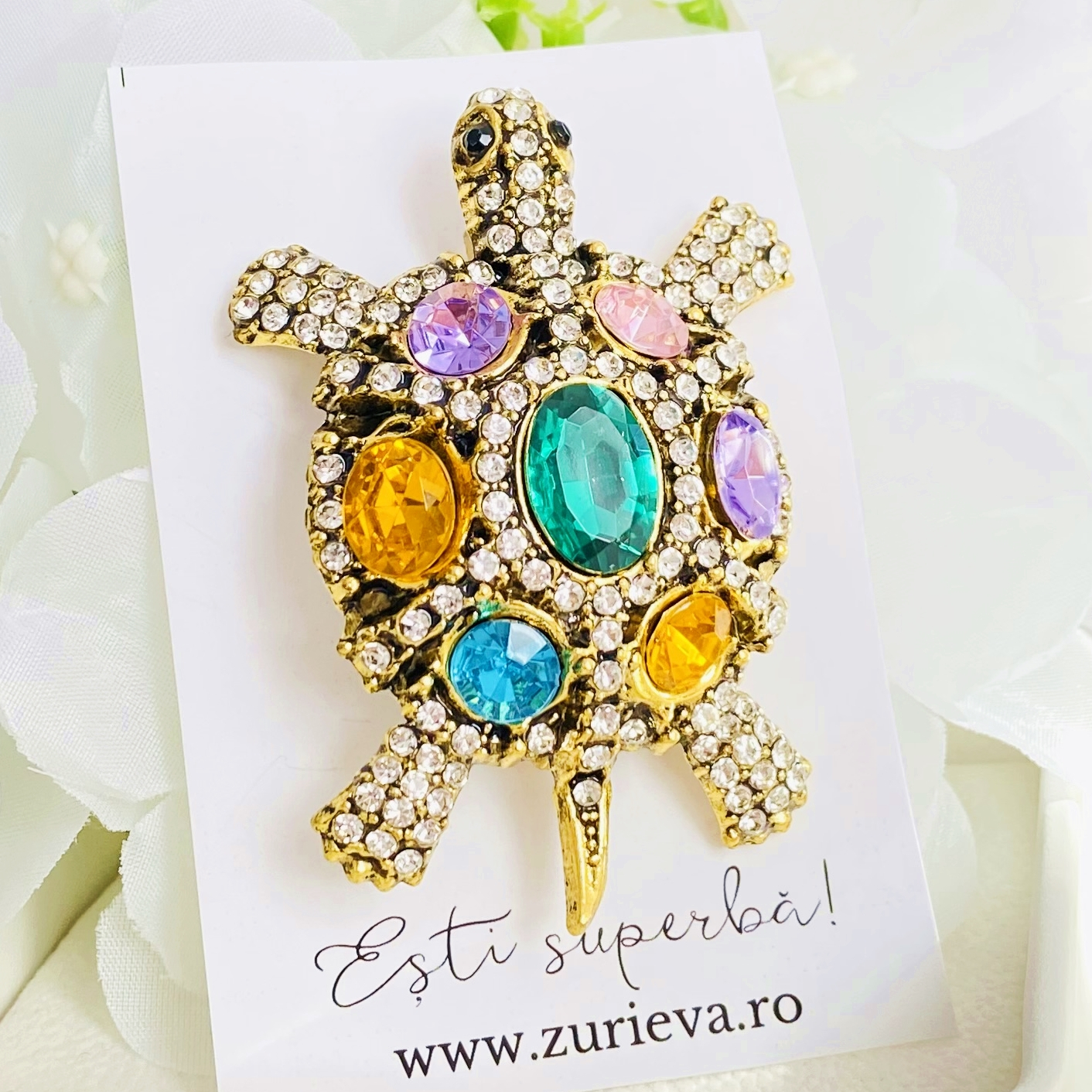Brosa eleganta, decorata cu cristale, absolut superba, ce-ti va accesoriza cu succes o multime de outfit-uri minunate.