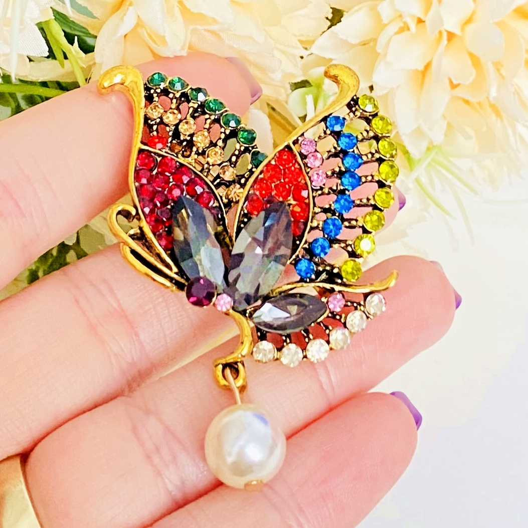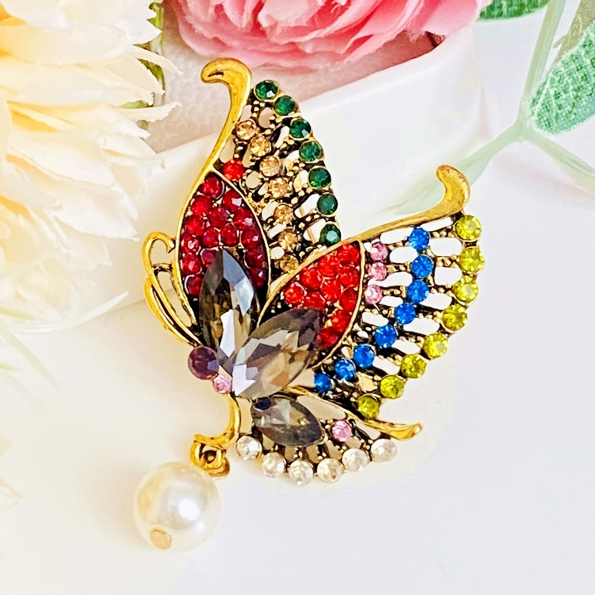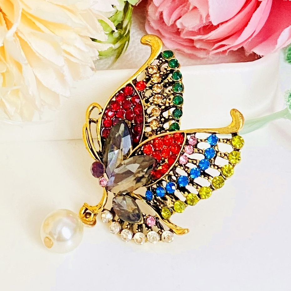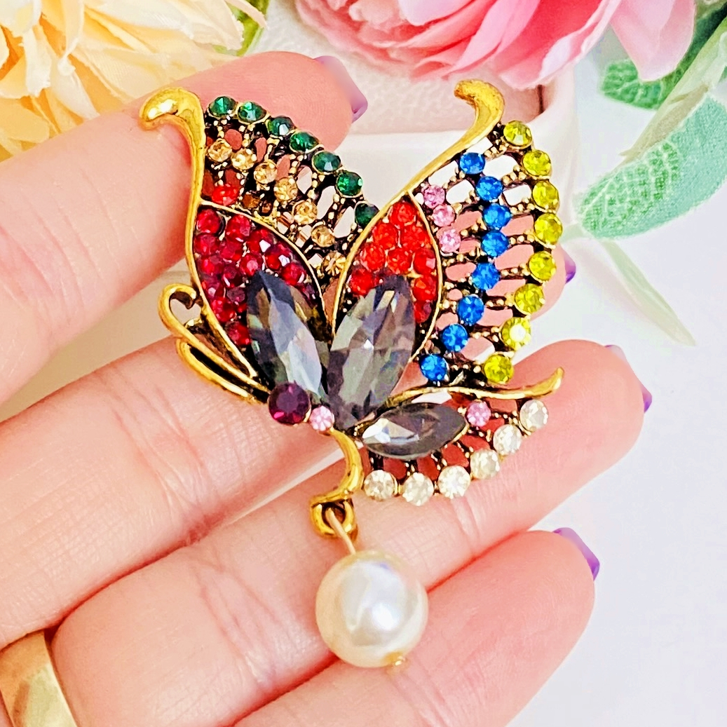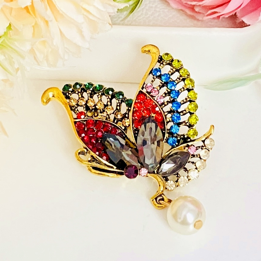 Brosa tare simpatica, decorata cu cristale, ce poate accesoriza cu succes tinutele tale preferate, fiind perfecta pentru a-ti completa bluza, sacoul ori paltonul preferat.