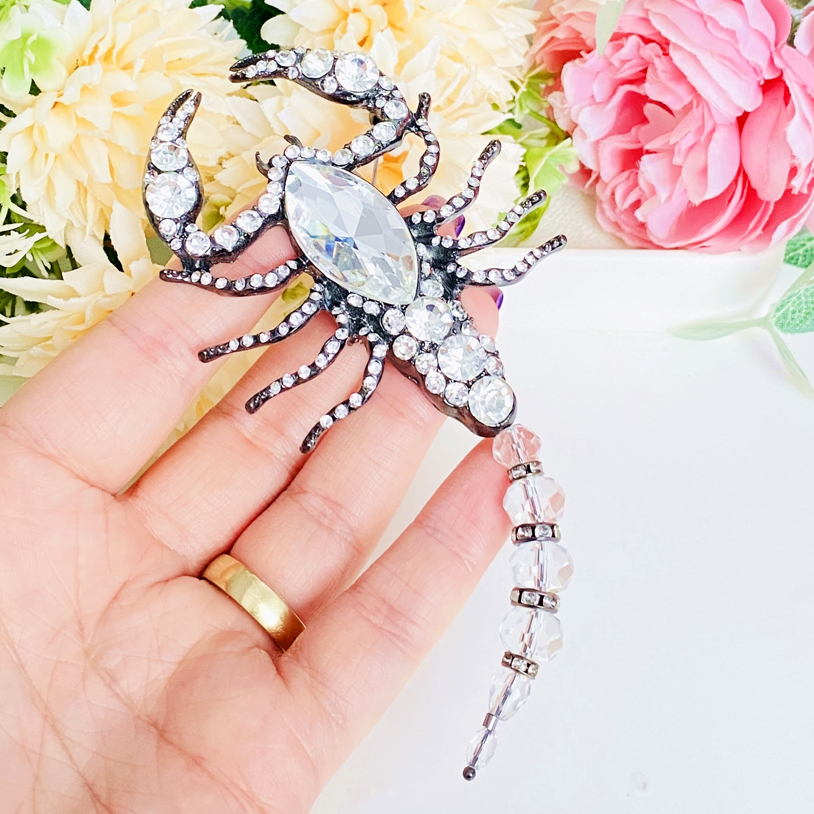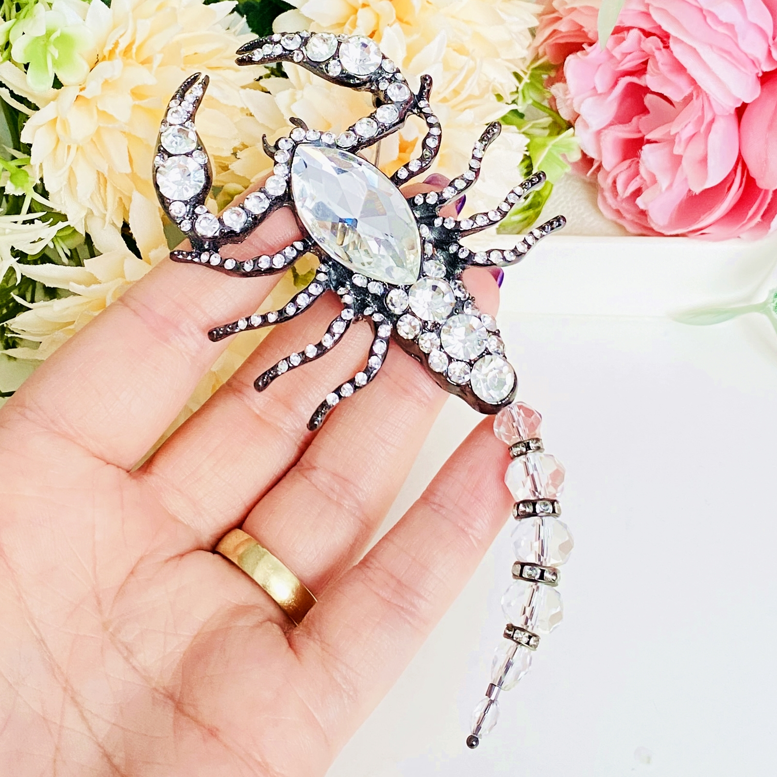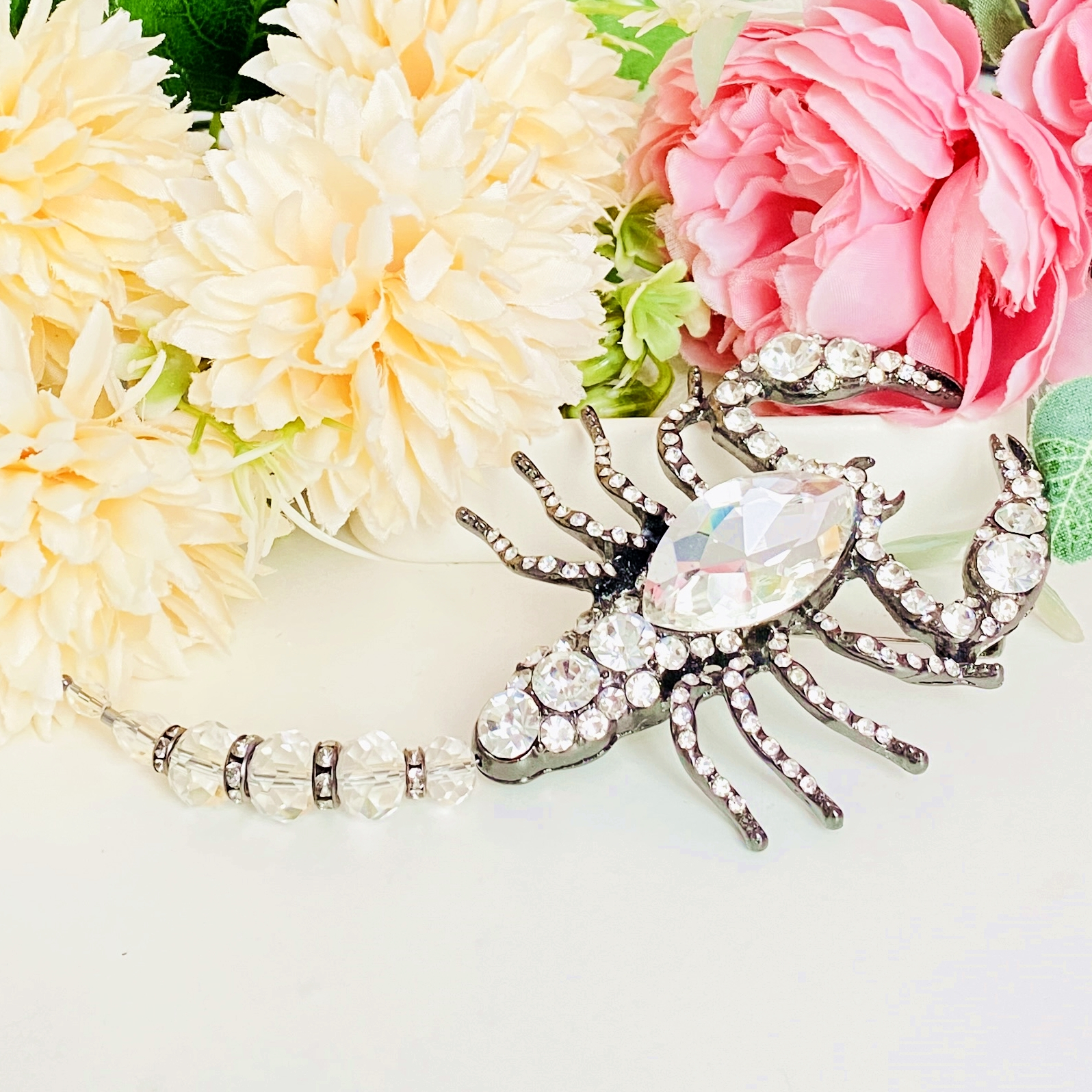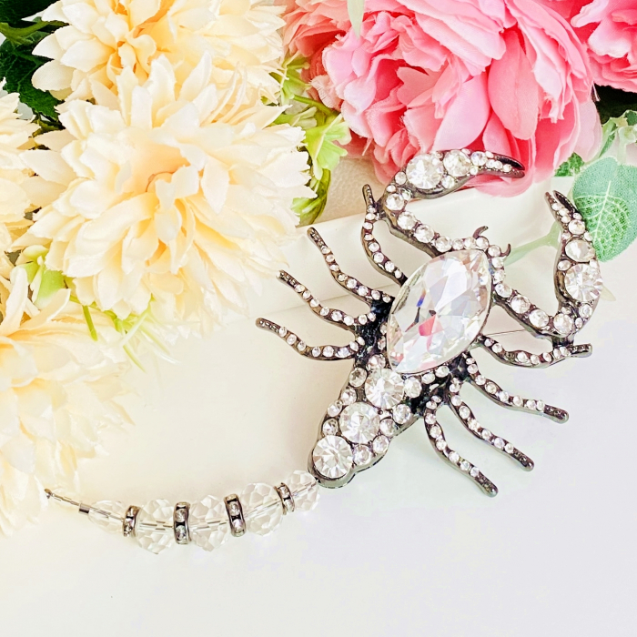Brosa statement, impunatoare, decorata cu cristale, ce poate accesoriza cu succes tinutele tale preferate, fiind perfecta pentru a-ti completa bluza, sacoul ori paltonul preferat.