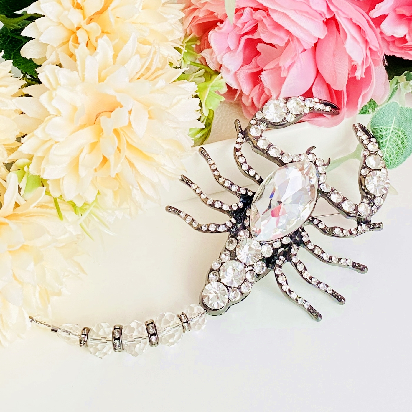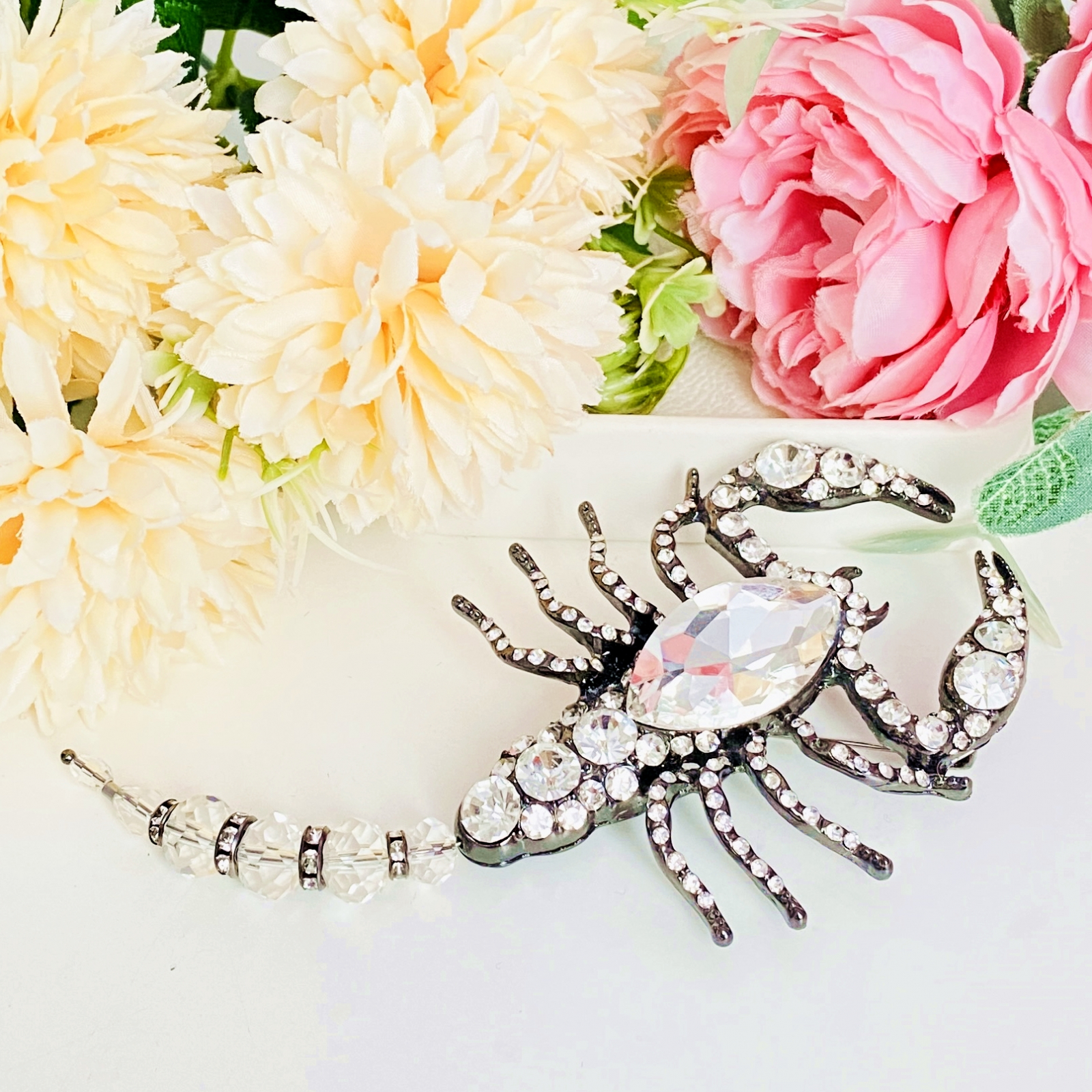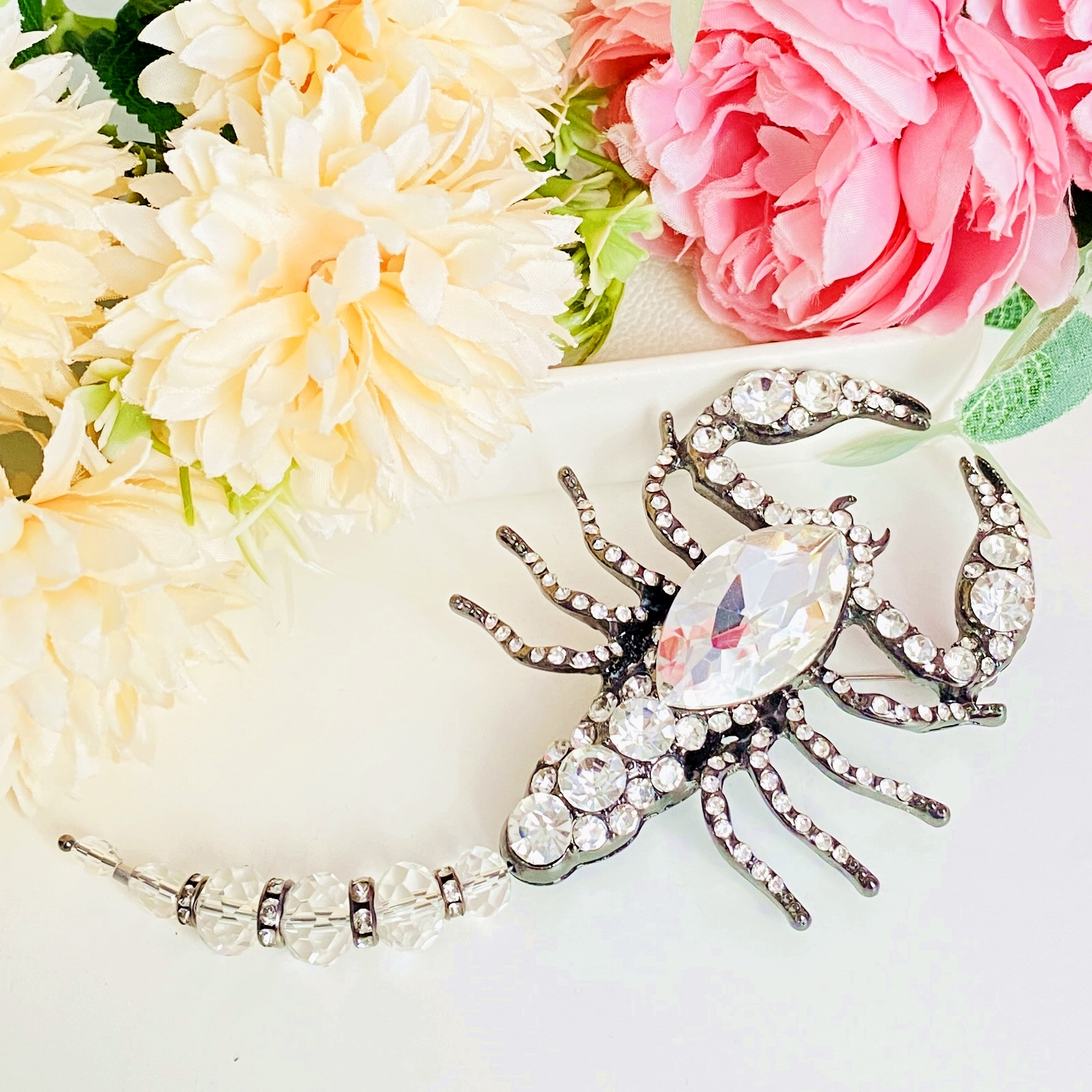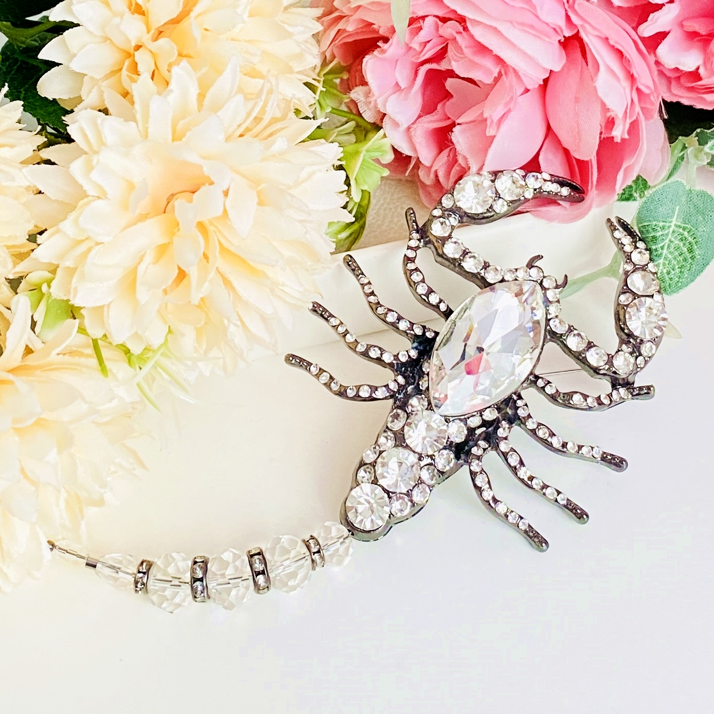 Brosa statement, impunatoare, decorata cu cristale, ce poate accesoriza cu succes tinutele tale preferate, fiind perfecta pentru a-ti completa bluza, sacoul ori paltonul preferat.