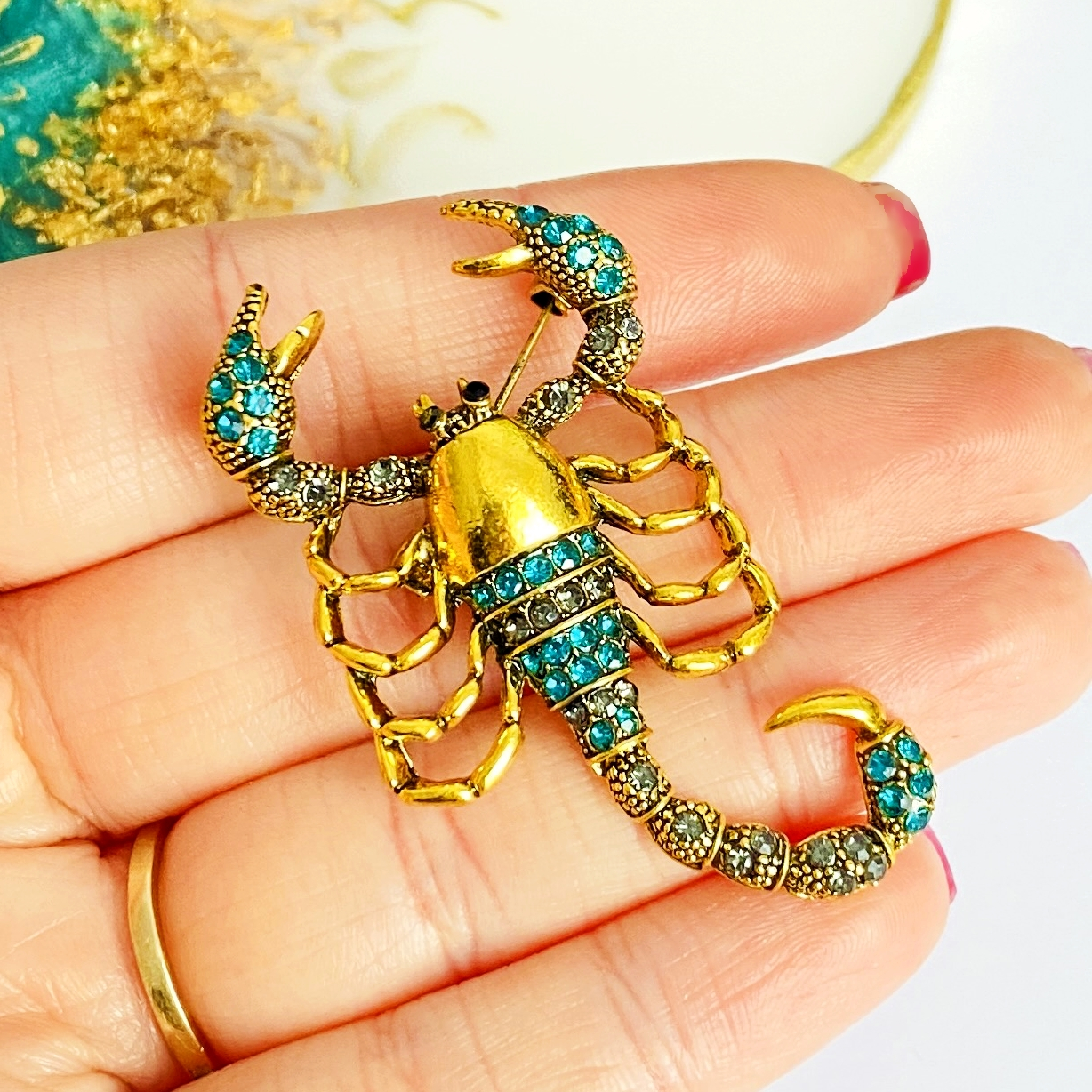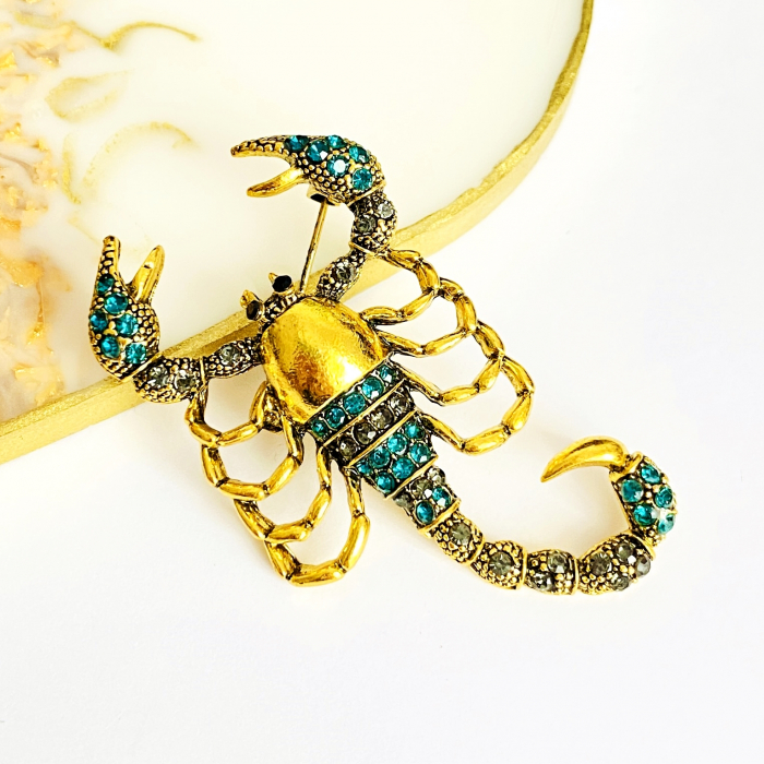 Brosa Scorpion Auriu & Turcoaz
