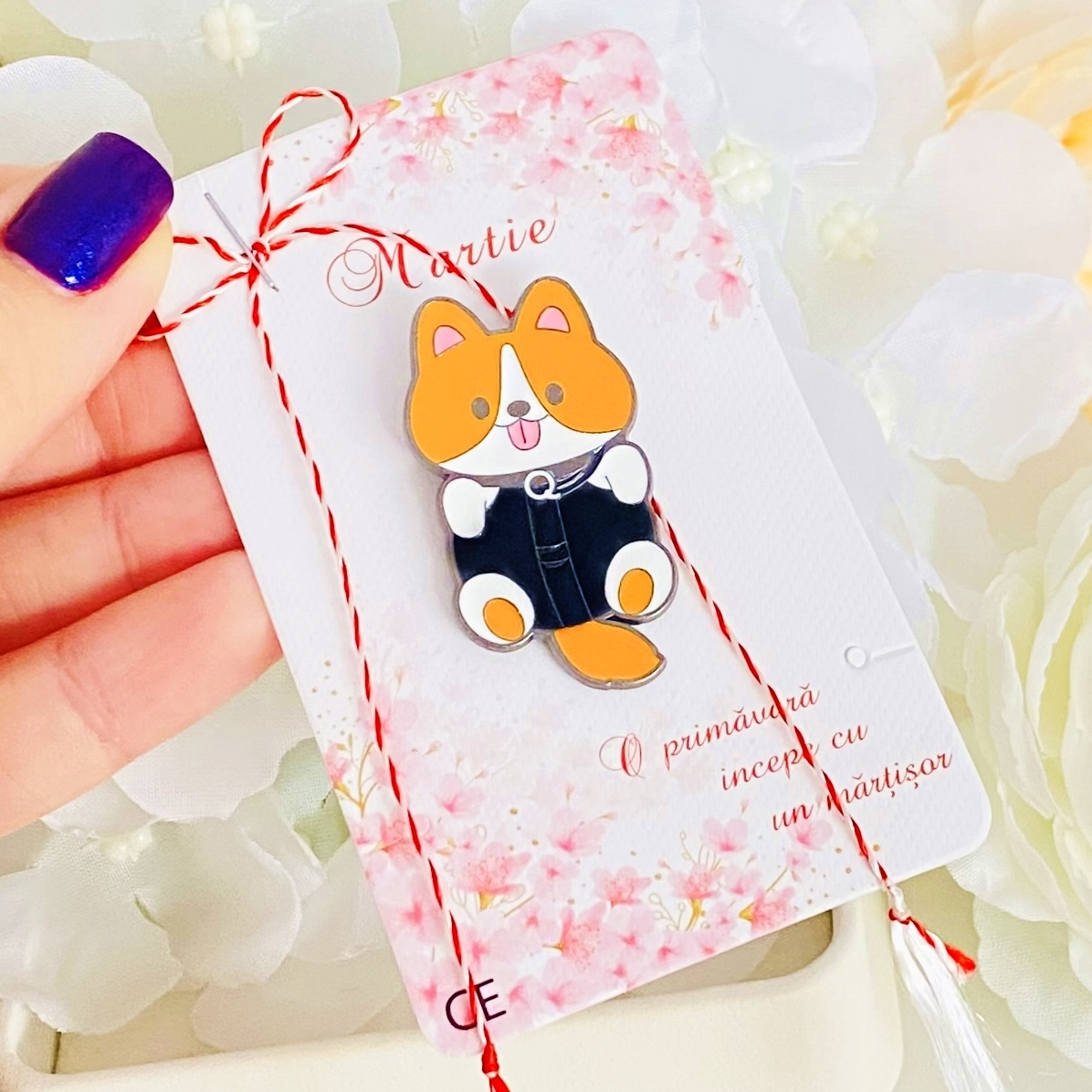 ambalata de martisor, cu cartonas cu un mesaj primavaratic, snur de martisor si saculet de organza, gata de a fi oferit cadou.