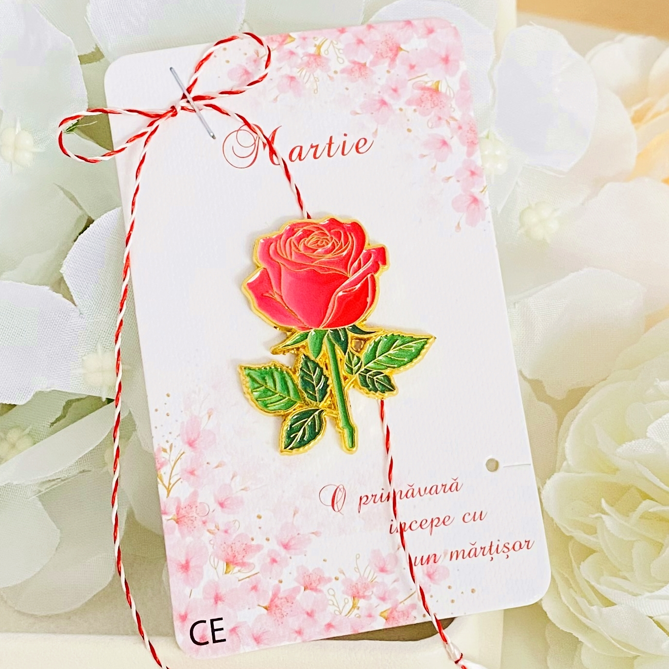 ambalata de martisor, cu cartonas cu un mesaj primavaratic, snur de martisor si saculet de organza, gata de a fi oferit cadou.