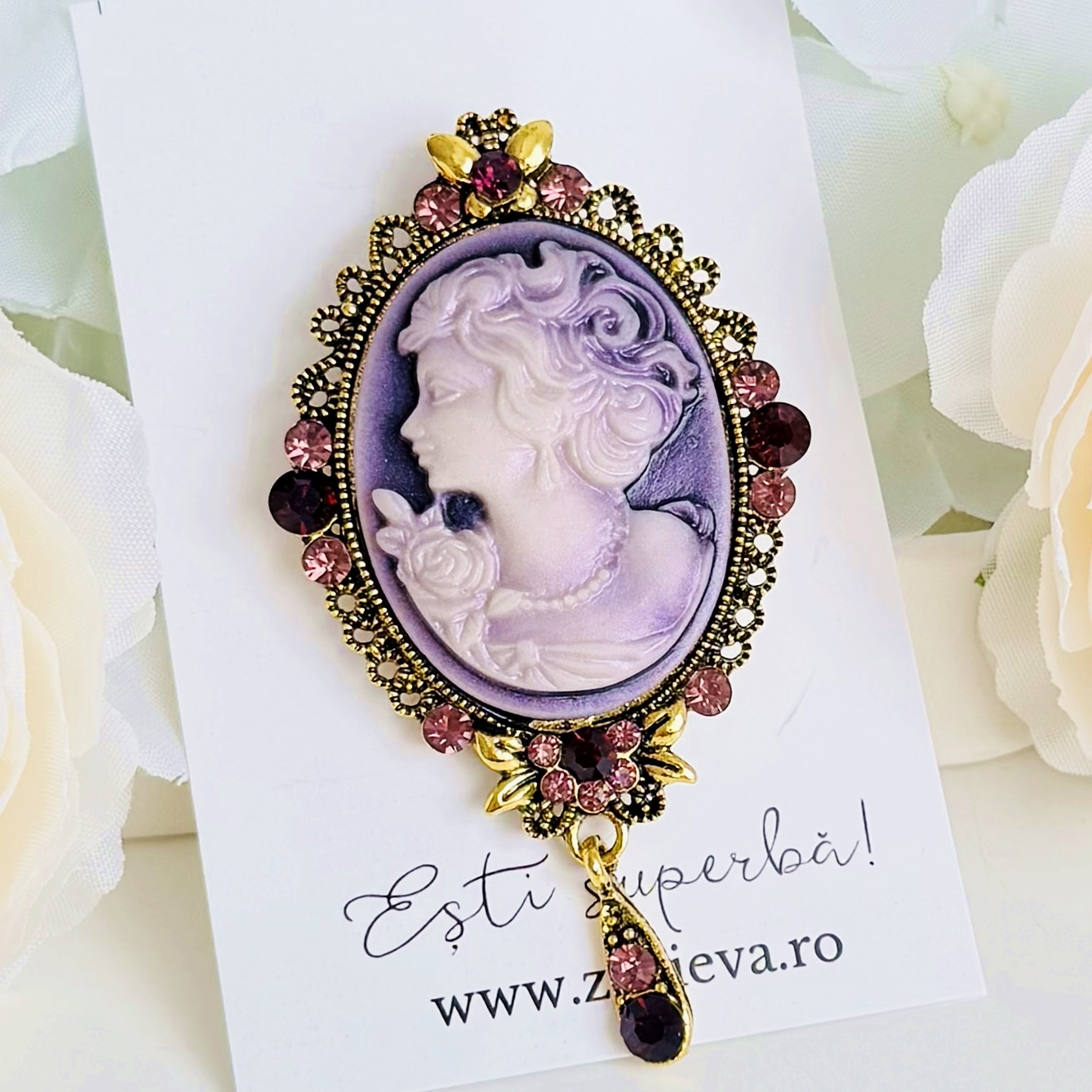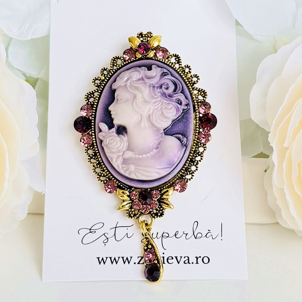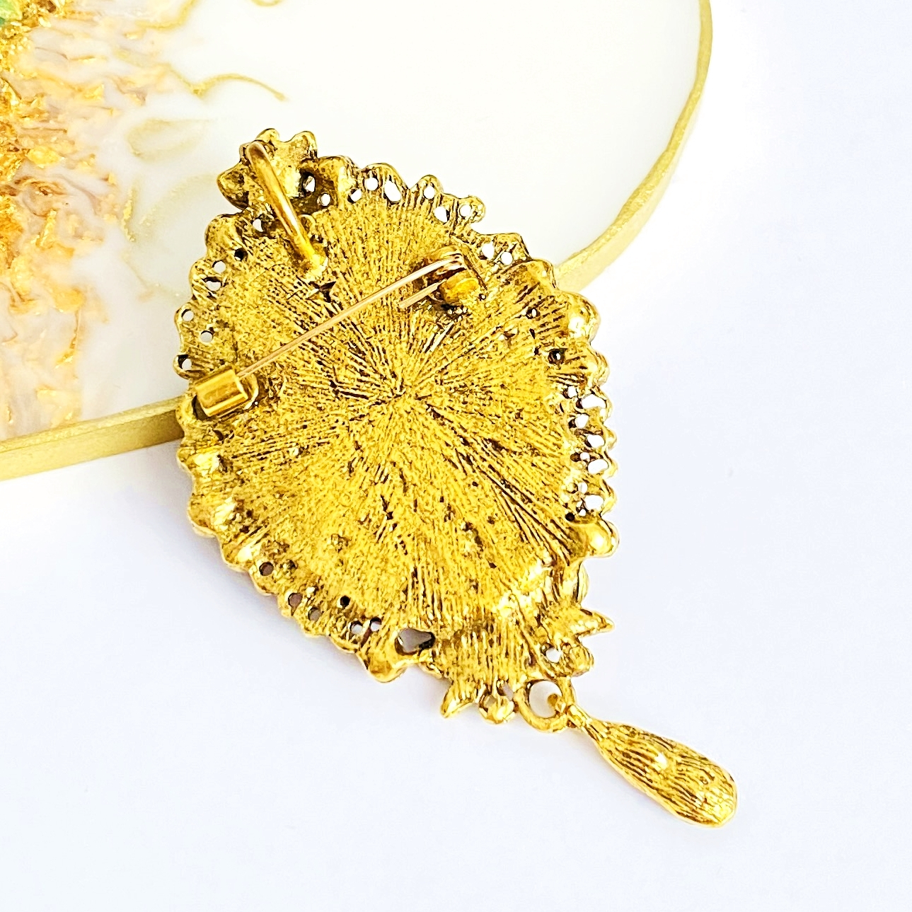 Brosa statement, eleganta, plina de cristale, absolut superba, ce-ti va accesoriza cu succes o multime de outfit-uri minunate.