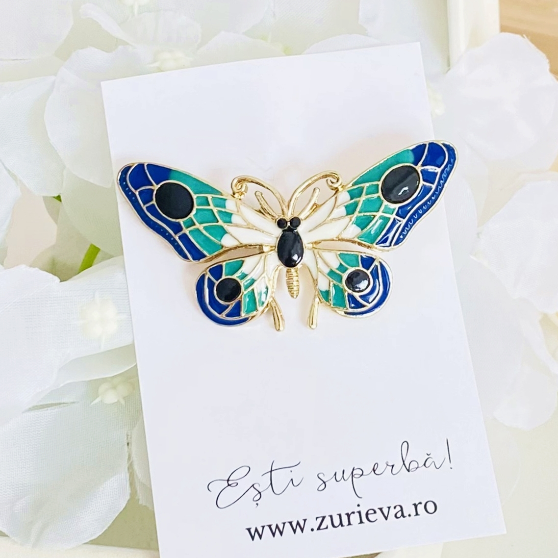 Brosa absolut superba, ce-ti poate completa cu succes o multime de tinute, scotandu-le din anonimat.