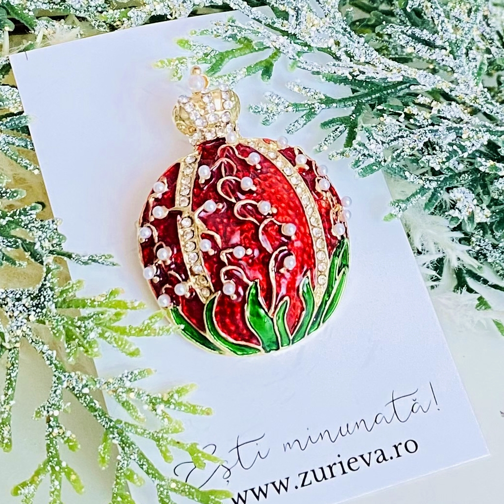 Brosa craciunistica, bogat decorata, perfecta pentru a fi oferita cadou celor dragi de Sarbatori.
