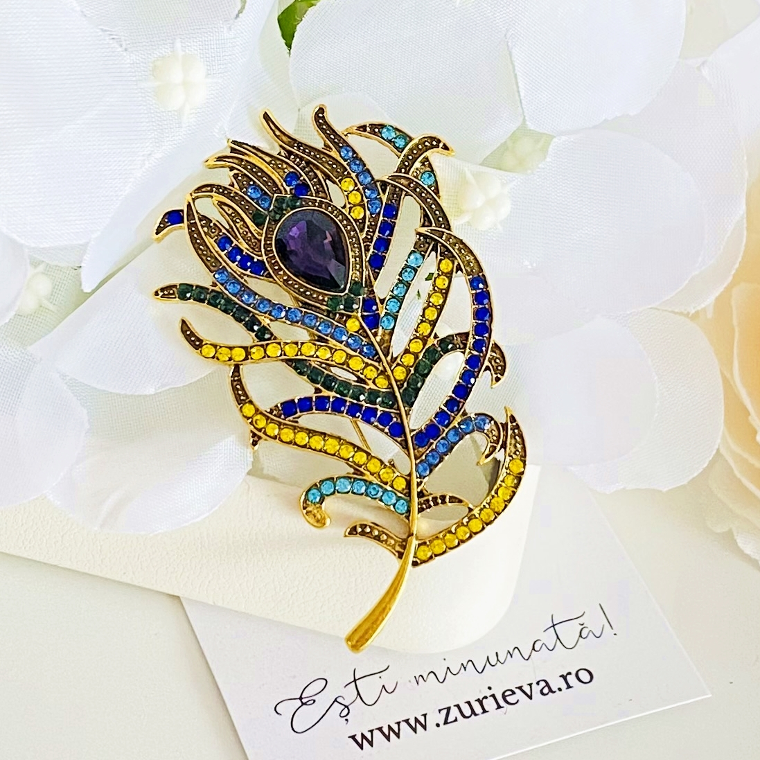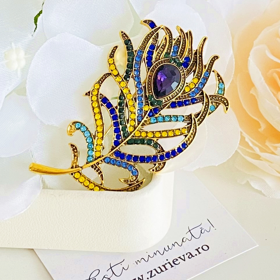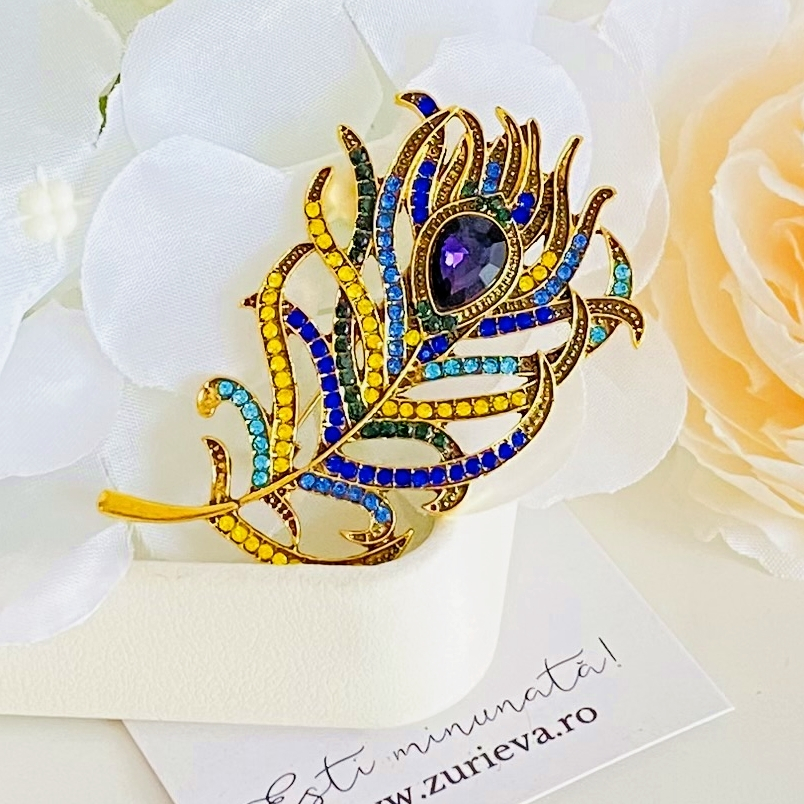 Brosa eleganta, plina de cristale, absolut superba, ce-ti poate completa cu succes o multime de tinute, scotandu-le din anonimat.