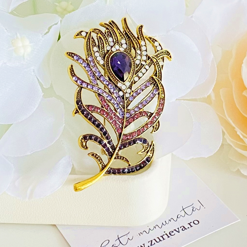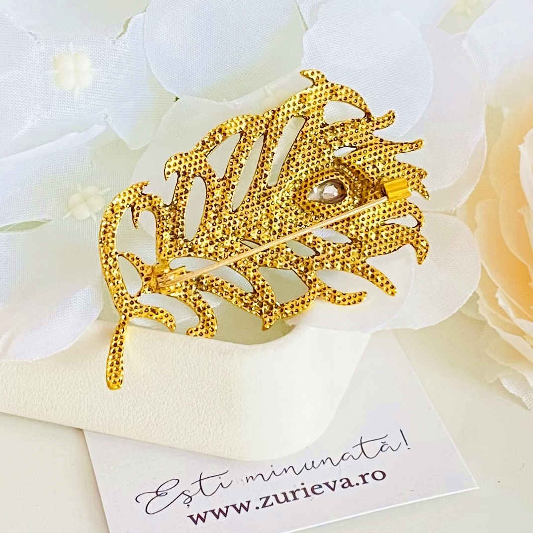 Brosa eleganta, plina de cristale, absolut superba, ce-ti poate completa cu succes o multime de tinute, scotandu-le din anonimat.