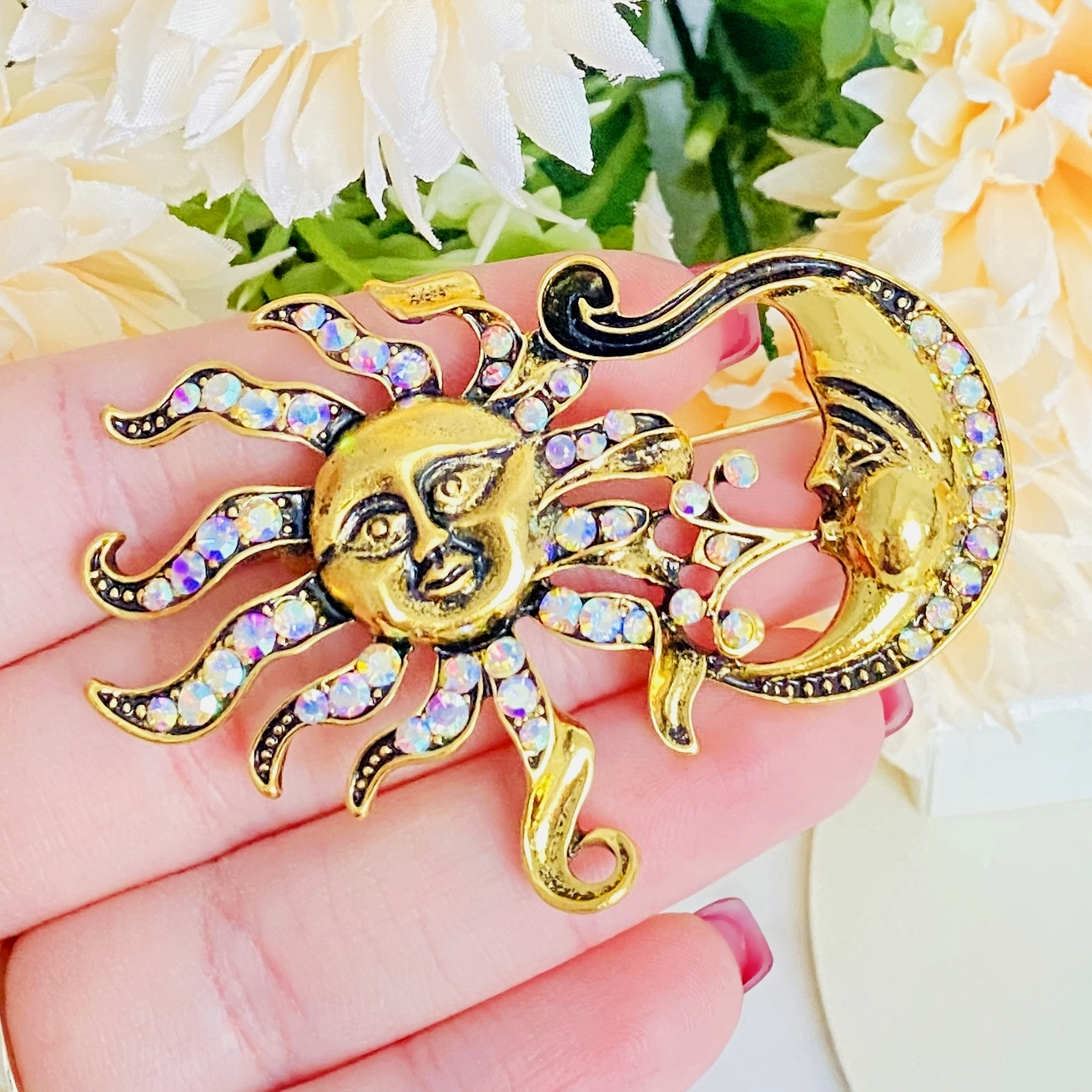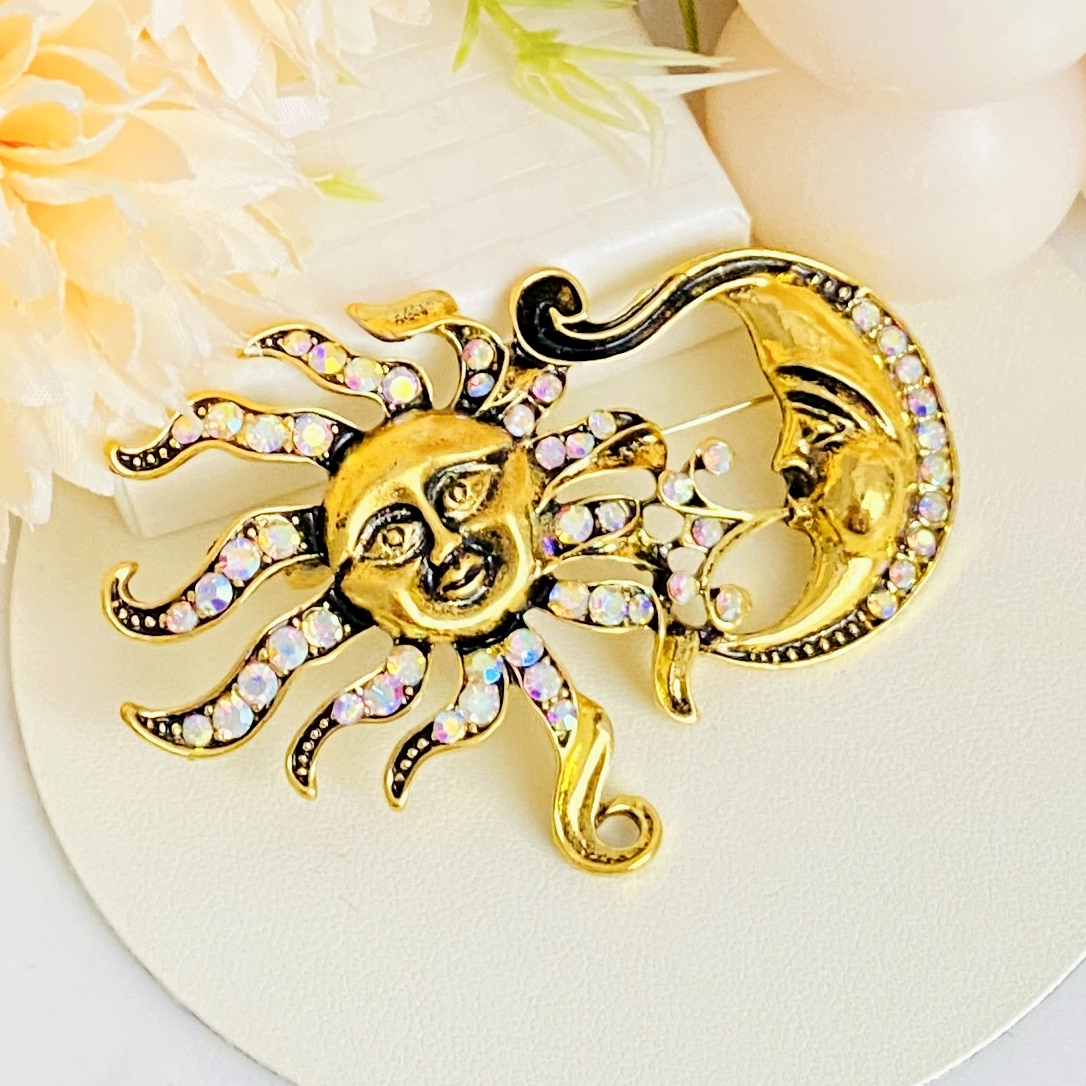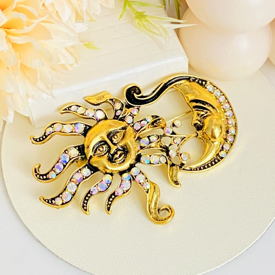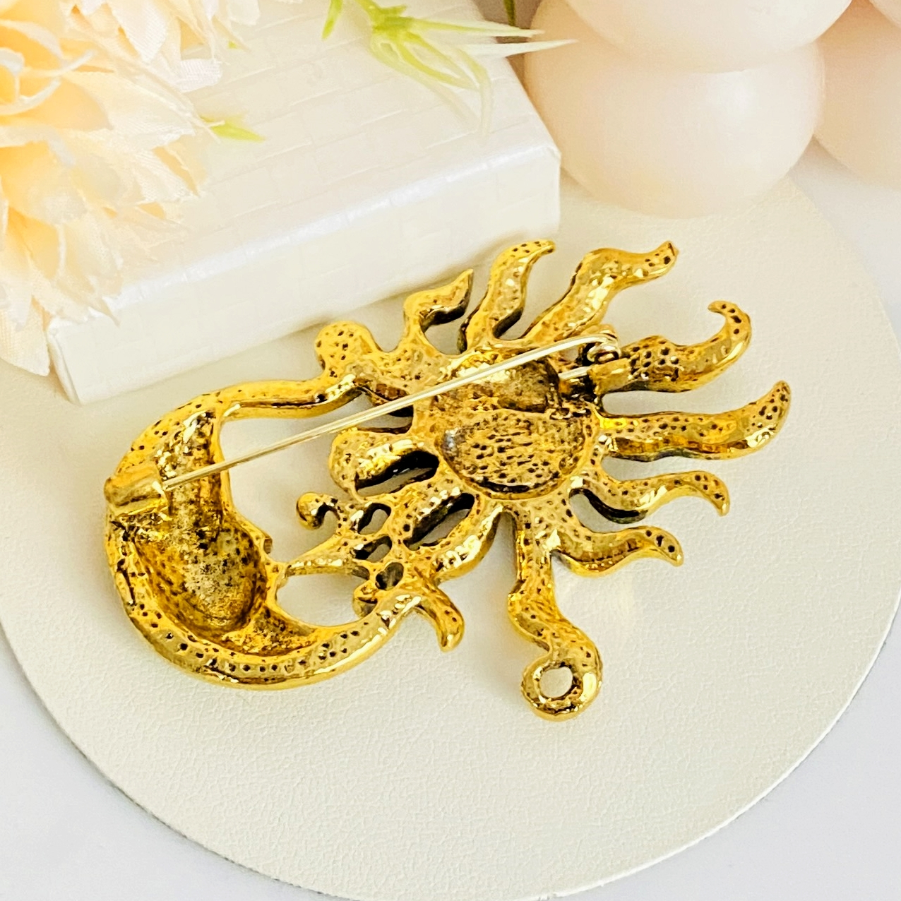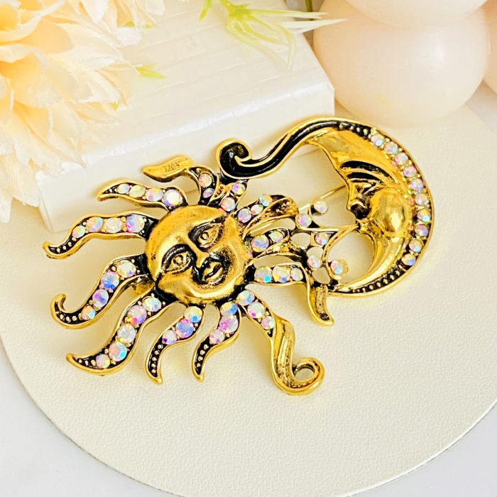 Brosa statement, cu elemente celeste, decorata cu cristale, ce-ti va pune in valoare orice tinuta, atragand toate privirile asupra ta.