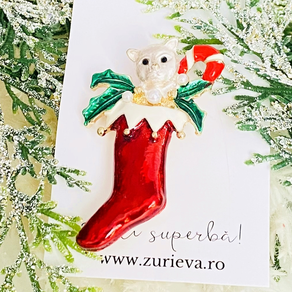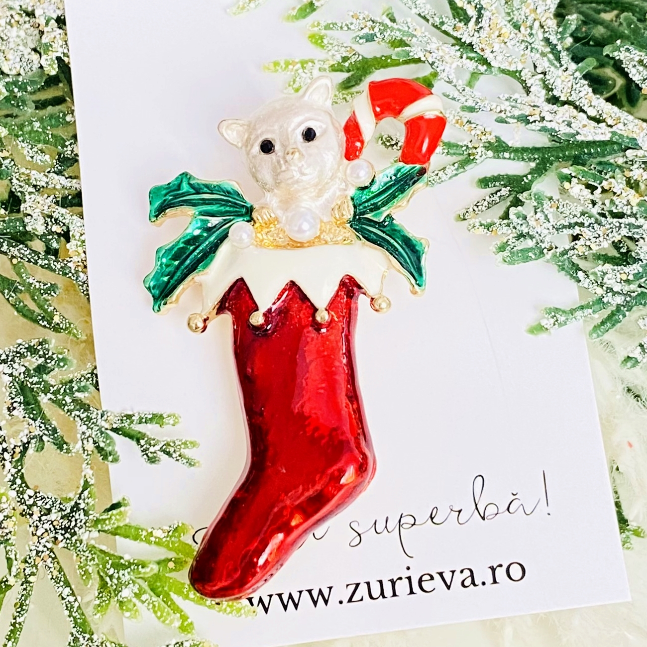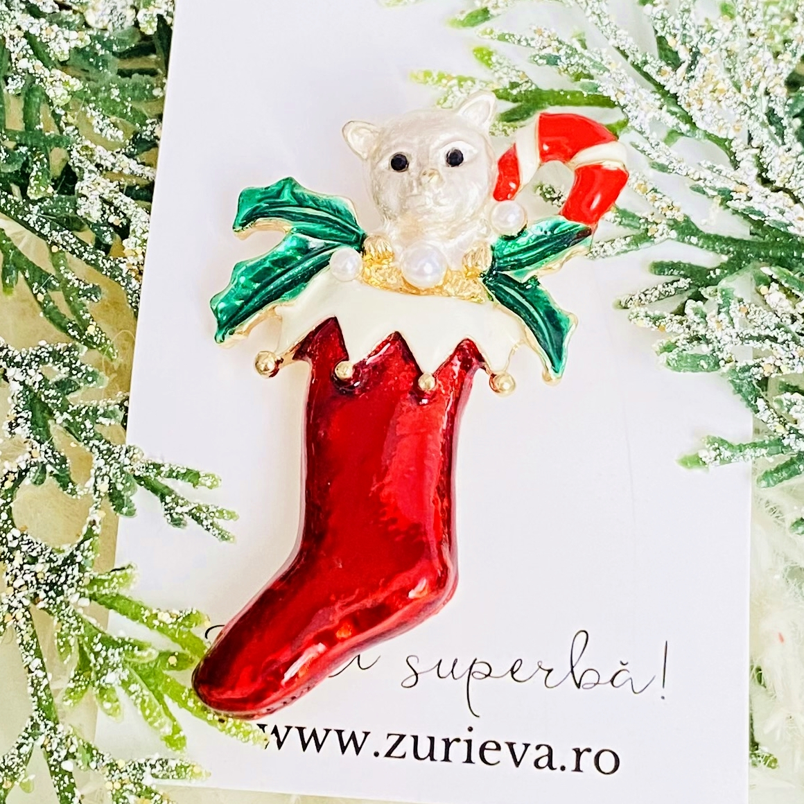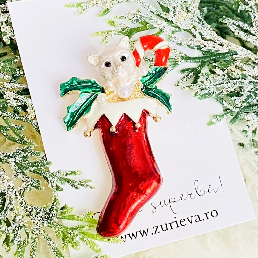 Brosa craciunistica, bogat decorata, perfecta pentru a fi oferita cadou celor dragi de Sarbatori.