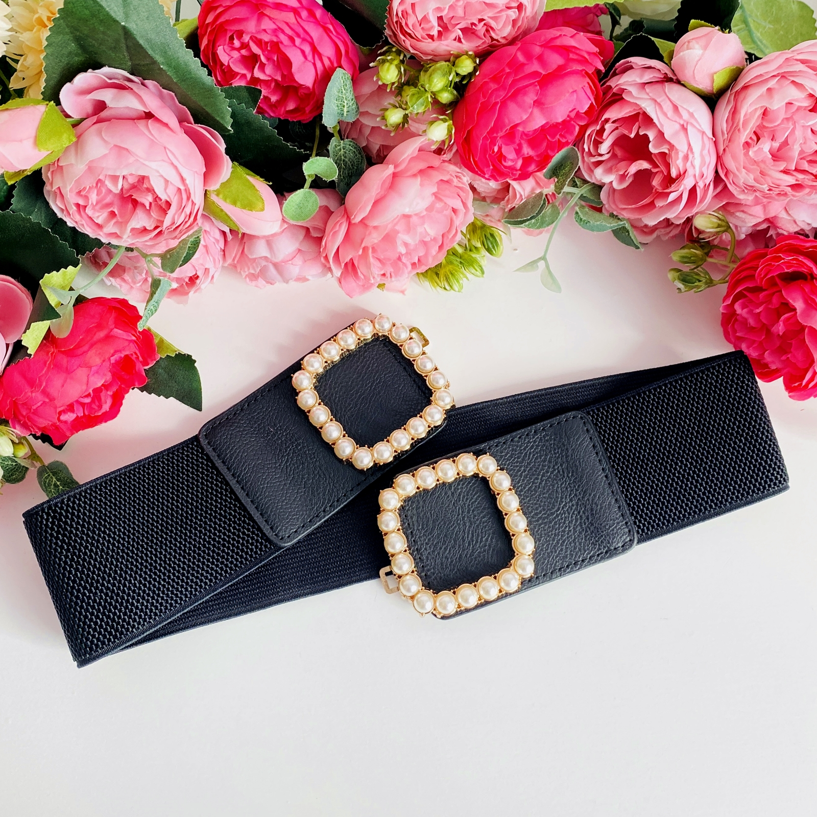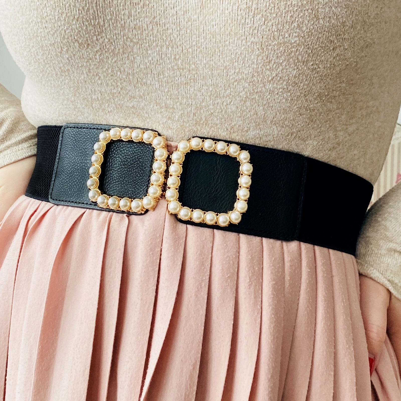 Centura dama, cu o catarama metalica aurie si perlute, absolut superba, ce-ti va pune in evidenta talia si va atrage toate privirile!