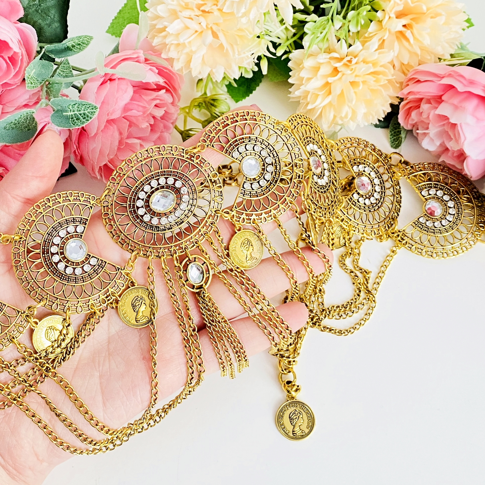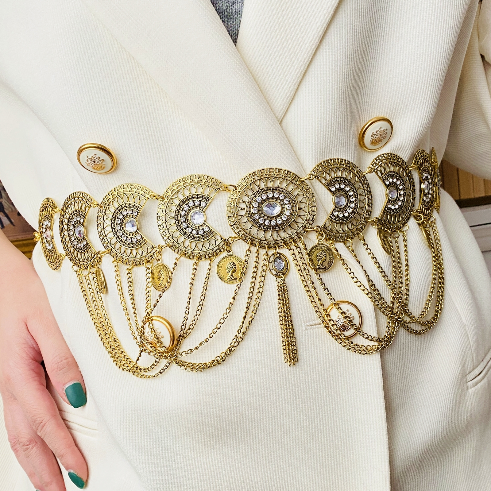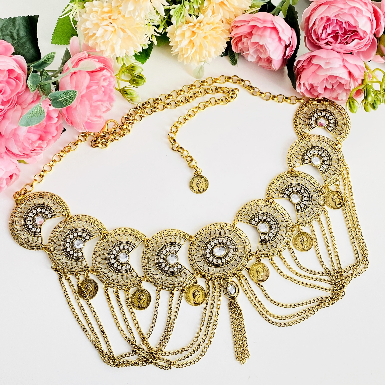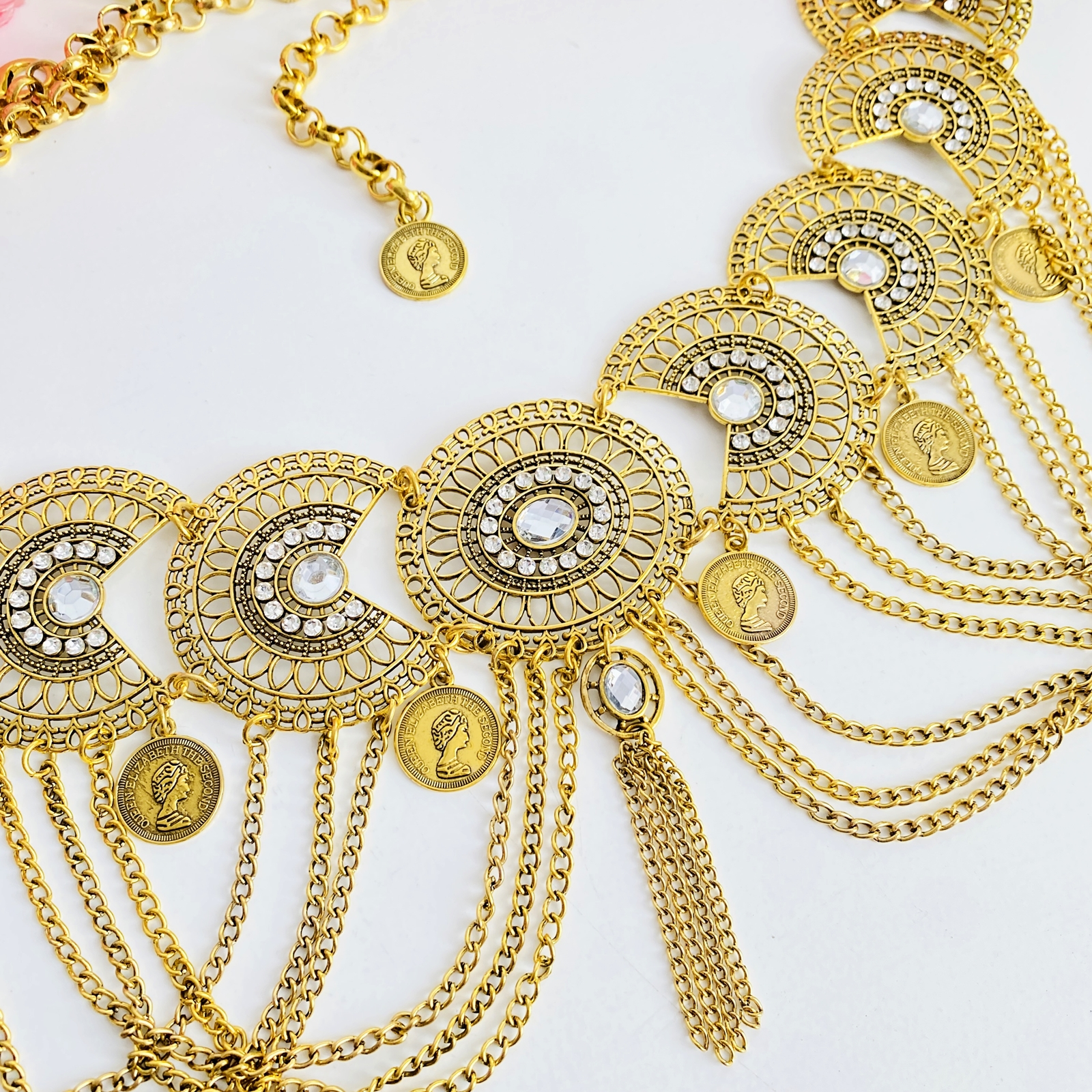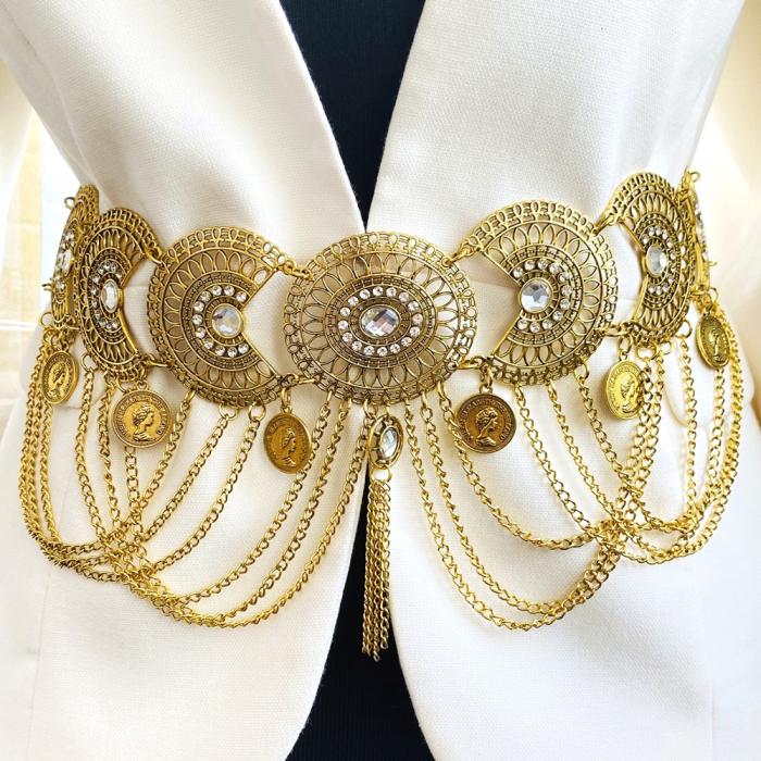 Centura dama, tip bijuterie, decorata cu cristale, absolut superba, ce-ti va pune in evidenta talia si va atrage toate privirile!