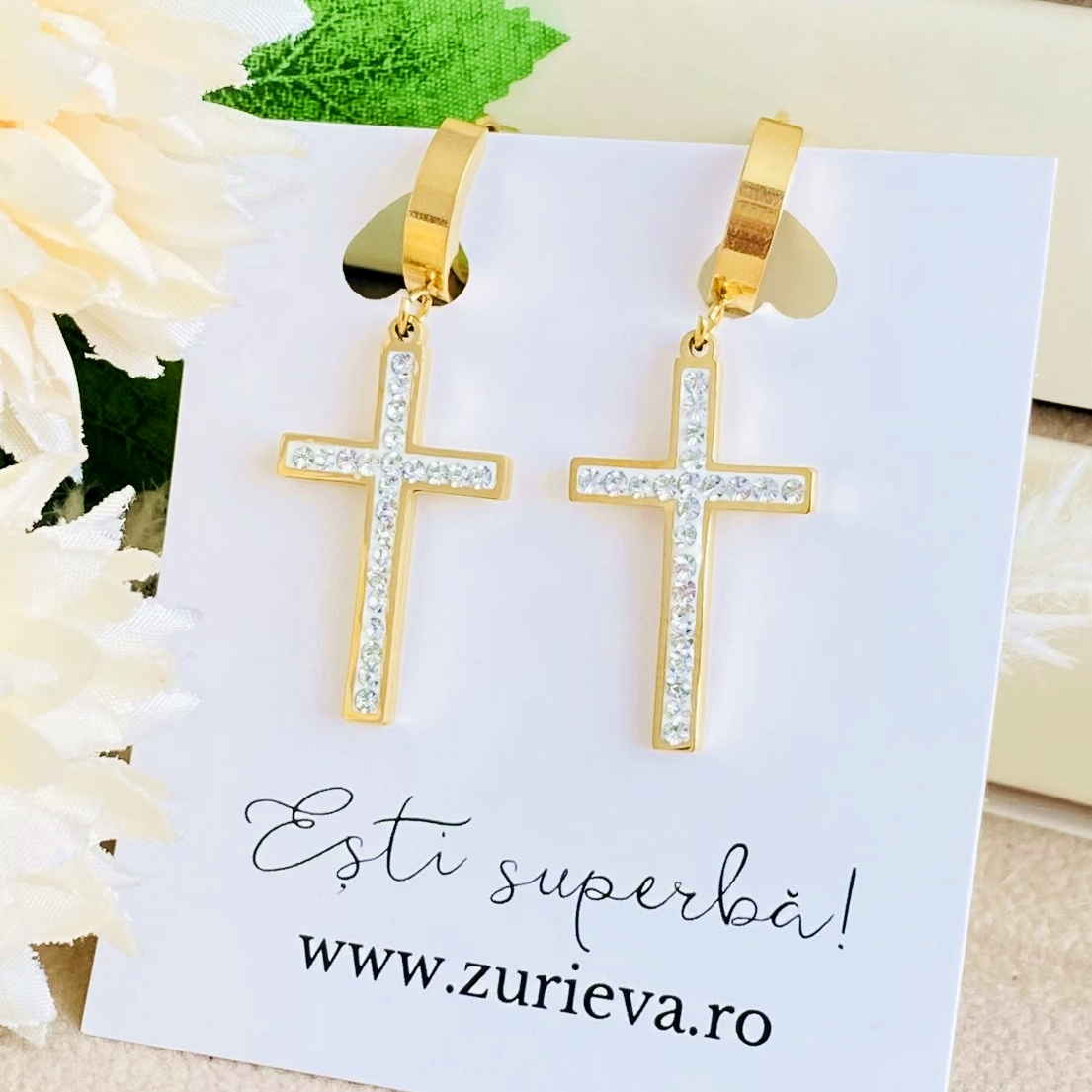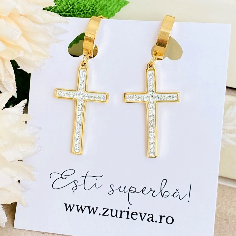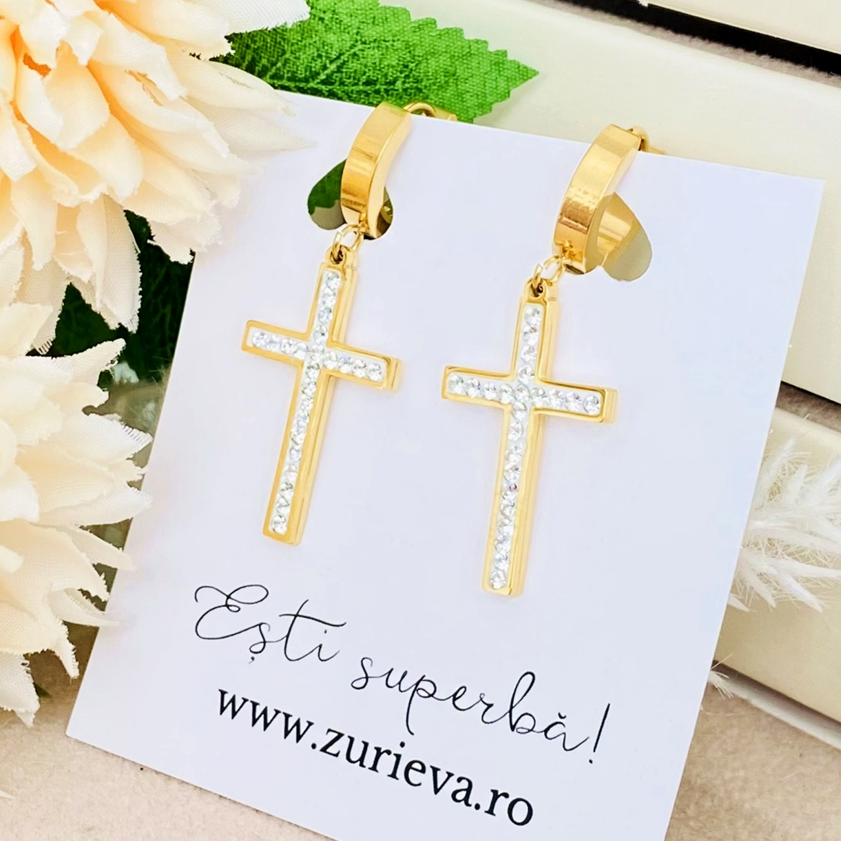 Cercei Cruciulite Cristale - Otel Inoxidabil