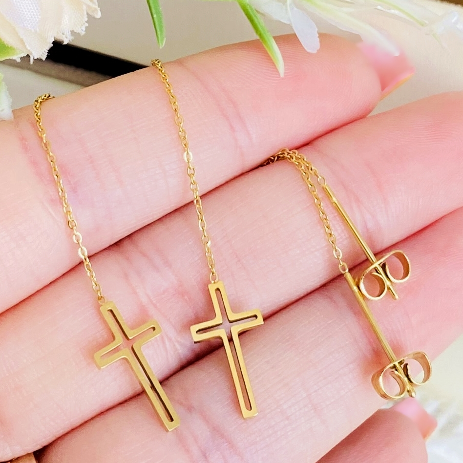 Cercei Lungi Cruciulite - Otel Inoxidabil