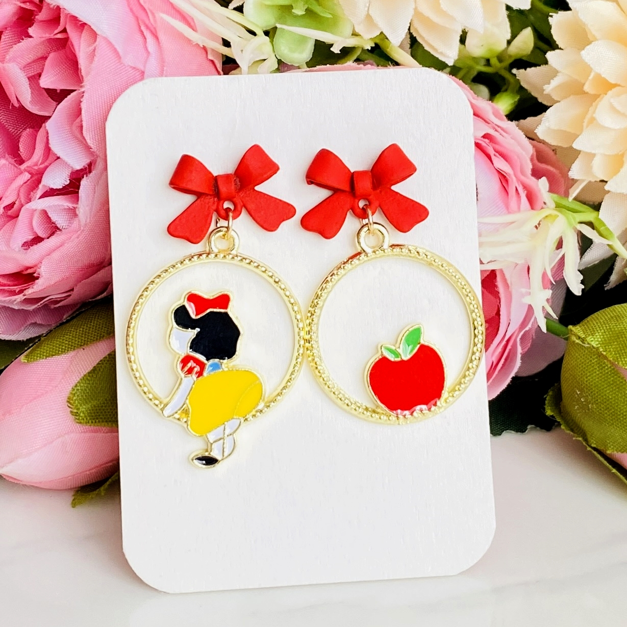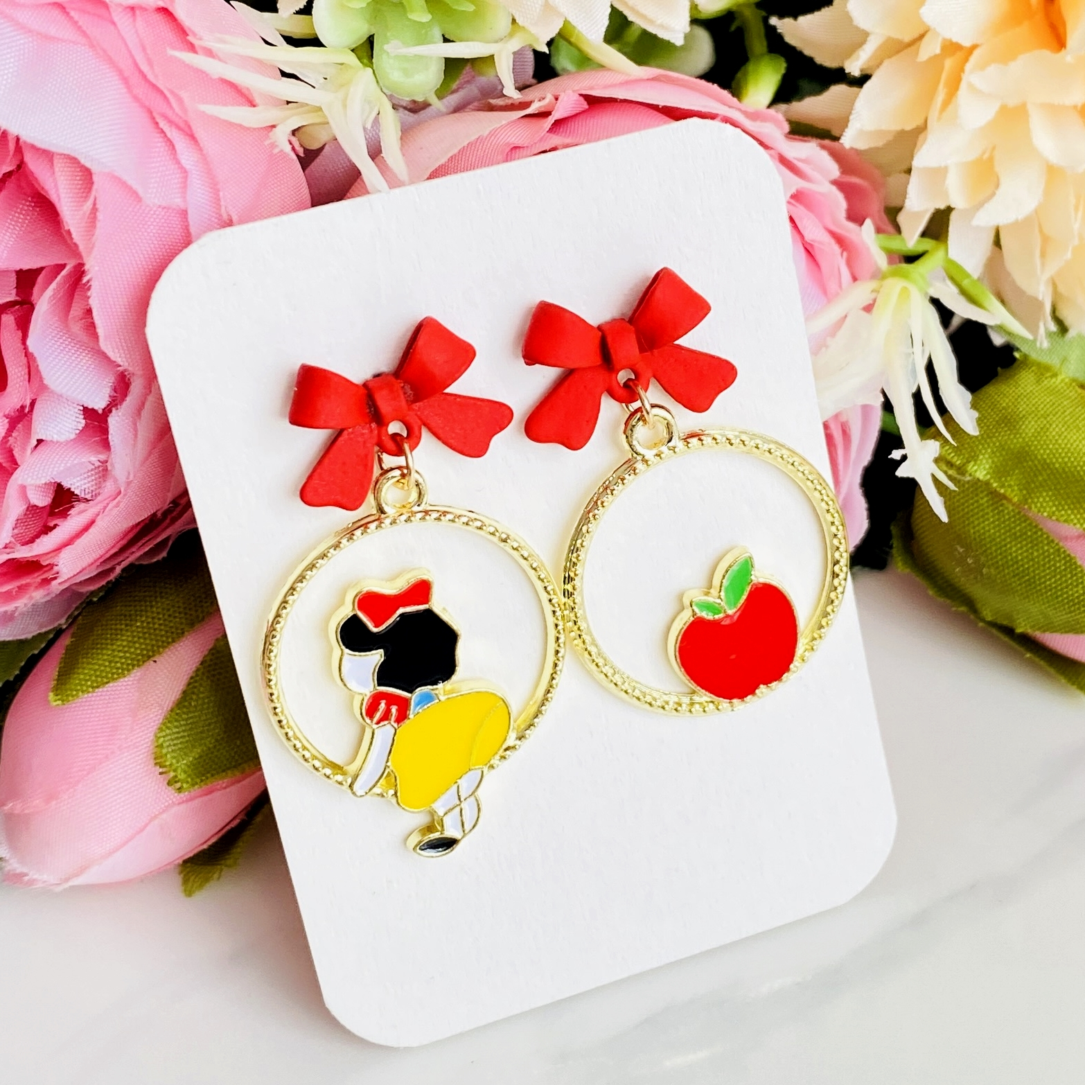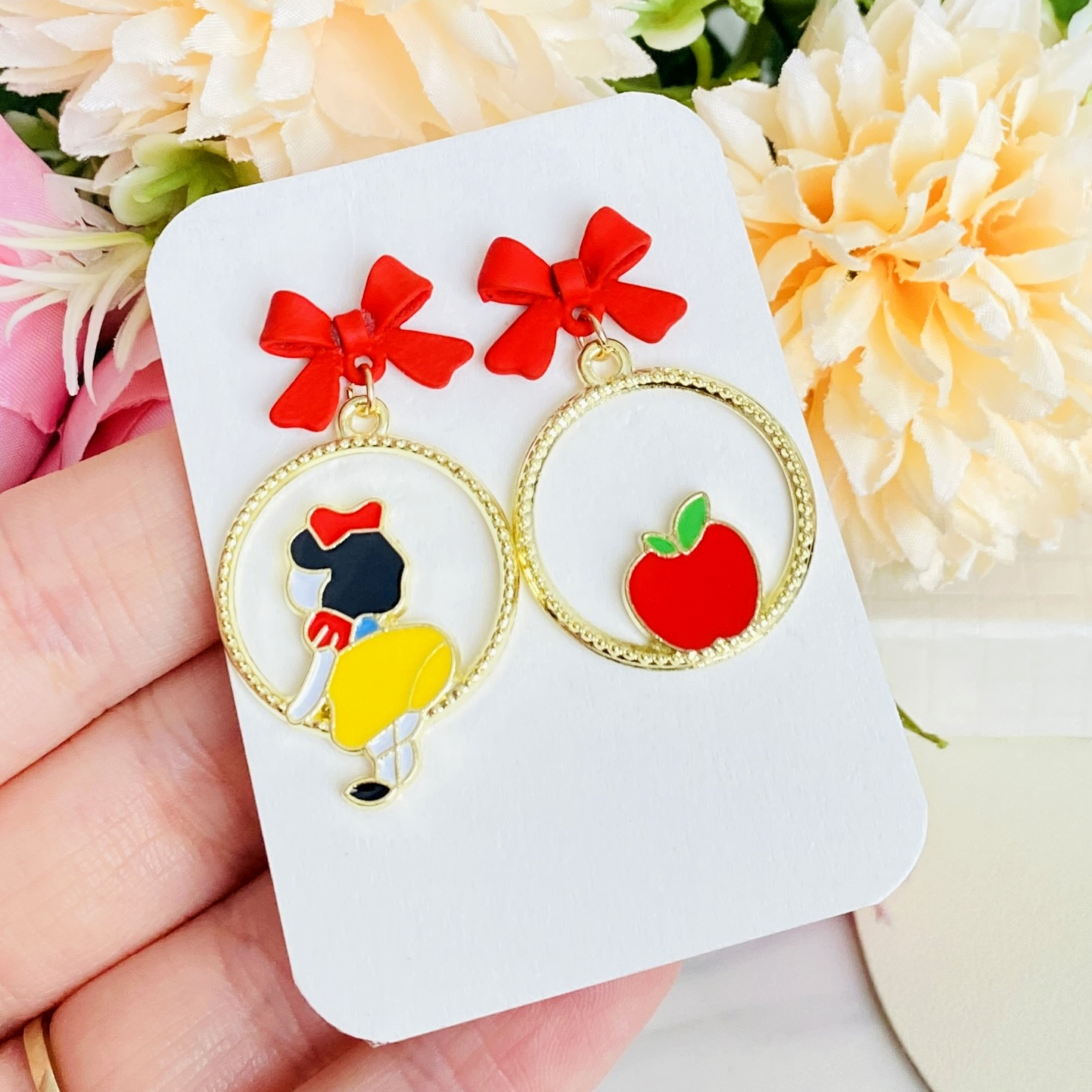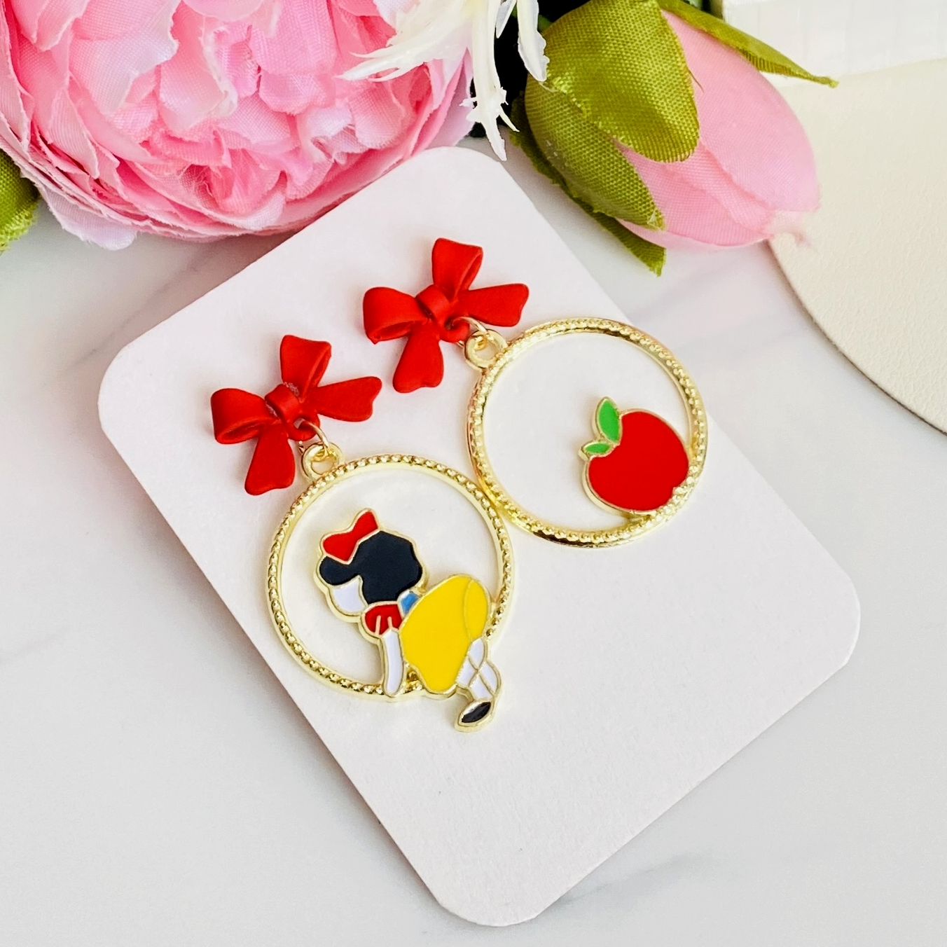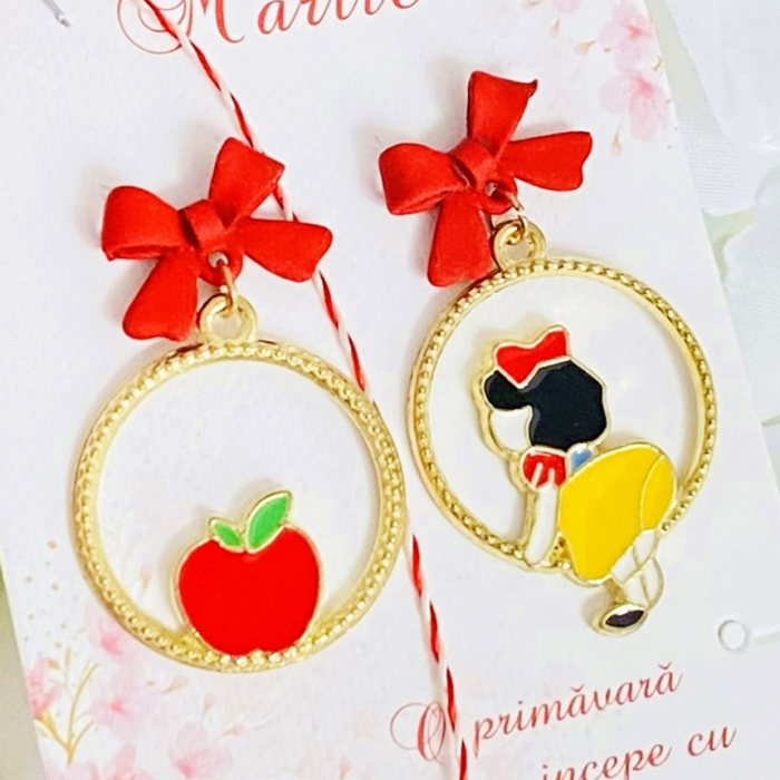 Cercei colorati, tare simpatici, inspirati din povestea Alba ca Zapada, perfecti pentru a-ti completa tinutele preferate.