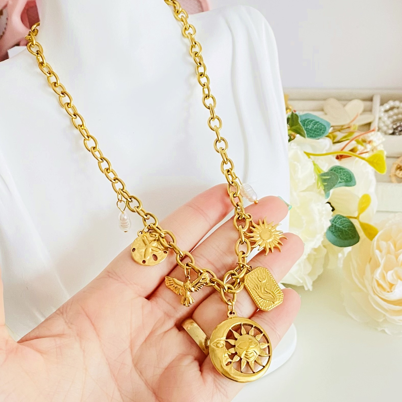 Colier din otel inoxidabil, cu un design aparte, tare simpatic, pe care-l poti asorta perfect la tinutele tale preferate.