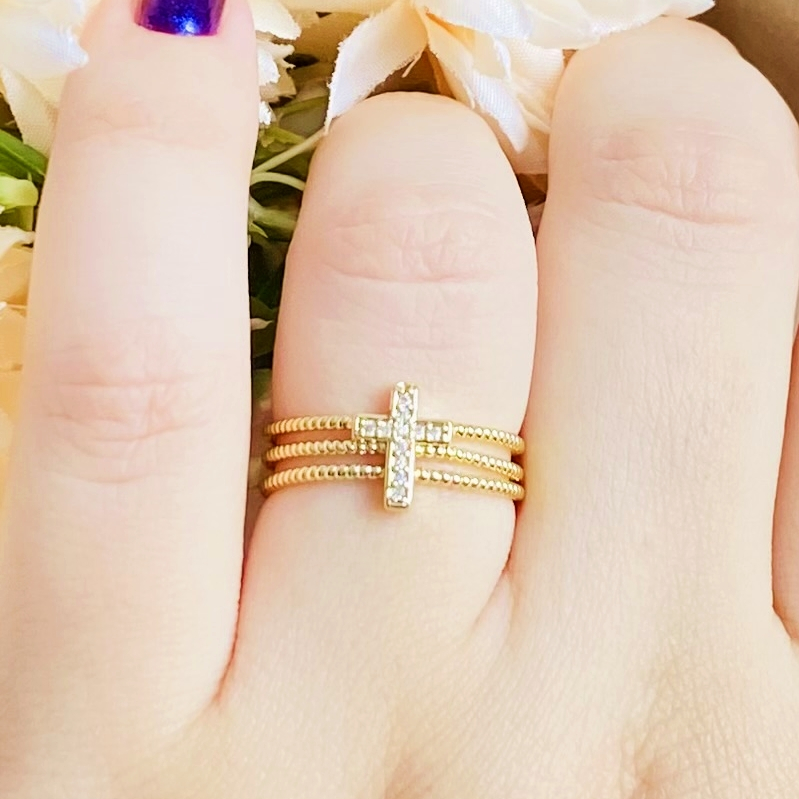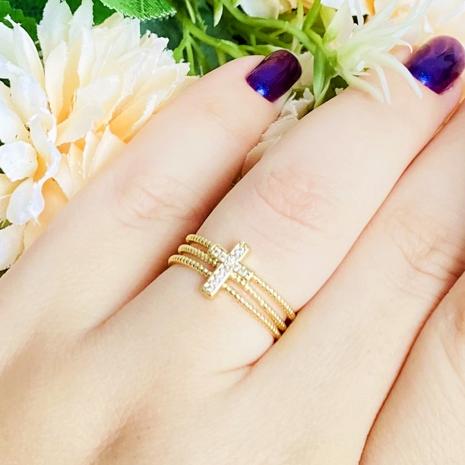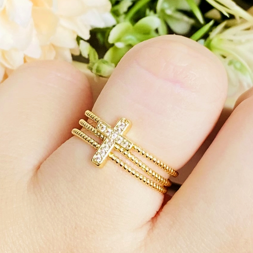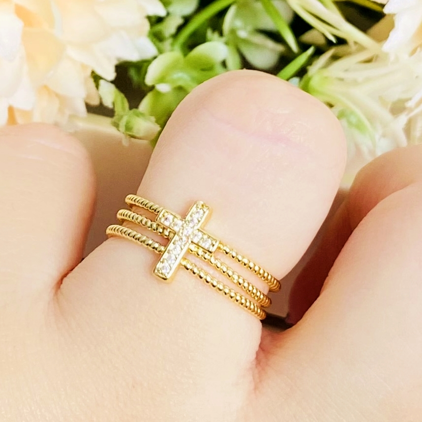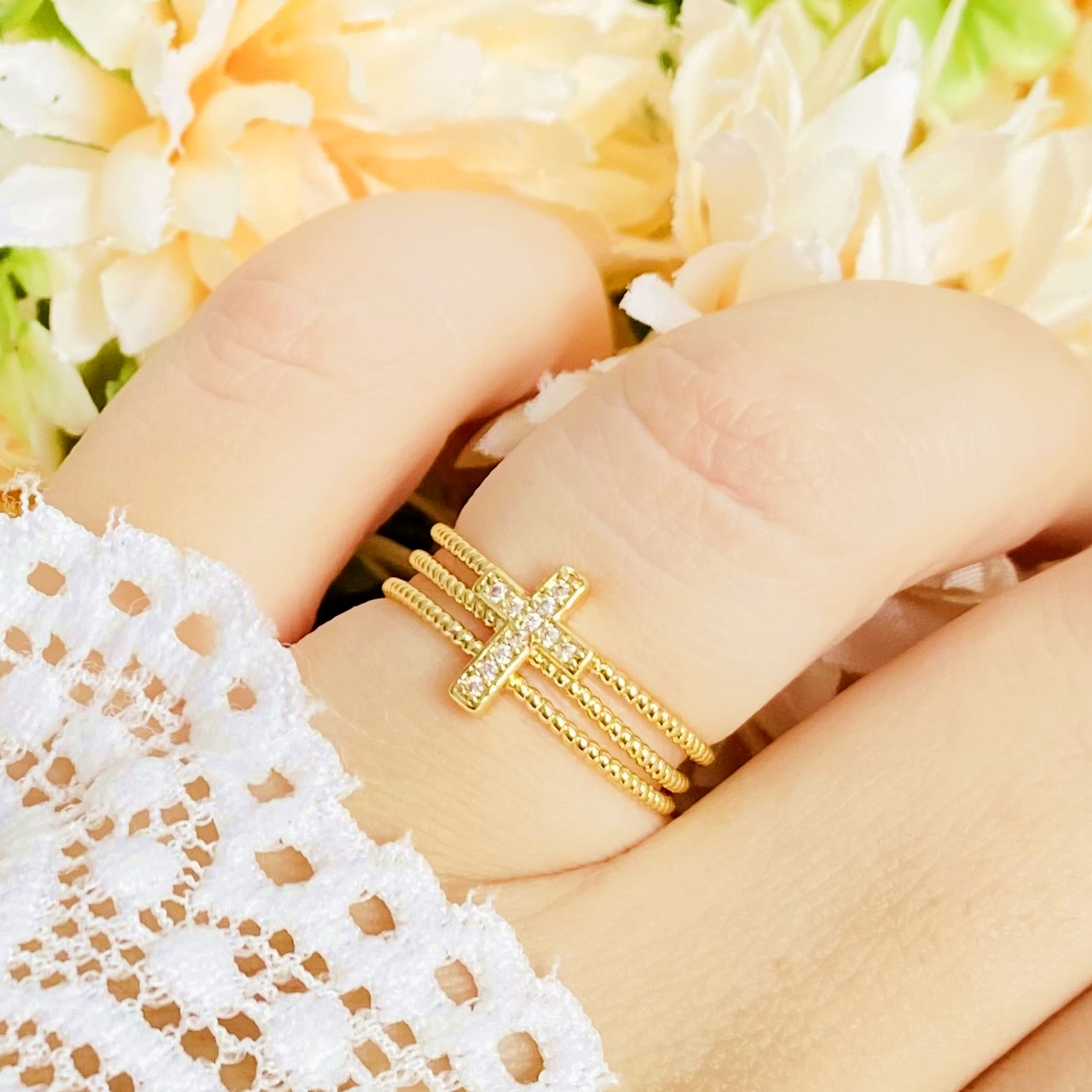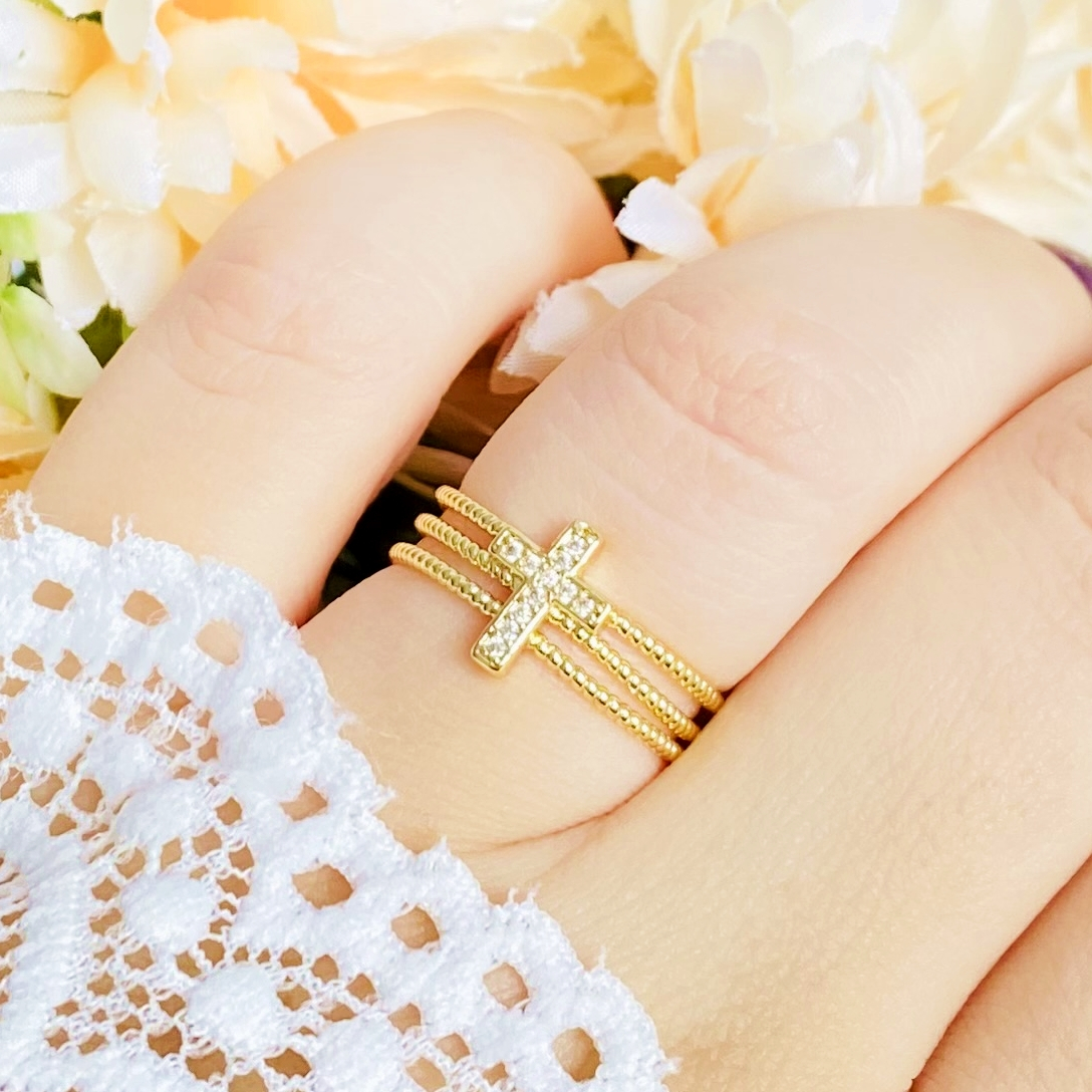 Inel Reglabil Cruciulita Cristale - Otel Inoxidabil