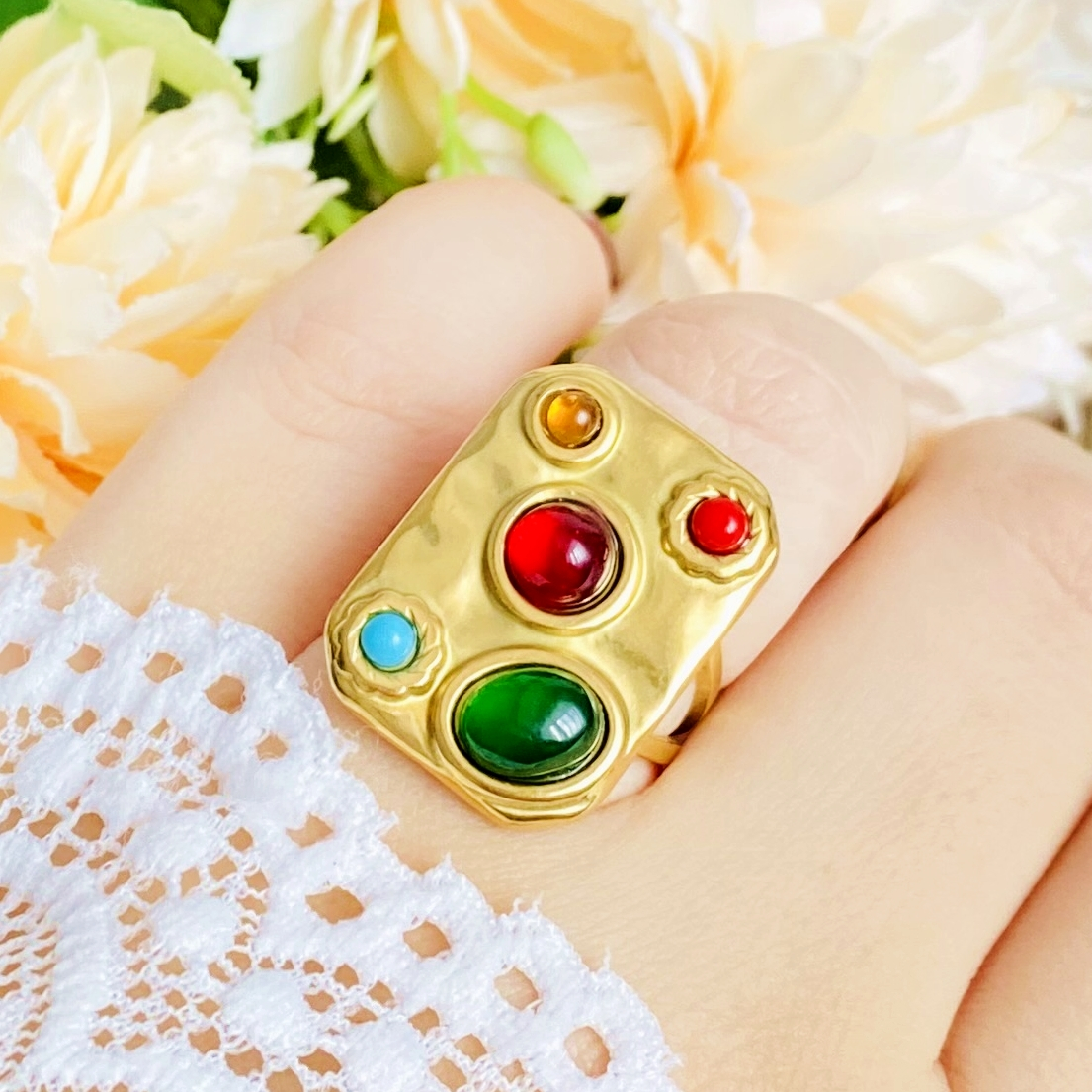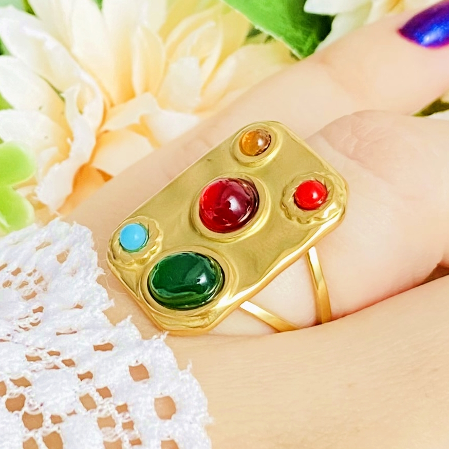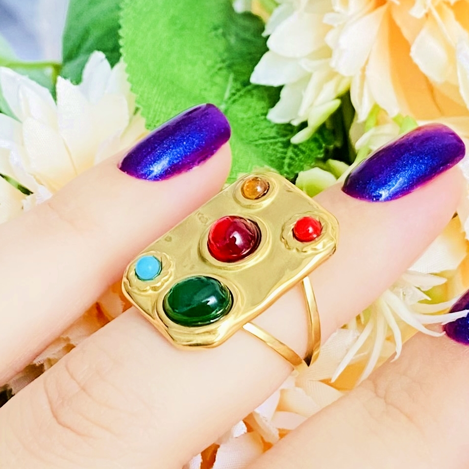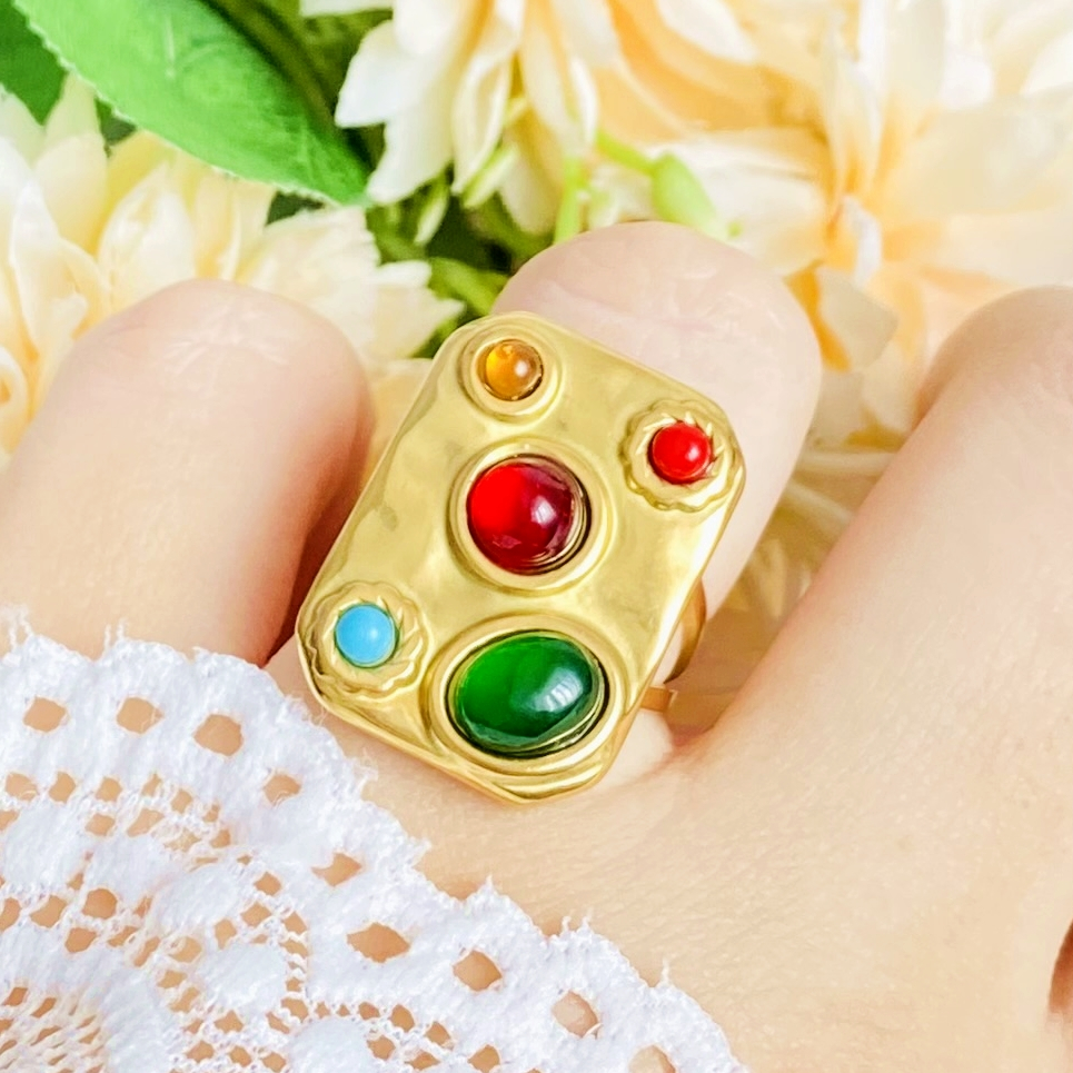 Inel Reglabil Pietre Colorate - Otel Inoxidabil