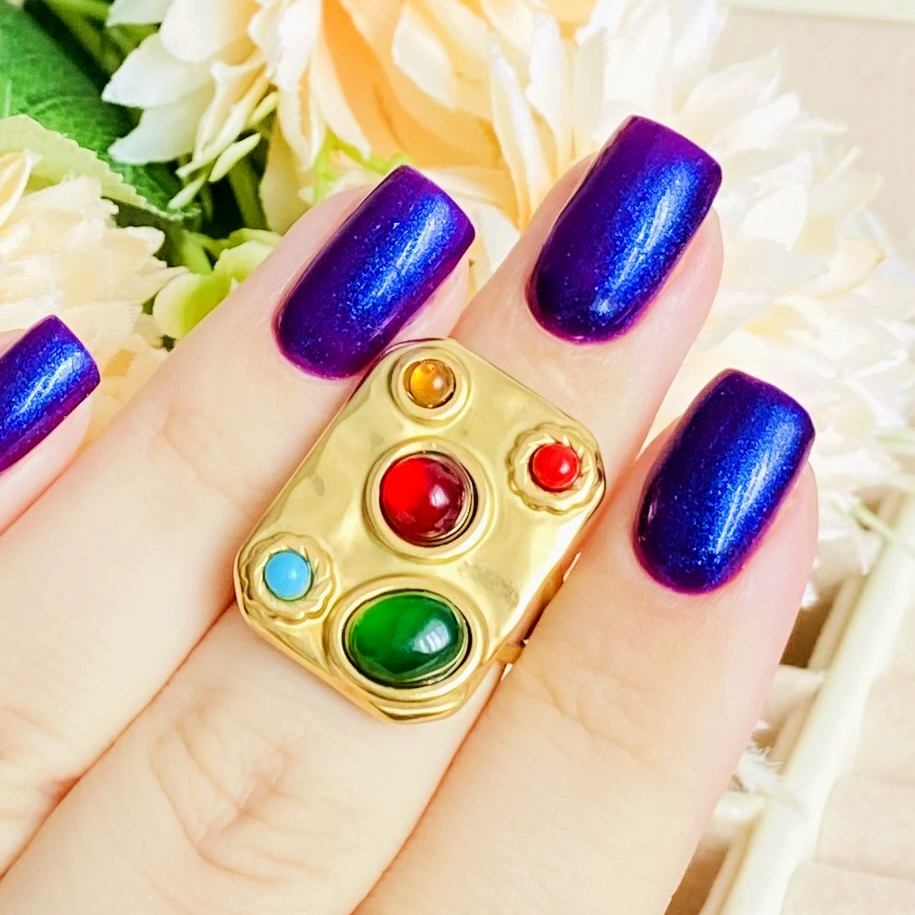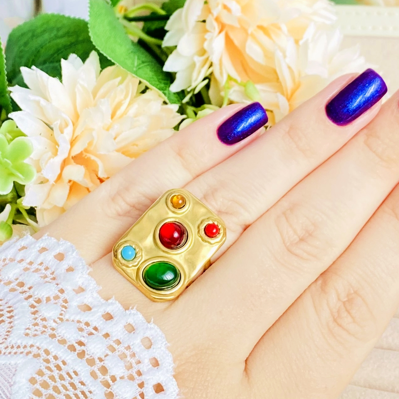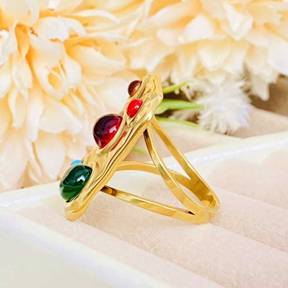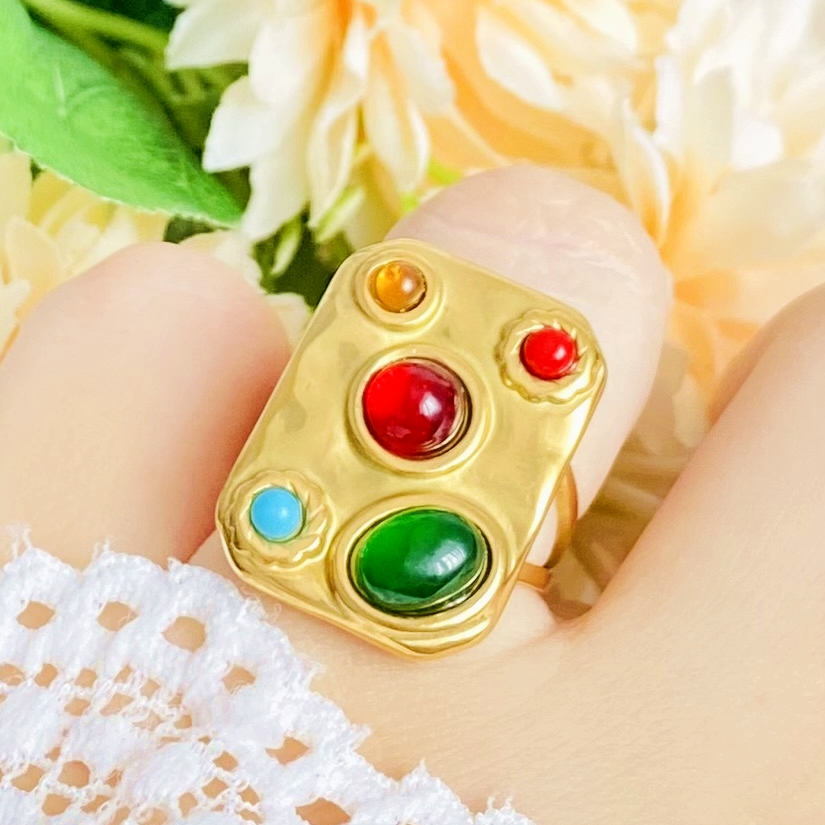 Inel Reglabil Pietre Colorate - Otel Inoxidabil