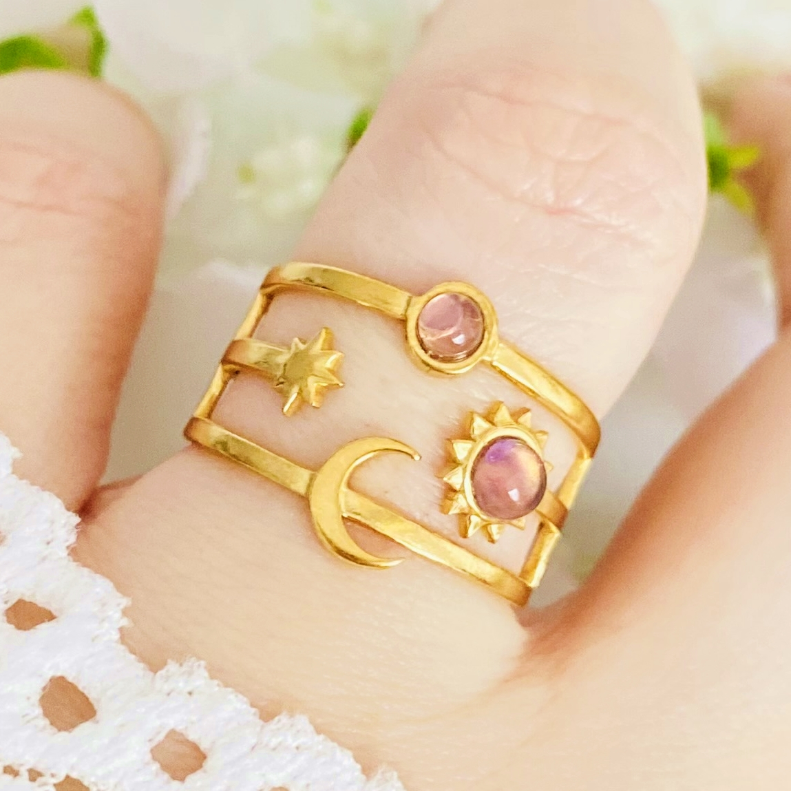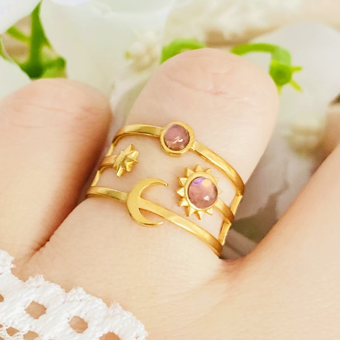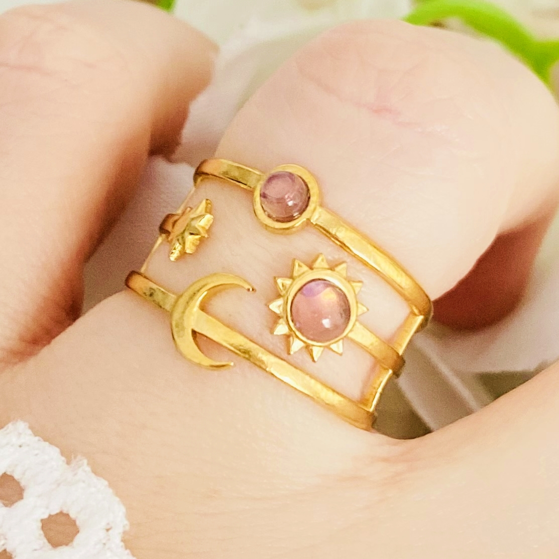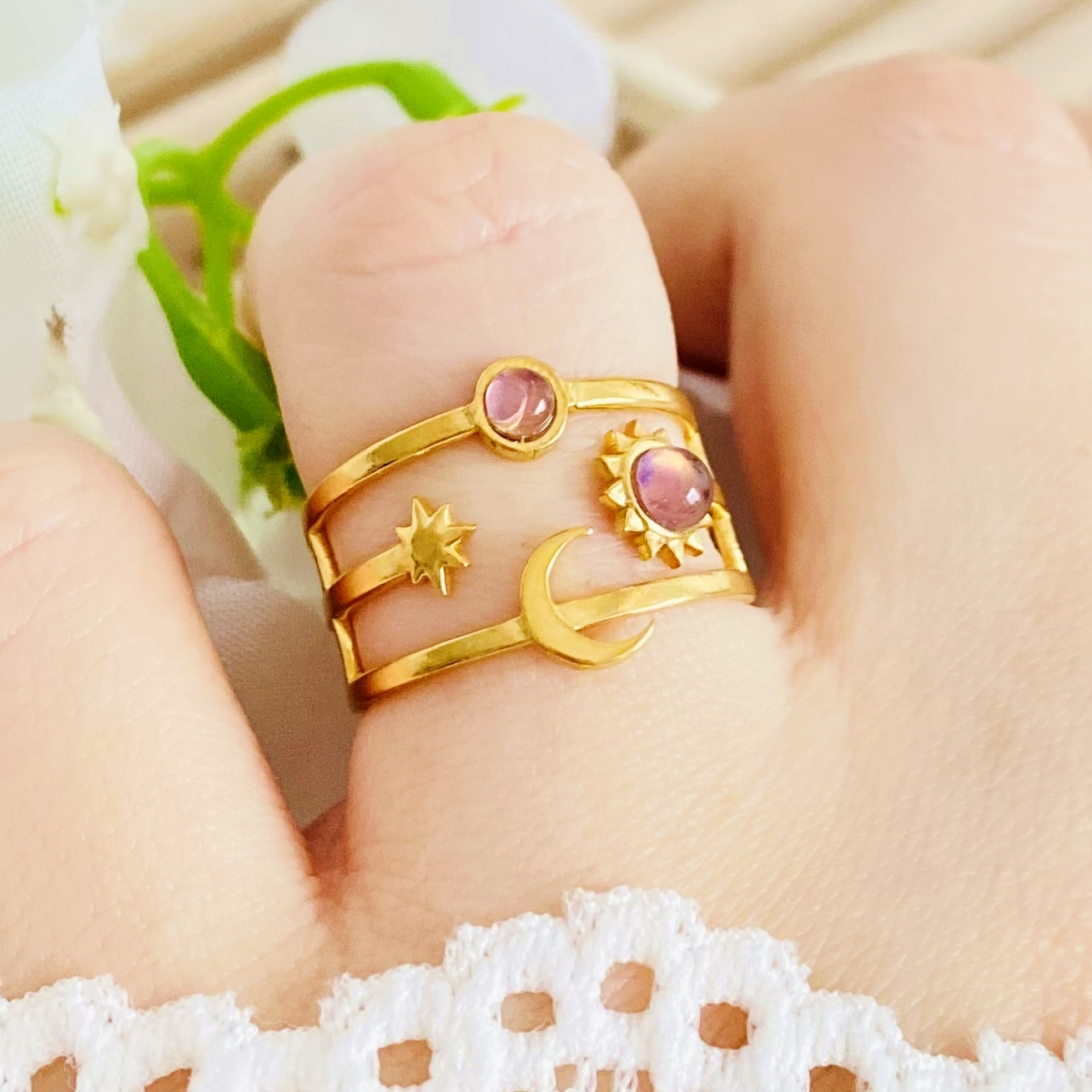 Inel Reglabil Pink Universe - Otel Inoxidabil