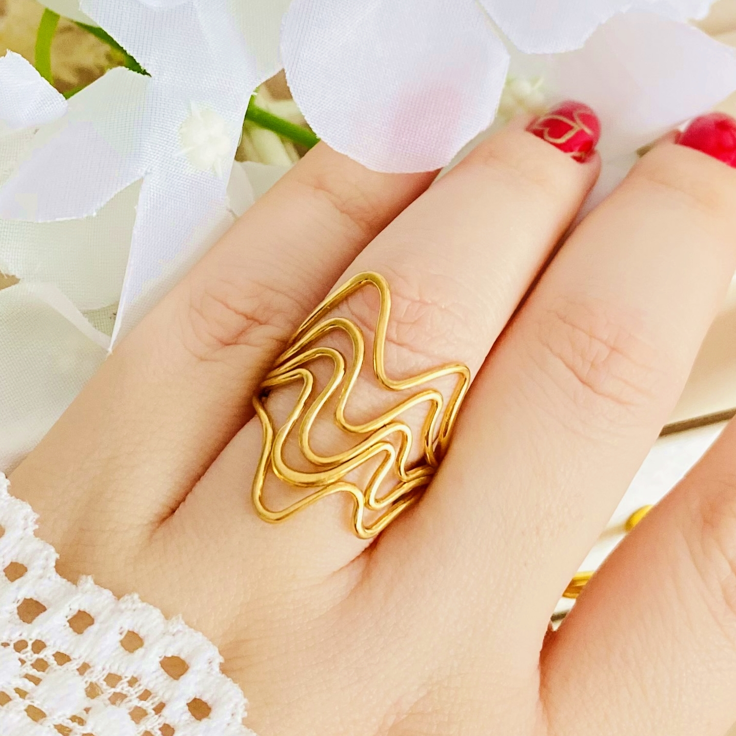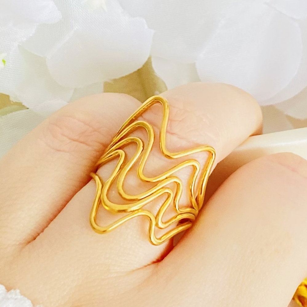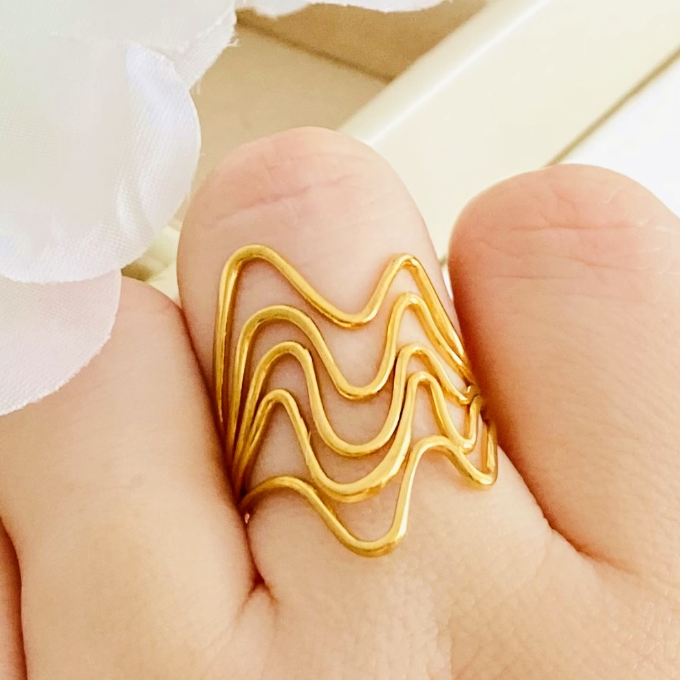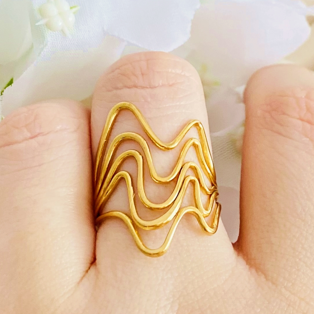 Inel Reglabil Valuri Aurii - Otel Inoxidabil