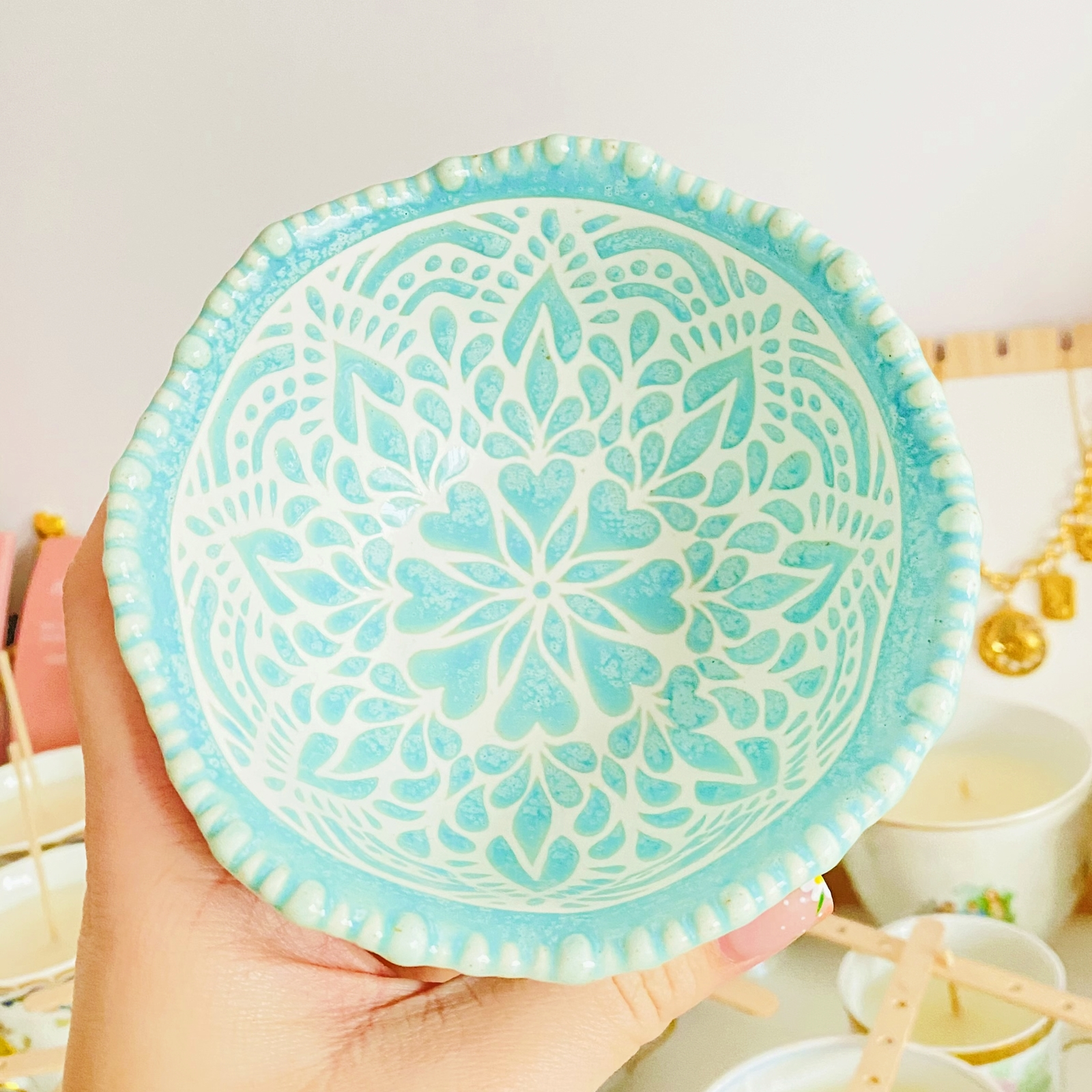 Lumanare parfumata din ceara de soia, 100% naturala, turnata manual intr-un bol din ceramica si cu fitil din bumbac.