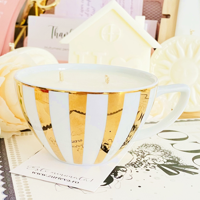 Lumanare parfumata din ceara de soia, 100% naturala, turnata manual intr-o cescuta din portelan si cu fitil din bumbac.