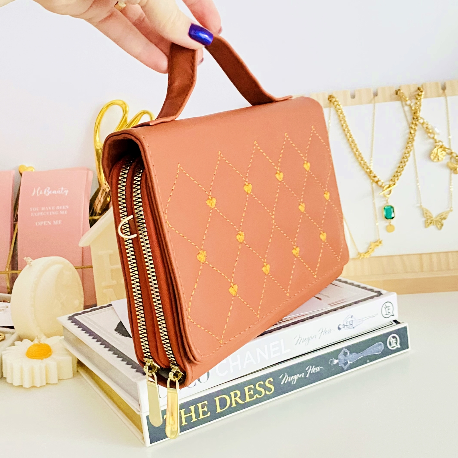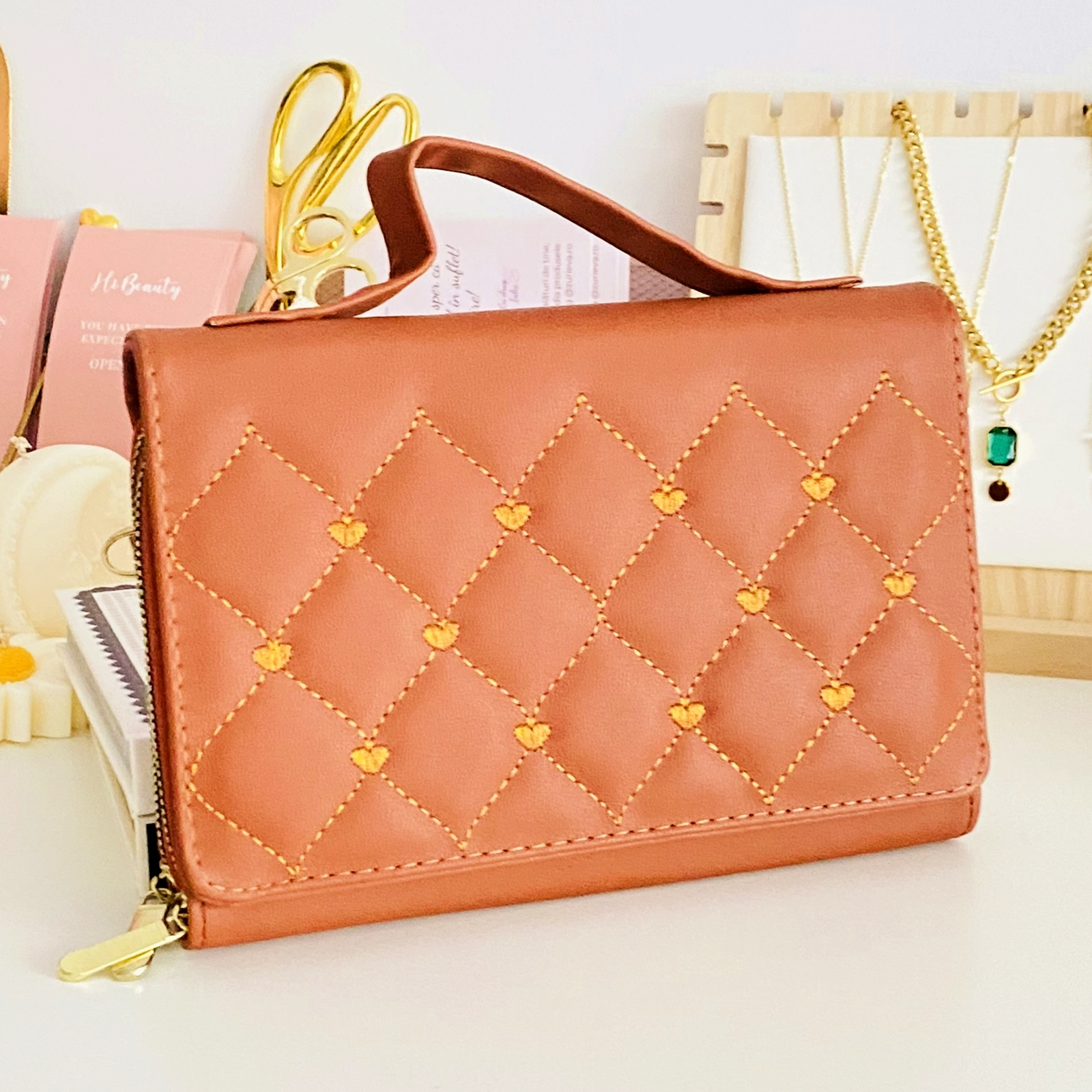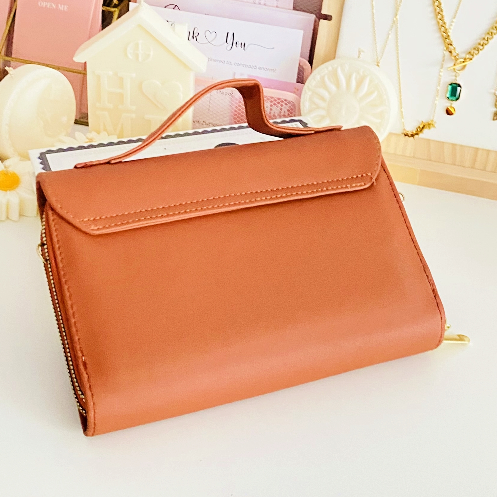 ✔ Lantul lung detasabil este din piele ecologica.